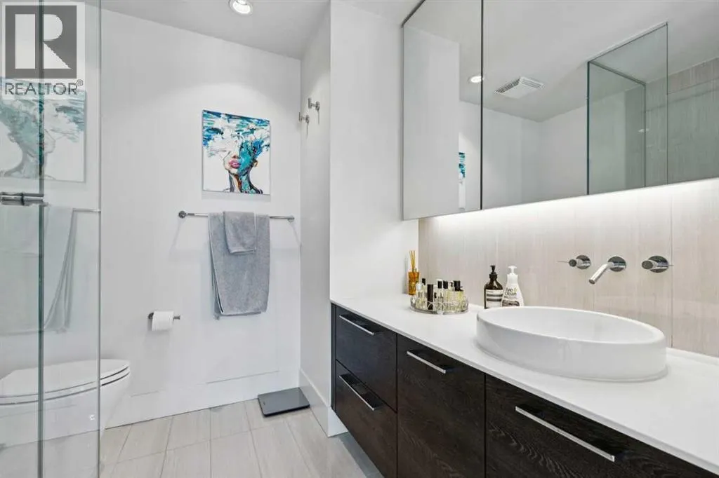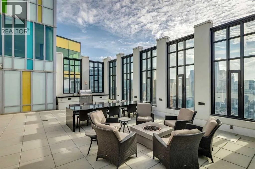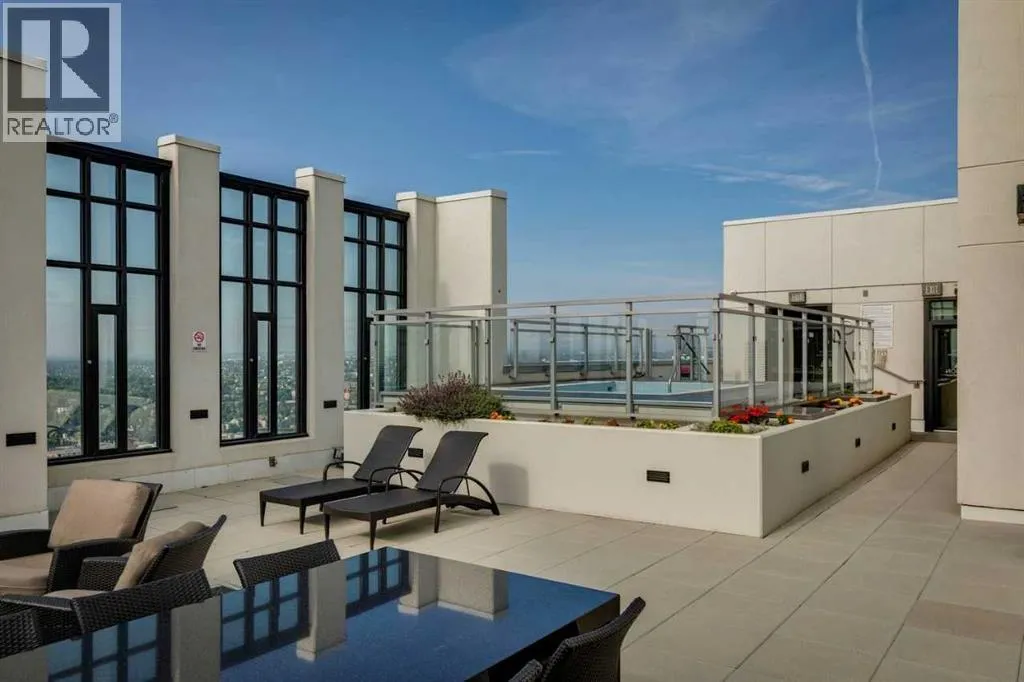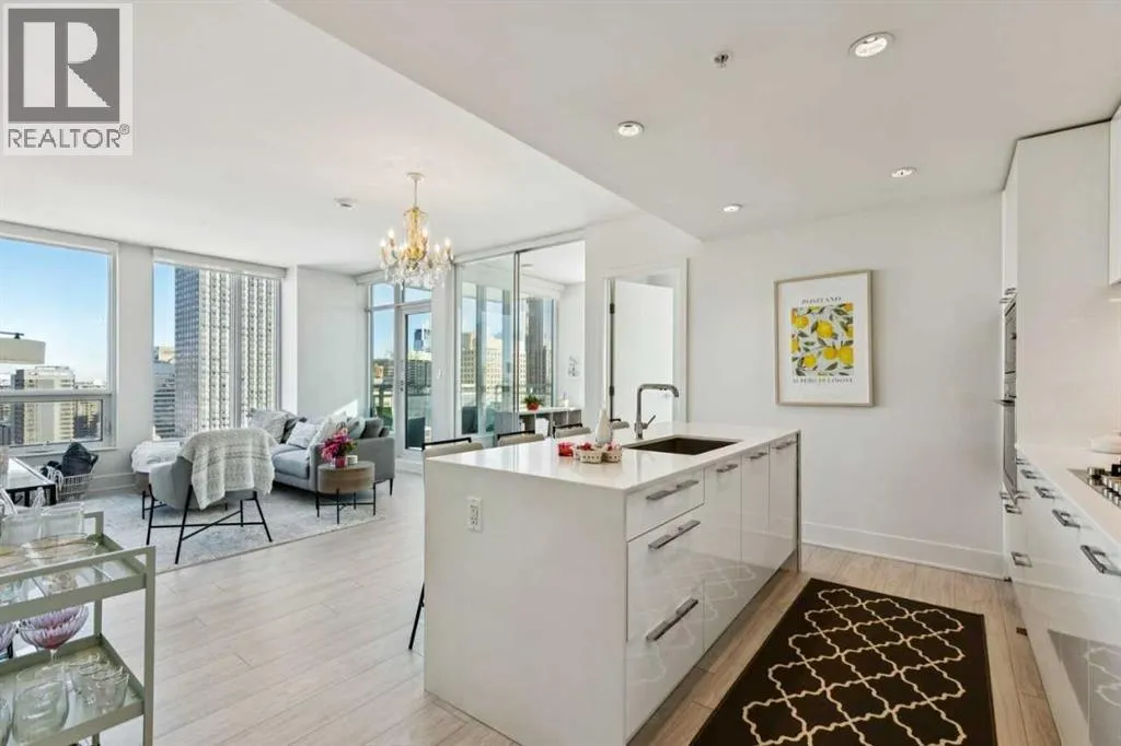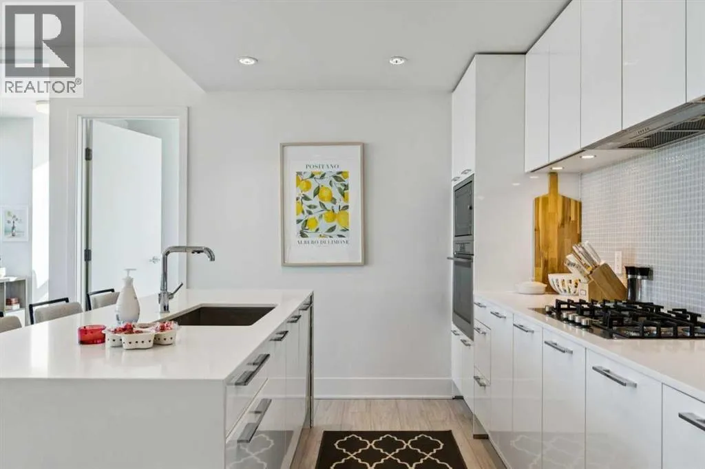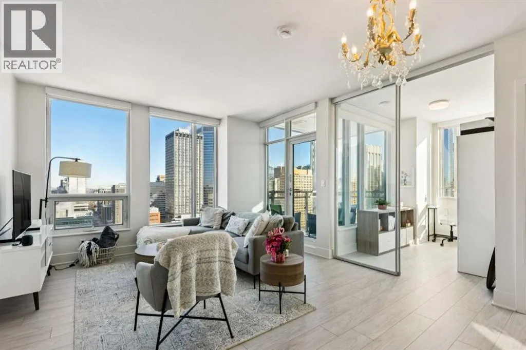 Live, work and play at The Mark on 10th. Perched on the 20th floor, this bright and spacious corner unit offers breathtaking panoramic views of Calgaryâs downtown core and the vibrant Beltline. Featuring 2 bedrooms, 2 bathrooms and a private den with sliding glass doors, the thoughtfully designed 909 sq ft layout blends style and function. The contemporary kitchen is appointed with premium German appliances/cabinetry, Kohler fixtures and sleek quartz countertops. A rare titled oversized parking stall (approx. 1.5 stalls) offers exceptional space and convenience rarely found in the Beltline. A custom walk-in closet, blackout blinds in both bedrooms and a private balcony create a sophisticated retreat above the city.Residents enjoy luxury amenities including full-time concierge, secure parcel lockers, a stunning 34th-floor rooftop, hot tub, sauna, steam room and fitness centre, plus a garden terrace and guest unit on 3rd fl. Steps to cafés, restaurants, groceries, LRT, and 17th Ave. (id:27476)