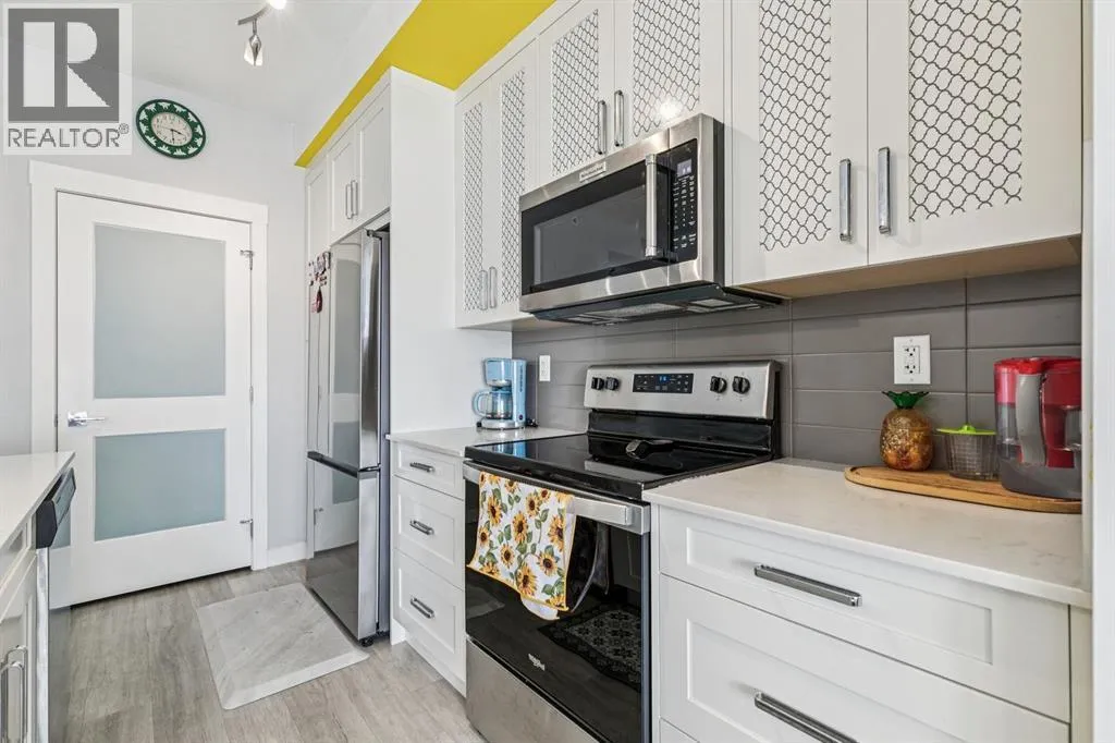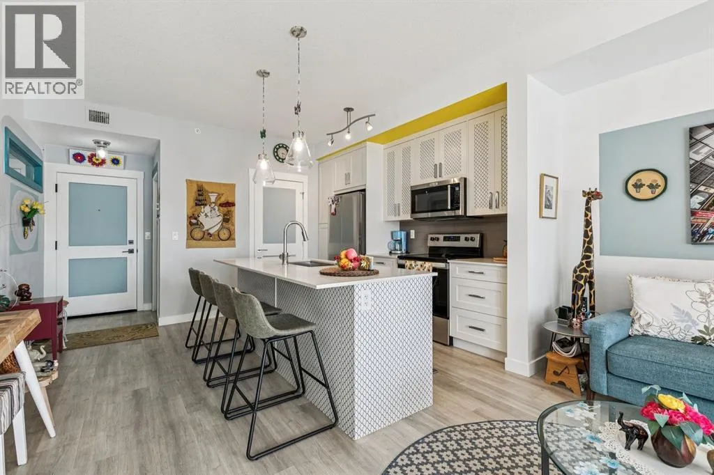 Welcome to this beautifully upgraded 2-bedroom, 2-bathroom condo in the vibrant community of Seton, offering modern design, thoughtful upgrades, and stunning mountain views from your private balcony. This well-designed double primary bedroom layout is ideal for roommates, guests, professionals working from home, or investors seeking strong rental appeal.The bright open-concept main living space is filled with natural light and features durable luxury vinyl plank flooring, stylish lighting, and a contemporary feel throughout. The kitchen is both functional and elegant, showcasing quartz countertops, extended cabinetry, tile backsplash, stainless steel appliances, and a spacious island with seating, perfect for cooking, entertaining, or casual dining.Both bedrooms are generously sized and each offers its own private ensuite bathroom, creating two comfortable retreats with privacy and convenience. The primary living space flows seamlessly onto the private balcony, where you can relax and enjoy beautiful mountain views and fresh air.Additional highlights include titled underground parking, providing comfort and security year-round.Located in the heart of Setonâs Urban District, this home is just steps from incredible amenities including the South Health Campus, YMCA at Seton, restaurants, shops, and entertainment. With quick access to Deerfoot Trail and Stoney Trail, commuting anywhere in the city is simple and convenient.Whether you're a first-time buyer, professional, or investor, this stylish and low-maintenance home offers exceptional value in one of Calgaryâs most sought-after communities. (id:27476)
