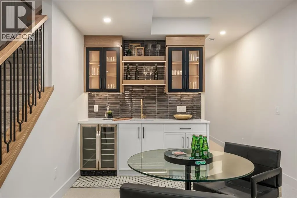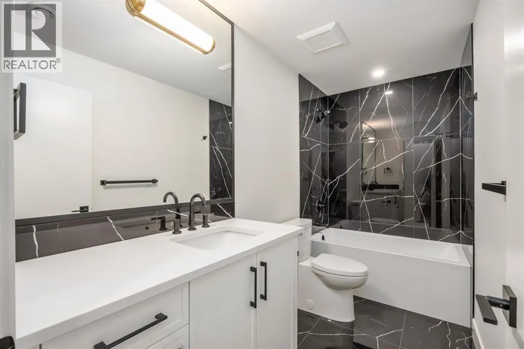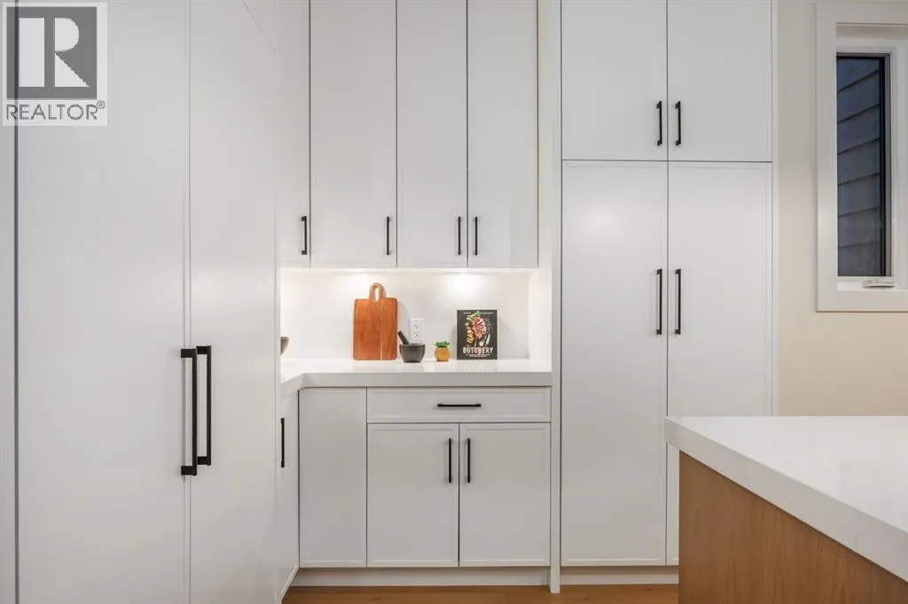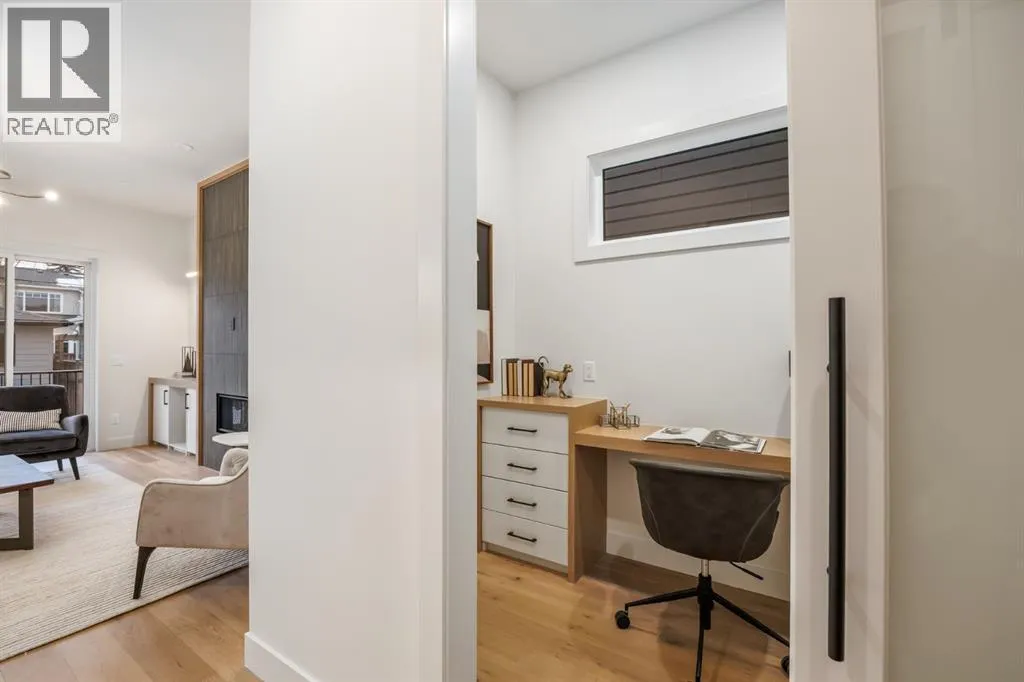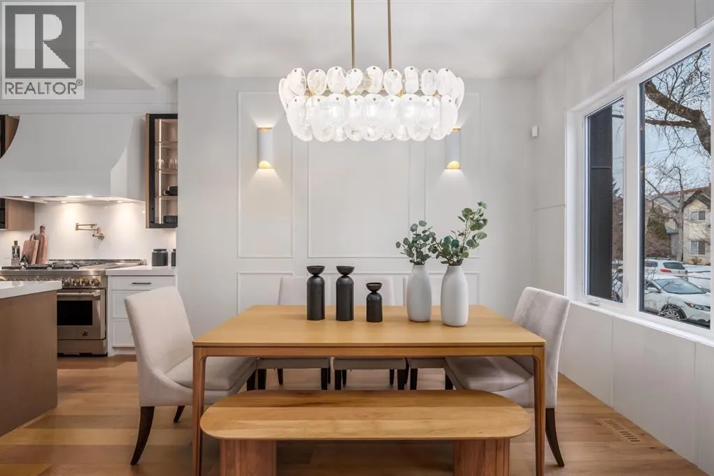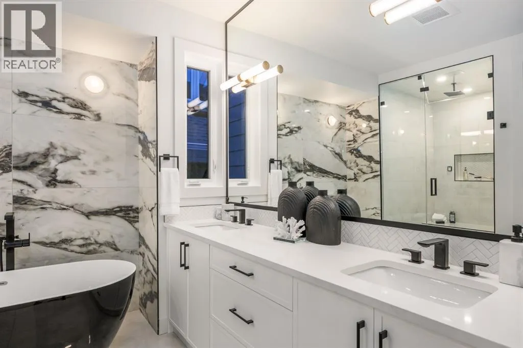 OPEN HOUSE Saturday April 4th 1-3PM & Sunday April 5th 3-6PM! Experience elevated inner-city living with this impeccably designed, brand-new home nestled in one of Calgaryâs most sought-after neighbourhoods: Hillhurst. Constructed by a trusted local builder known for craftsmanship, functionality, and aesthetic excellence, this 2-storey residence offers 2,224 SF above grade, with a fully developed basement, 4 bedrooms, and 4.5 bathroomsâa perfect blend of modern luxury and thoughtful detail. From the striking brick facade to the high-end engineered wide plank oak hardwood, every inch of this home exudes quality. The main floor welcomes you with a built-in entry feature and a front formal dining area, accented by elegant wall mouldings, white and gold sconces, and a designer chandelier. At the other end, an open-concept living room is a showstopper, featuring a large-format textured tile fireplace, custom built-ins with display lighting, and massive patio sliders leading to a west-facing, 135-ft deep backyard with a raised patio and gas lineâideal for indoor-outdoor entertaining. The chefâs kitchen is nothing short of stunning, complete with a 2.5" thick quartz island, panel-ready fridge/freezer with knurled handles, sleek quartz countertops, a gas range with pot filler, and backlit display cabinets framing the custom hood fan. Youâll also find a farmhouse sink, full slab backsplash, hidden coffee/appliance nook, built-in pantry, and a drawer-style microwaveâeach designed to inspire culinary creativity. Tucked behind a barn-style sliding door, the den offers a quiet workspace with a built-in desk, shelving, and bright window. The mudroom, also with a barn door, features tiled flooring, a built-in bench, and a large closet for seamless organization. Upstairs, each of the three spacious bedrooms come with walk-in closets and custom built-ins, along with private ensuites. The primary is sure to impress with vaulted ceilings, a LED-lit feature wall, statement gold light f ixture, and a spa-inspired ensuite that boasts a steam shower, dual vanities, and a standalone soaker tub with dramatic black and white tile wall backdrop. A nearby laundry room offers convenience with a sink, folding station, shelving, and tile backsplash. The fully finished, carpeted basement, with 9-ft ceilings, is roughed in for in-floor heating and designed for comfort and versatilityâfeaturing a spacious rec area, a TV wall with built-in components, a wet bar with lit display shelves and tile flooring, a full bath, and a large fourth bedroom with built-ins including a desk. An efficient mechanical room completes the lower level, with additional upgrades including solid core doors and built-in speakers throughout the entire home. Perfectly situated just steps from shops along 14 St NW and walking distance to Kensington Village, Calgaryâs extensive river pathways, and the Downtown Coreâthis is urban luxury at its finest. Act now and make this exceptional Hillhurst property your forever home. (id:27476)