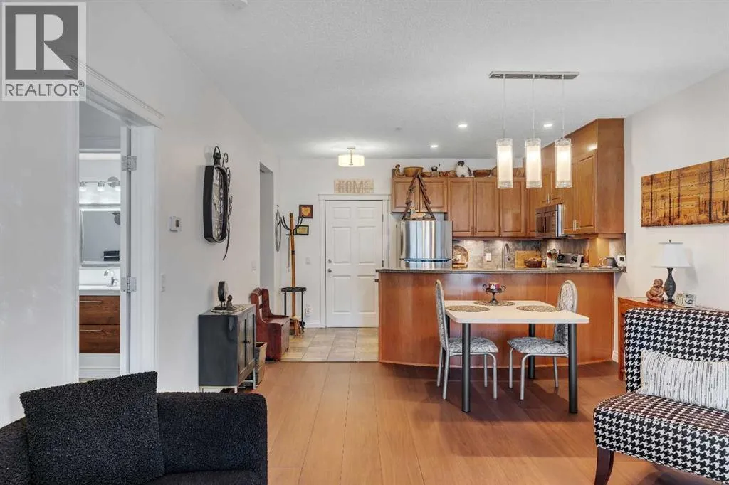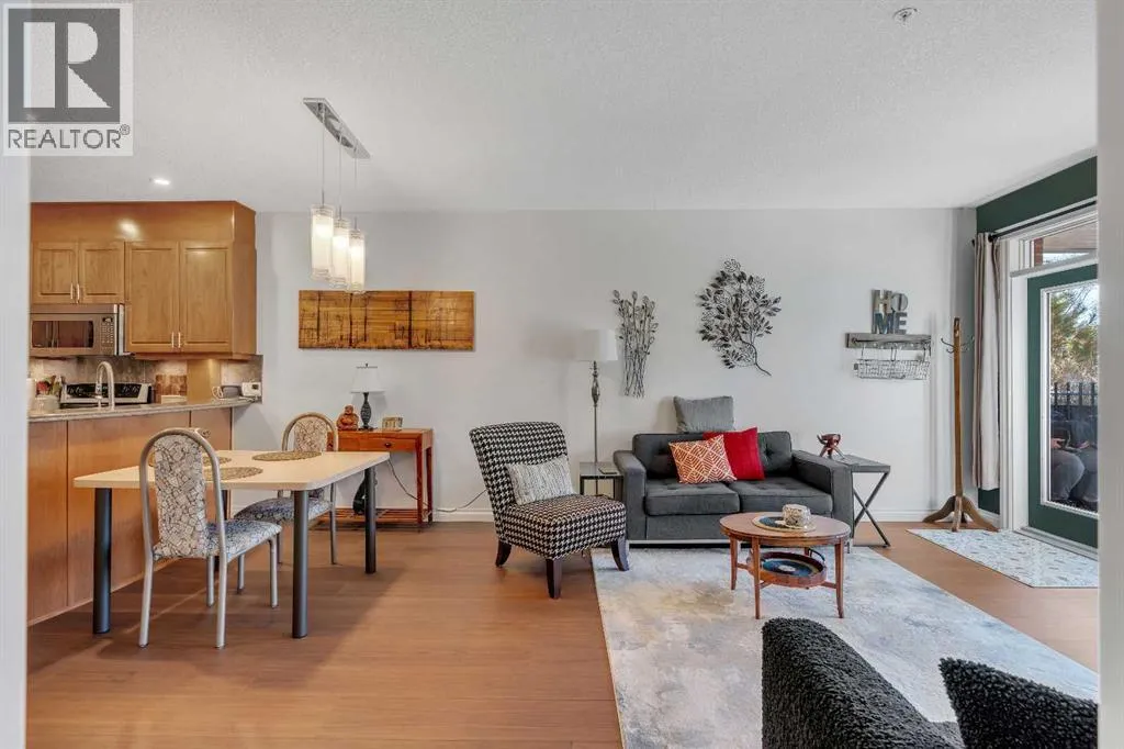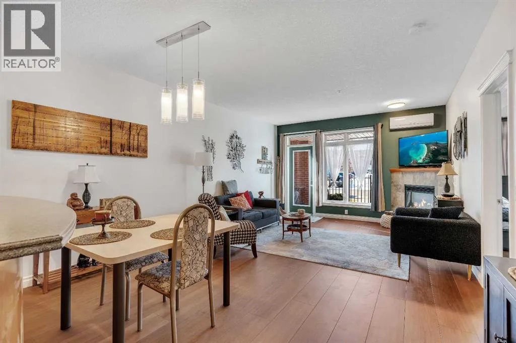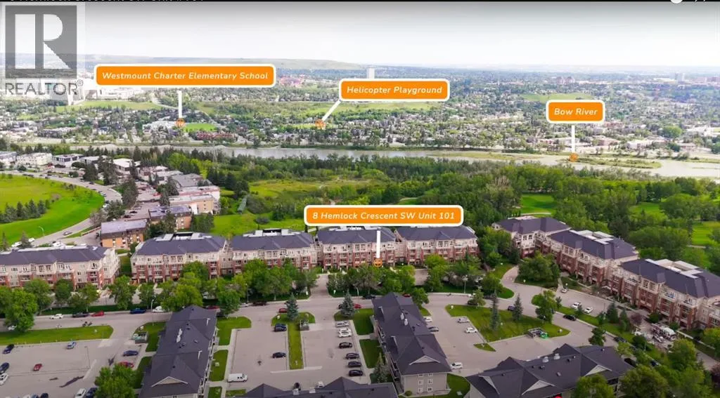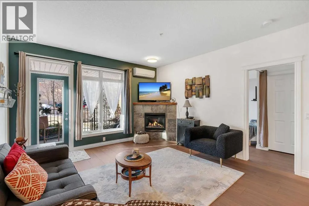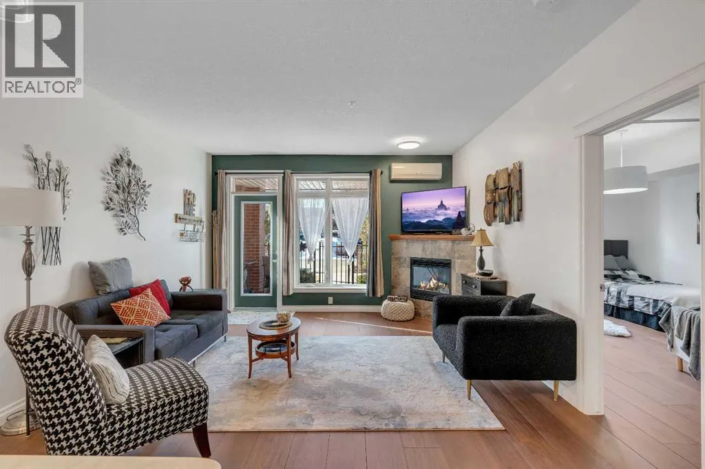 GROUND FLOOR WITH PRIVATE FRONT ACCESS | RENOVATED INTERIOR | TITLED UNDERGROUND PARKING | A/C | FLOODED WITH NATURAL LIGHT | LARGE SOUTH FACING WINDOWS | Welcome to Unit #101 at Copperwood in Spruce Cliff, ideally located just steps to Edworthy Park, the Bow River pathway system, and Shaganappi Point Golf Course. This upgraded 1 bed + 1 bath condo offers over 750 sqft of open concept living with fresh paint, high end engineered hardwood flooring, upgraded lighting, and a refreshed bathroom. The large kitchen is outfitted with stainless steel appliances, Corian countertops, garburator, a generous breakfast bar, and plenty of cabinetry for both storage and display. The living area centres around a cozy gas fireplace and flows seamlessly to the spacious covered patio, perfect for morning coffee or direct street access for dog owners or those who prefer to avoid elevators. The primary bedroom features a walk in closet with built in organizers and a 4 piece en suite. Additionally there is a built in desk or work area at the front that is perfect for those working from home. Additional features include in suite laundry with extra storage, built in central A/C, a titled heated underground parking stall, an assigned storage locker, and access to Copperwoodâs outstanding amenities including a massive fitness facility, guest suite, party room, car wash bay, and secure bike storage. Not to be overlooked, the parking, storage, and elevator are all within a few metres of each other, a convenience often missed in other condo developments. Pet friendly and perfectly suited for professionals, travellers, or downsizers looking for a Spruce Cliff condo in a vibrant inner city location, walkable to Westbrook C Train Station, Westbrook Mall, the public library, groceries, parks, pathways, and just 5 minutes to downtown Calgary. Please reach out to book your private showing today. (id:27476)