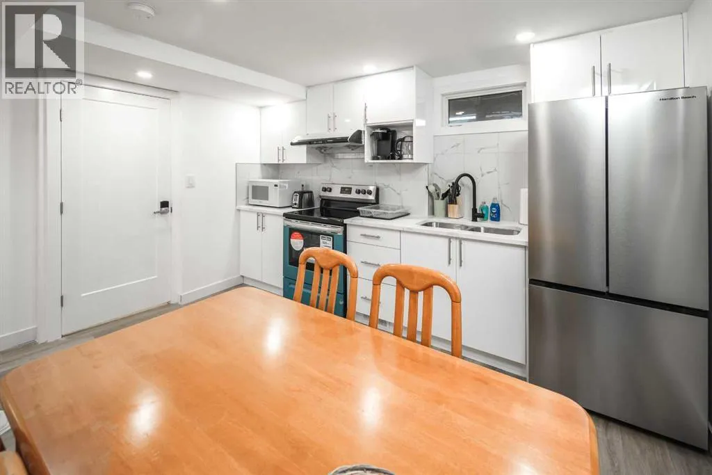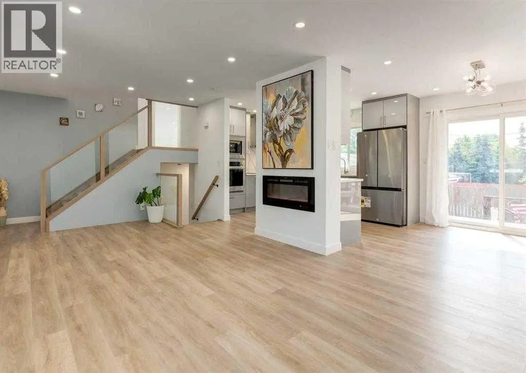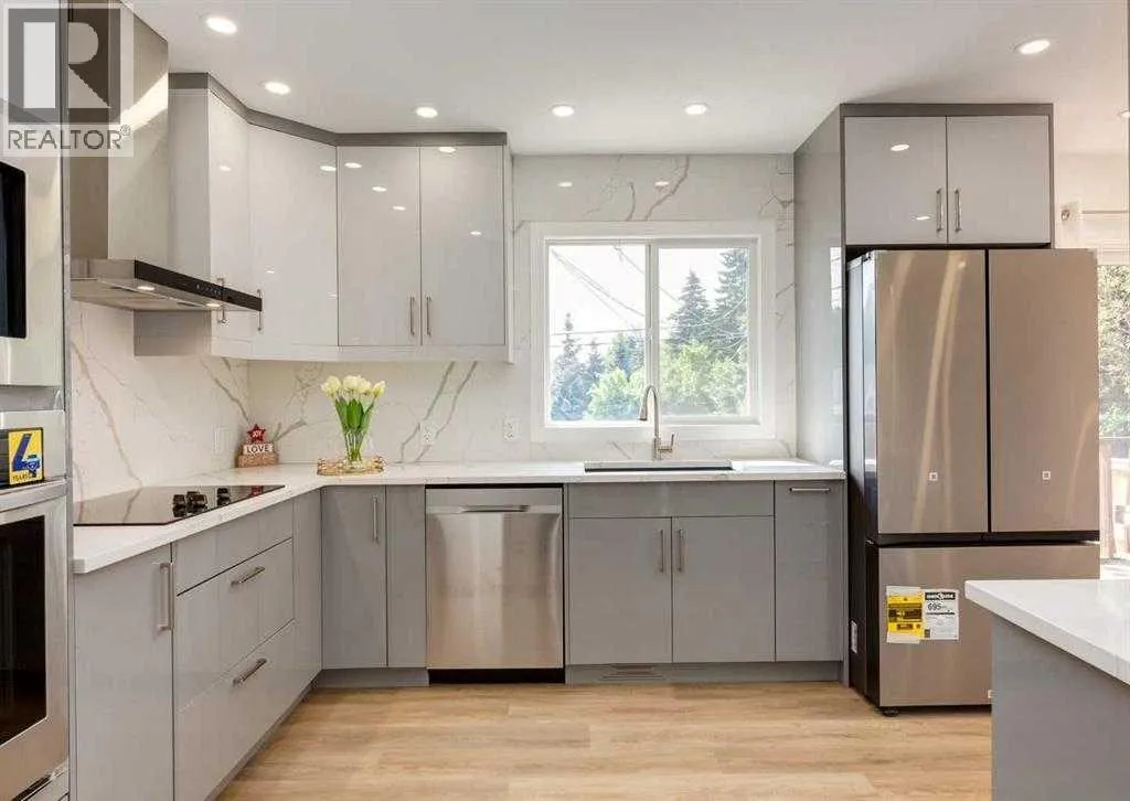 Fully renovated down to the studs, this beautifully updated 4-level split home is located in the highly desirable community of Brentwood, offering exceptional convenience within walking distance to the LRT station, steps from bus stops, and just minutes from the University of Calgary, Brentwood Village, and Nose Hill Park.The exterior has been extensively upgraded with brand-new stucco, newer shingles on both the house and the oversized double garage, new concrete steps and walkways, new fencing, new parking pads, and newly completed front and backyard landscaping. The basement level also features new legal egress windows.Inside, the home welcomes you with a bright open-concept living and dining area, complemented by a brand-new modern kitchen, new flooring throughout, flat ceilings, newer windows, and a new patio door that enhances both natural light and functionality.The upper level offers two spacious bedrooms and a fully renovated 3-piece bathroom.The lower level features a separate entrance and includes a comfortable primary bedroom with a beautifully finished 4-piece ensuite, along with a convenient 2-piece guest bathroom.The basement level has been thoughtfully redesigned to include a brand-new 3-piece bathroom, an additional bedroom, and a newly added kitchen area equipped with a stove, refrigerator, hood fan, and space for a microwave. A dedicated dining area completes the space, providing excellent flexibility for extended family living.Major upgrades include brand-new electrical and plumbing systems, a new washer and dryer, a new hot water tank, and a newer high-efficiency furnace.Move-in ready and extensively renovated, this home offers modern upgrades, flexible living space, and an unbeatable location in one of Calgaryâs most sought-after communities. A rare opportunity at this price point. (id:27476)