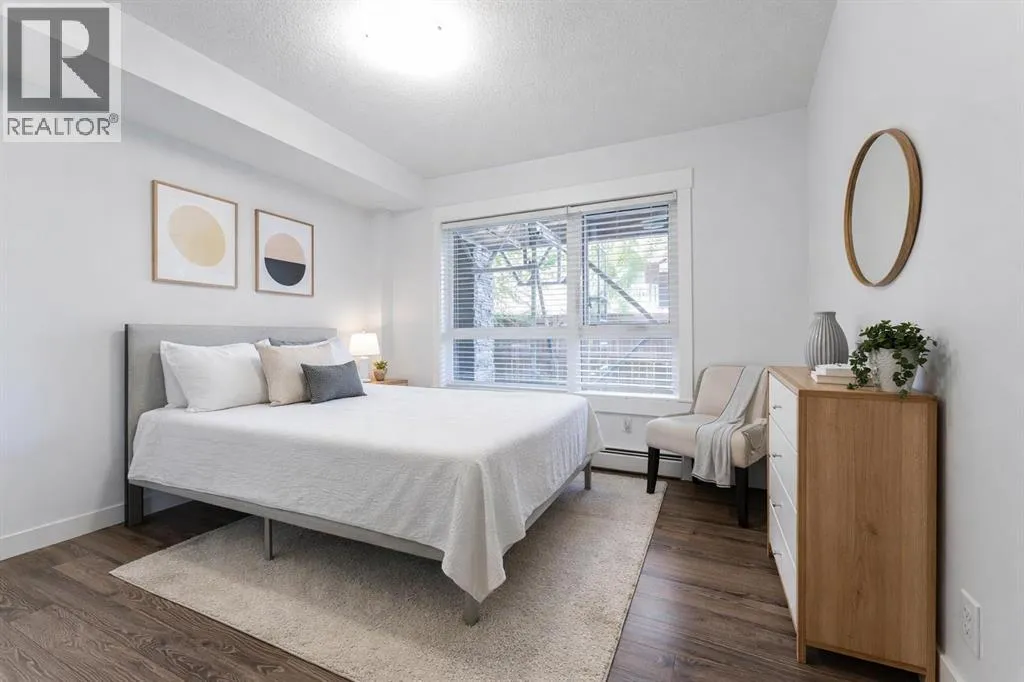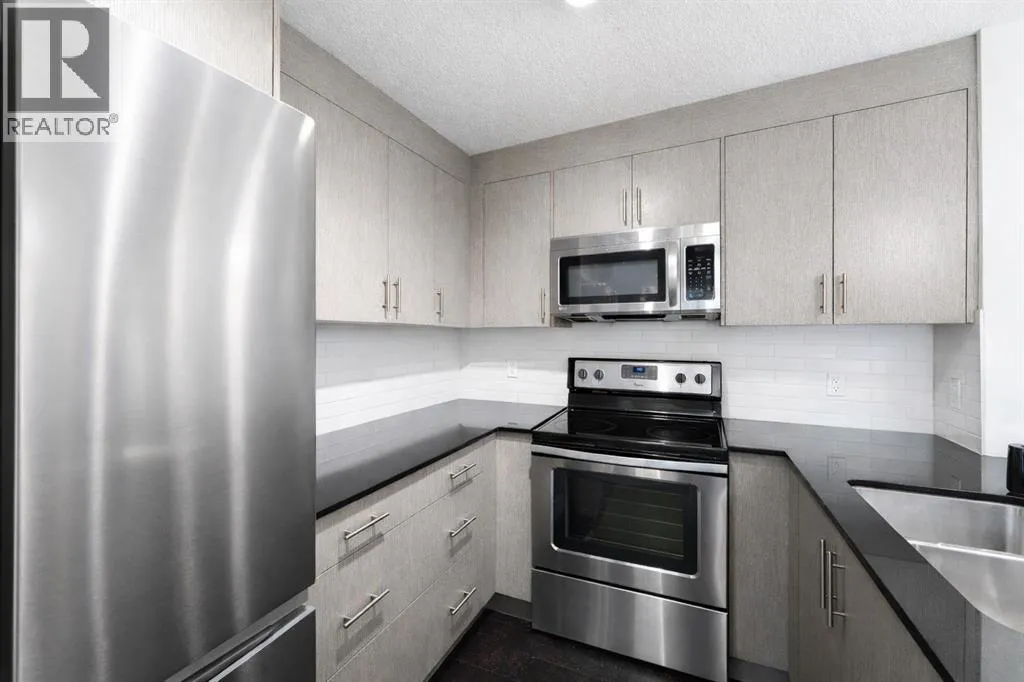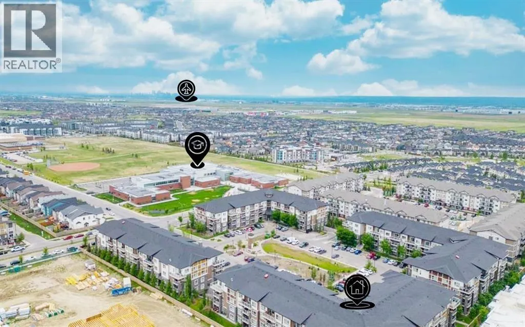 This modern ground-level, end unit offers the perfect blend of convenience and low-maintenance living, featuring 2 bedrooms, 2 full bathrooms, and a spacious walk-out covered patio. Ideally situated in a charming community, youâll be within walking distance to Prairie Sky School, transit, and countless amenitiesâyet still able to come home to your quiet retreat.The ground-floor location allows for easy access while extending your living space outdoors, perfect for summer barbecues or relaxing evenings. Inside, the open-concept design is flooded with natural light from the extra windows only an end unit can offer.The contemporary kitchen is a chefâs delight with quartz countertops, full-height cabinetry, stainless steel appliances, and a peninsula island with breakfast bar, all overlooking the dining and living areas for seamless entertaining. The sunlit living room with large patio doors creates a warm, inviting atmosphere.Unwind in the spacious primary suite with a private 4-piece ensuite, while a second bedroom, another full bathroom, and in-suite laundry add comfort and practicality. Additional perks include heated underground parking and a storage locker.Located in the desirable Skyview Ranch community, youâll be surrounded by parks, schools, shopping, and endless pathwaysâwith quick access to Deerfoot and Stoney Trail.This immaculate home is truly move-in readyâjust unpack and enjoy! (id:27476)