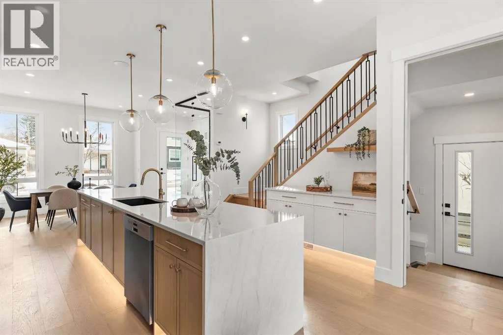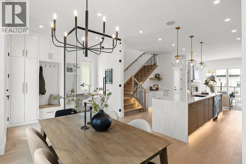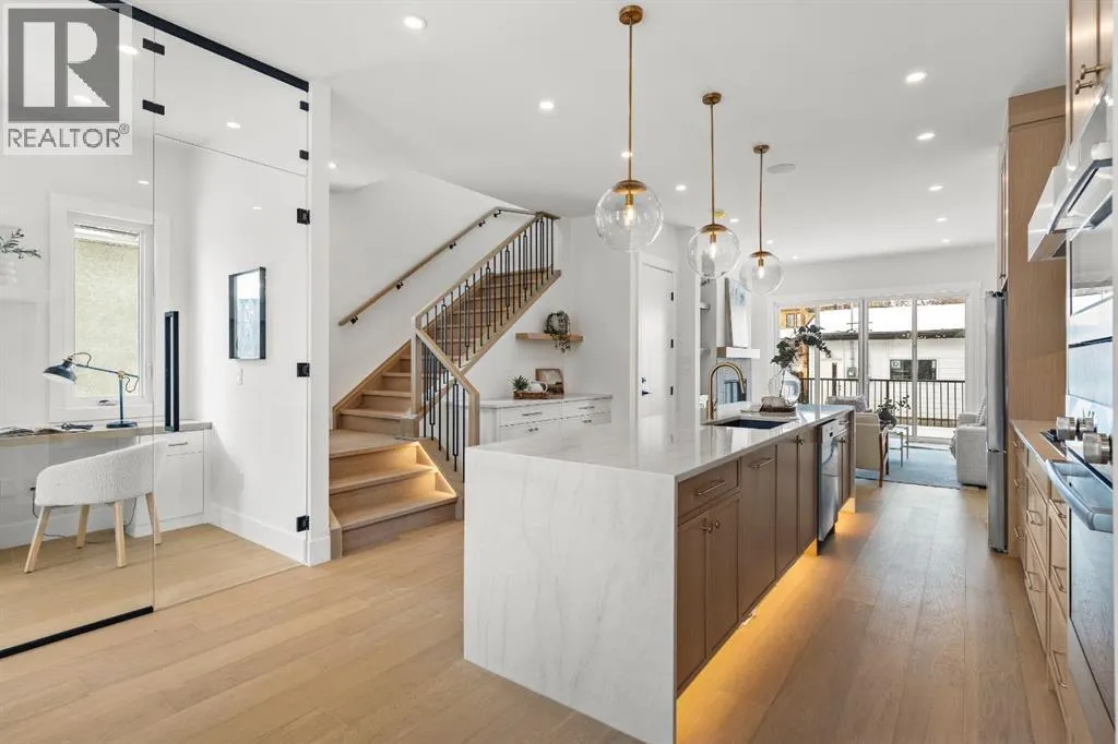 Discover exceptional inner-city living with this custom-built home offering over 2,700 sq ft of thoughtfully designed living space in sought-after Mount Pleasant. With 5 BEDROOMS, 3.5 BATHROOMS and a LEGAL SUITE with side entry, this is the perfect fit for families, investors, or multi-generational living. Step inside to a light-filled main floor with sunny SOUTH EXPOSURE, a built-in bench and dual mudrooms, and a POCKET OFFICE with custom built-insâperfect for remote work. The spacious central kitchen features a striking 14-ft island, stainless steel appliances, and built-in wall oven and microwave, all flowing seamlessly to connect the dining area and rear living room. Living room features a gas fireplace, custom built-ins, and rear PATIO DOOR for indoor-outdoor enjoyment. Upstairs, the luxurious VAULTED CEILING primary suite boasts a large walk-in closet and a stunning 5-piece ensuite with tray ceiling, free-standing tub, and full-height tiled shower with bench. Two additional bedrooms each include TRAY CEILING accents, while the upper laundry room adds convenience with its own sink and cabinetry. The fully developed basement offers a self-contained legal suite with 2-bed layout, SECOND LAUNDRY (with sink & stacked washer/dryer), plus dual access to the mechanical roomâperfect as a mortgage helper or private space for extended family. All this in beautiful Mount Pleasantâjust minutes to downtown with easy access to major roads, steps to Confederation Park, the Mount Pleasant Community Sportsplex, proximity to excellent schools, and top post-secondary campuses. Enjoy peaceful, tree-lined streets and vibrant inner-city convenience in one of Calgaryâs most desirable neighbourhoods. Book your viewing today! (id:27476)