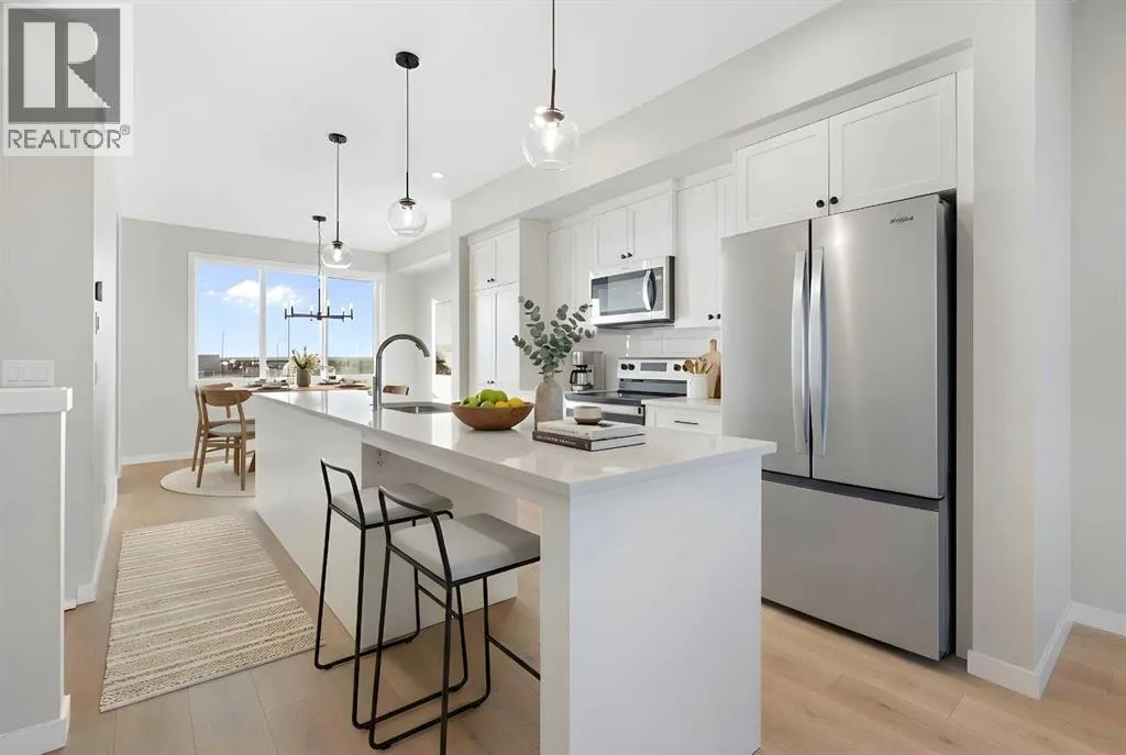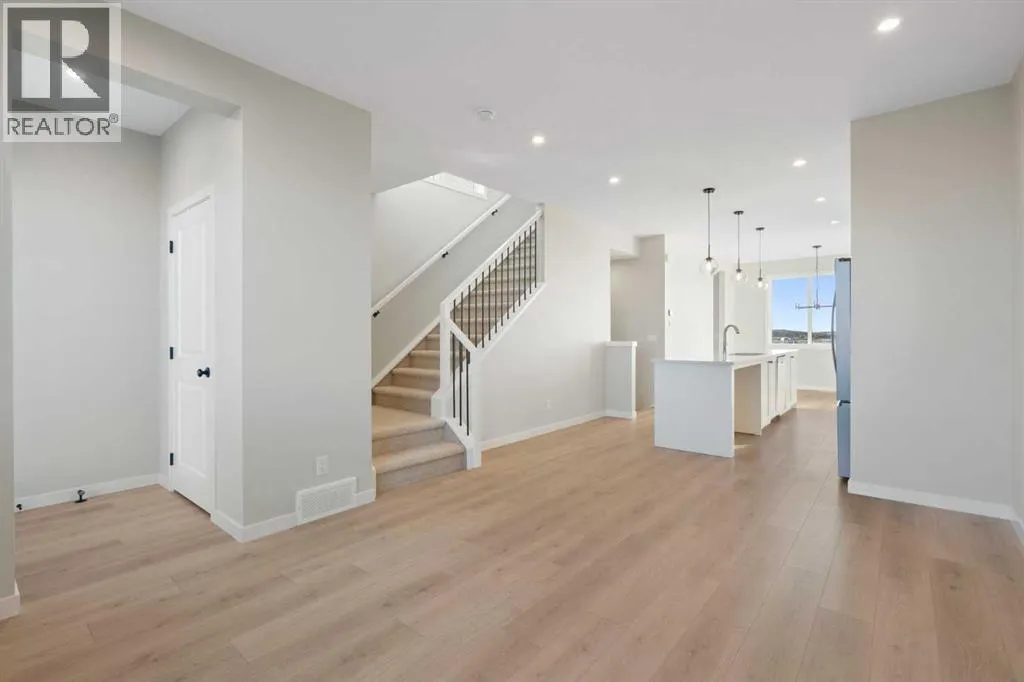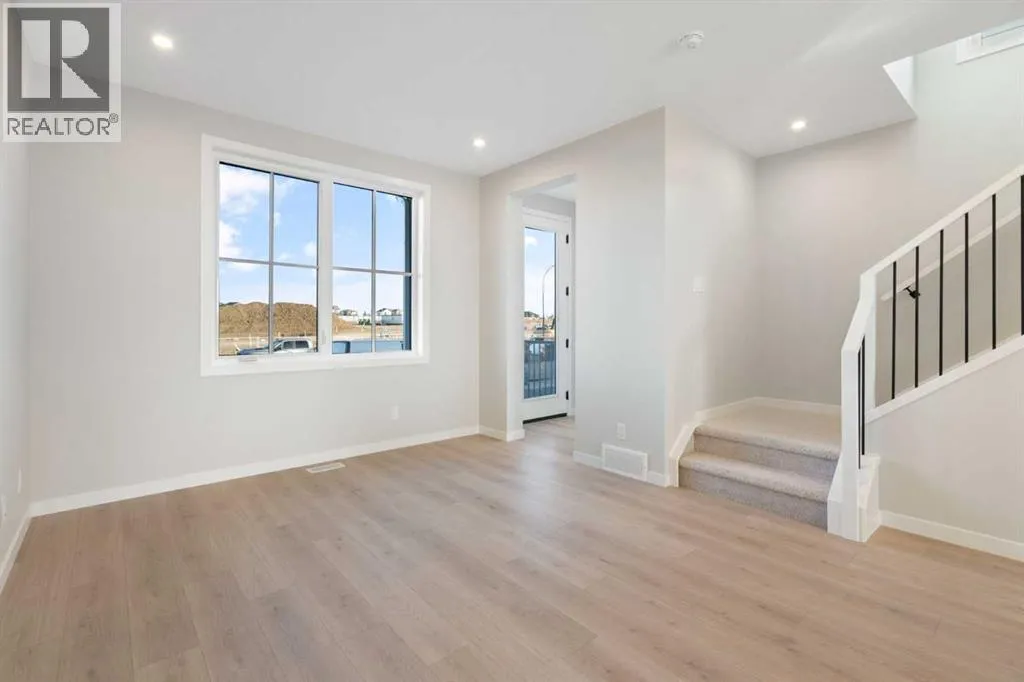 Welcome to this thoughtfully crafted attached farmhouse-style home nestled in Rangeview, Calgaryâs first garden-to-table community. Designed with timeless charm & modern functionality, this home combines character, comfort, & versatility in a way that just feels right. From the moment you pull up, the homeâs classic farmhouse exterior, complete with smartboard detailing and front landscaping, makes a memorable first impression. Inside, the main floor unfolds in a bright, open-concept layout with large windows that bathe the space in natural light and elevate the overall warmth & livability of the home. At the front, the inviting living room offers the perfect place to relax or host guests, framed by soft neutral tones & high-quality finishes, INCLUDING WINDOW COVERIINGS. The chef-inspired kitchen takes center stage. Itâs designed for real lifeâwith plenty of prep space, full-height cabinetry, & modern hardwareâall tied together by sleek countertops & a functional layout that keeps everything within reach. Whether you're cooking for one or a crowd, this kitchen is built to perform & impress. The rear dining area is open & spaciousâeasily accommodating everything from weekday meals to larger holiday gatherings. Just off the dining room, the rear mudroom adds practical elegance with built-in storage and direct access to your private backyard with room for a future garageâideal for Calgaryâs changing seasons and everyday convenience. Upstairs, the primary suite offers a peaceful retreat, featuring a spa-like ensuite with tasteful finishes, a walk-in shower, & space to truly unwind. Two additional bedrooms provide flexibility for kids, guests, or a home office, & the upper-level laundry (WASHER & DRYER INCLUDED) adds convenience without sacrificing space. The home also includes a separate side entrance, creating an excellent opportunity to develop a future basement suite (A secondary suite would be subject to approval and permitting by the city/municipality) âperfect fo r multi-generational living or added income potential. Built with energy-efficient triple-pane windows, this home delivers year-round comfort & long-term savings without compromising on design. But why Rangeview? More than just a neighbourhood, Rangeview is a lifestyle centered around food, connection, & community. As Calgaryâs first agri-urban community, itâs designed to inspire & connectâoffering everything from community gardens & edible landscaping to seasonal food festivals, markets, & workshops. Itâs a place where neighbours become friends & the simple act of growing, cooking, & sharing food brings people together. Stroll along walkable streetscapes, unwind in scenic parks, & discover a vibrant calendar of community events designed to enrich your everyday life. With stunning architecture, thoughtful urban planning, & a warm, welcoming spirit, Rangeview is a place to plant roots. (id:27476)