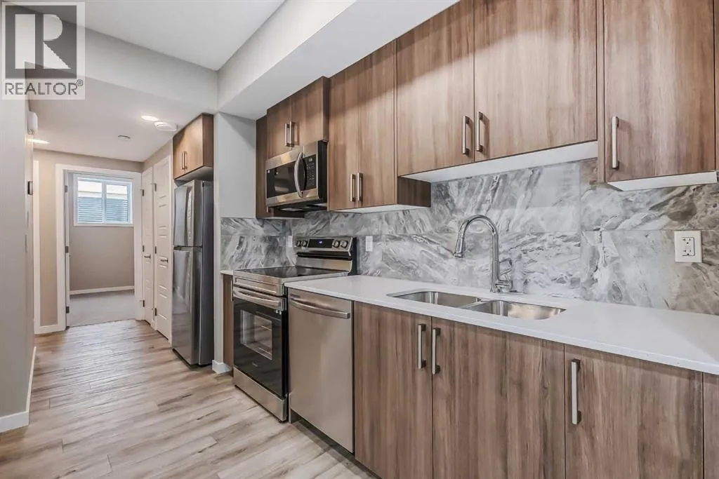 BETTER THAN NEW, AND GENERATING AIR BNB REVENUE FROM THE LEGAL BASEMENT SUITE. This Excel Built Home is called the Windsor, and is one of the builder's favorite plans. This delightful home has been NICELY UPGRADED with LVP flooring, quartz countertops, Taller cabinetry adding elegance and grandeur to the kitchen. On the main floor you have a den/office room with a door giving it privacy and can be used as a main floor bedroom (by adding a wardrobe closet). The main floor living room has an electric fireplace, 9 floor ceiling heights, and modern colors for designer flare. The second floor features a family room with VAULTED CEILING, additional pot lights to illuminate and brighten the space. Upstairs you will find 3 bedrooms (the master with his and her sinks and a stand up shower), bright neutral carpet and paint choices create alluring spaces you will love. The LEGAL BASEMENT SUITE can be rented or used for extended family that may stay for long visits. Currently, the suite is registered with AIR BNB and is currently occupied until July 2026. The main house is vacant and READY FOR A QUICK POSSESSION! (id:27476)