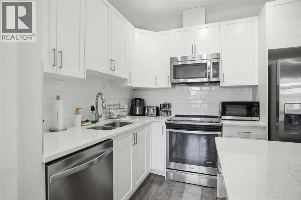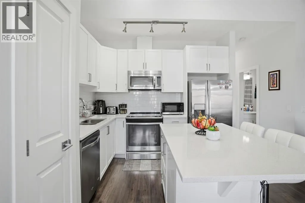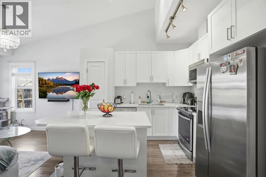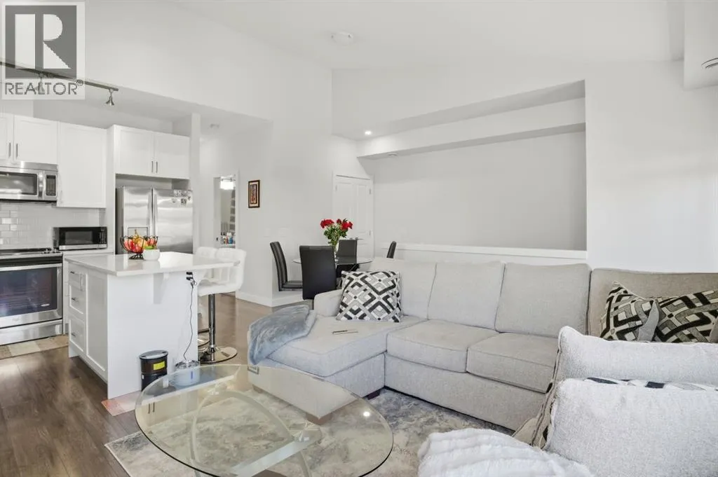 Discover exceptional value and effortless living in this beautifully designed townhouse in the community of Evanston. Perfectly positioned as a corner unit facing the courtyard, this home offers added privacy, abundant natural light, and a bright, airy atmosphere throughout. The thoughtfully designed open-concept layout is enhanced by soaring vaulted ceilings and windows on three sides, creating a warm and inviting living space ideal for both relaxing and entertaining. The contemporary kitchen showcases sleek white cabinetry, quartz countertops, stainless steel appliances, a functional island with seating, and a convenient pantry, delivering both style and practicality. Flow seamlessly from the spacious living and dining area to the covered balcony overlooking the courtyard, a perfect retreat for enjoying fresh air and quiet moments outdoors. The home features two well-appointed bedrooms, including a comfortable primary suite with a generous walk-in closet. A four-piece bathroom and in-suite laundry add everyday convenience to the main level. On the lower level, direct access to the single attached garage is complemented by additional flexible space that can be used for extra storage. Additional highlights include central air conditioning, a desirable courtyard-facing location, and a rare price point for the area. With limited opportunities available in this range, this home presents an outstanding chance to own in one of Calgaryâs most desirable northwest communities. (id:27476)