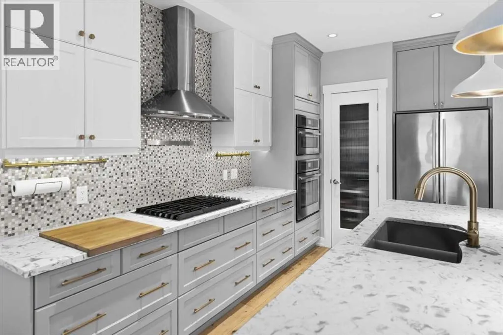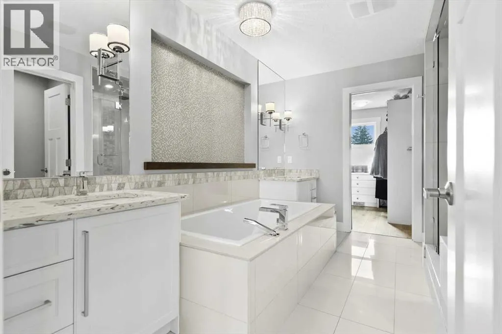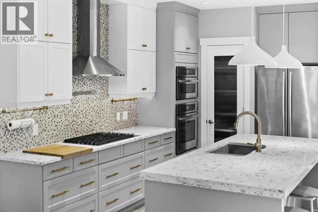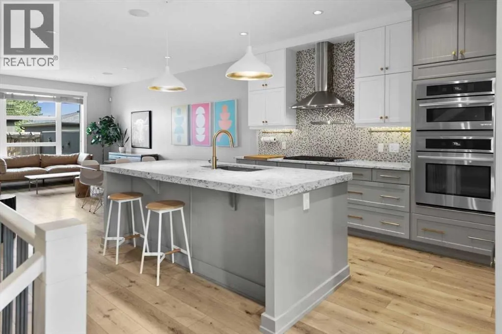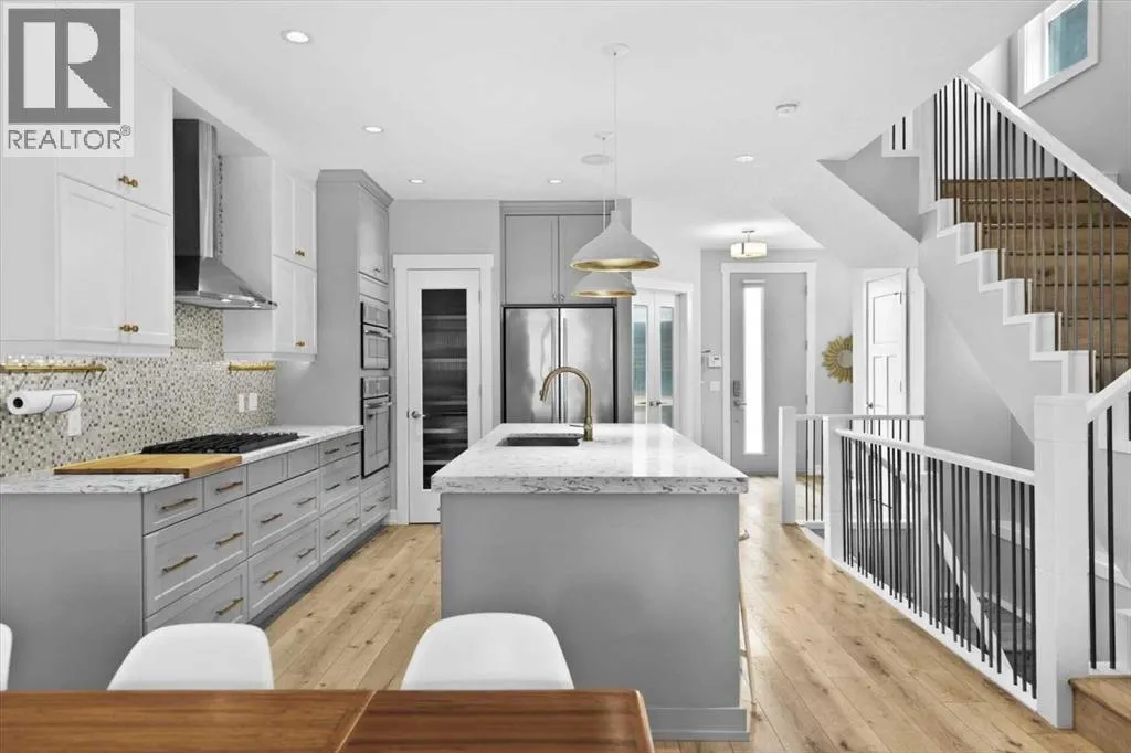 Rarely does a home in an established inner-city neighbourhood deliver this level of space, finish, and thoughtful design. Located in the sought-after community of Banff Trail, this stunning 3-storey semi-detached offers 3,380 square feet of meticulously maintained living space across four levels and designed to impress from the moment you arrive. Exceptional curb appeal and quiet sophistication set the stage for everything waiting inside. The main floor sets the tone immediately. Wide-plank luxury vinyl plank flooring flows through a bright, open layout where natural light pours through oversized windows. A dedicated front office with custom built-ins and tall windows is perfect for remote work, quiet reading, or creative pursuits. The chef's kitchen is the true heart of the home, featuring an expansive quartz island, professional 6-burner gas range, built-in wall oven, premium stainless appliance package, and a generous walk-in pantry ready to elevate every meal from busy weekday mornings to elegant weekend dinner parties. The kitchen flows seamlessly into the family room, where a stone-surround gas fireplace creates a warm and inviting backdrop for relaxed evenings and easy casual gatherings. The second level offers two generously sized bedrooms, each with a walk-in closet and private ensuite. One features a serene 4-piece bath, while the other includes a beautifully appointed 5-piece ensuite with dual vanities and a private water closet. Laundry is conveniently located on this level & sits beside the bedroom with the 5-piece ensuite for added everyday ease. A central flex room completes the floor & works perfectly as a media space, playroom, or cozy reading nook for the whole family. Ascend to the third-floor primary loft, the true showpiece of the home. This expansive retreat features a spacious bedroom with its own lounge area, and a boutique-style walk-in closet with custom built-ins. The luxurious ensuite impresses with heated floors, dual vanities, a steam s hower, and a deep soaker tub. Begin your mornings bathed in natural sunlight and end your evenings in total calm, peacefully elevated above the neighbourhood. The fully finished basement is thoughtfully designed for entertaining and everyday flexibility. A large recreation room anchored by a sleek wet bar sets the stage for game nights and lively gatherings, while an additional bedroom with walk-in closet and a full bathroom makes this level ideal for guests or older teens who need their own space and privacy. Throughout the home, built-in speakers elevate every occasion and central air conditioning ensures year-round comfort. Outside, a private backyard patio is perfect for summer barbecues and unwinding after a long day, complemented by low-maintenance landscaping that offers a peaceful green escape without extra weekend work. A double detached garage at the rear provides secure parking and valuable additional storage for all seasons. Just steps to LRT, top-rated schools, Crowchild Trail, and 16 Avenue. (id:27476)