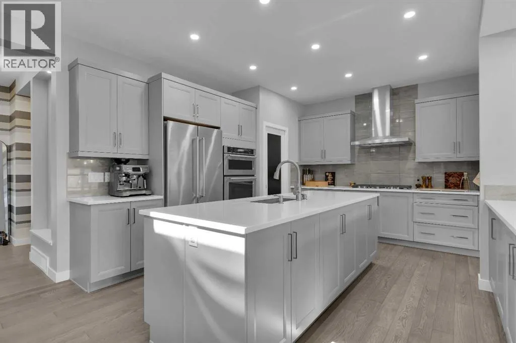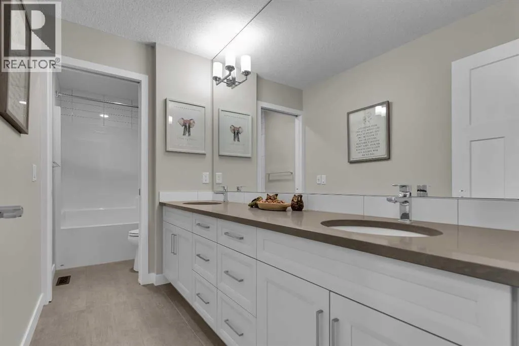 This former Jayman Showhome, built with the renowned/most sold âLauren 26â design, offers over 3,400 sq. ft. of beautifully finished living space. Proudly owned by the first owner (The owner has lived in the property for 3 years and 4 months) and meticulously maintained, this home is loaded with over 100k upgrades, exceptional craftsmanship, and thoughtful design that will impress the moment you step inside. The open main floor welcomes you with a spacious foyer, an enormous upgraded kitchen featuring double islands with Quartz countertops, and high-end KitchenAid stainless steel appliances. The living room is anchored by an upgraded fireplace, creating the perfect space for family gatherings. Upstairs, you will find three large bedrooms, including a stunning master retreat with a luxurious en-suite, as well as a separate bonus room with elegant Glass French Doors. The fully finished basement expands the living space with a media room, flex room, and a fourth bedroomâperfect for family, guests, or entertaining. Notable upgrades include Quartz counters throughout, engineered hardwood flooring on the main, Hunter Douglas blinds, 12 Solar panels, central air conditioning, and more. This is your opportunity to own a show-stopping Jayman-built home that combines quality, comfort, and modern design. Donât just imagine itâmake it yours today. (id:27476)