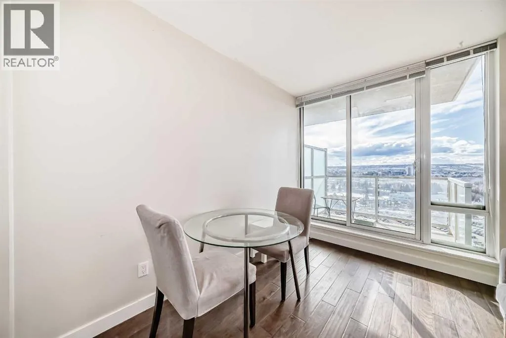 Unbeatable mountain views from the 16th floor! From the moment you step into this bright and welcoming apartment, the panoramic views immediately capture your attention. Enjoy sweeping vistas of the mountains and city from the living room and primary bedroom â a truly stunning backdrop for everyday living. Natural light pours into the home thanks to South facing windows. Even the second bedroom enjoys a window, bringing in natural light and views. The bedrooms are separated by the full bath. The kitchen showcases sleek white cabinetry, and the home is complete with the convenience of an in-suite washer and dryer. There is air conditioning as well. There is space for a dining table, and plenty of space in the living room to enjoy those views! Additional highlights include a titled underground parking stall and an assigned storage locker. The building is ideally located within walking distance to the Brentwood LRT Station, the University of Calgary, shopping, grocery stores, restaurants, pubs, and cafés, this home offers exceptional convenience for students, professionals, or investors alike. And did we mention the views? They truly are spectacular. (id:27476)