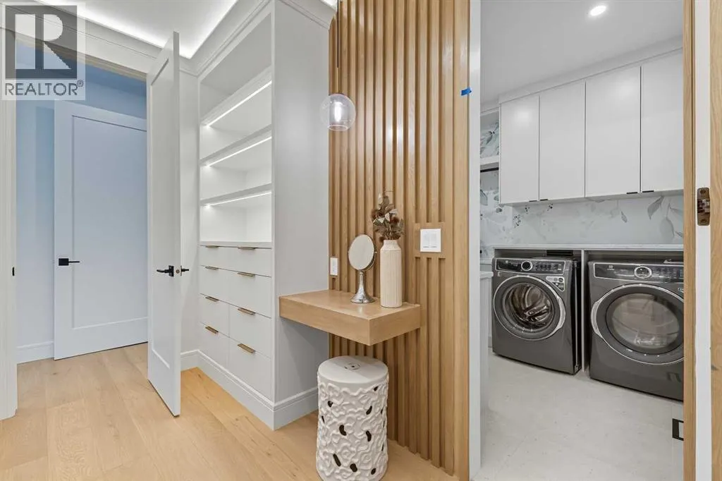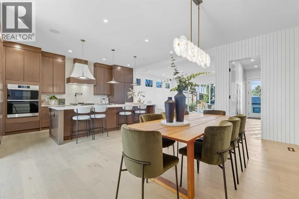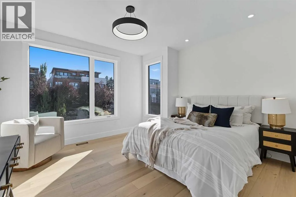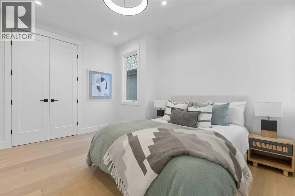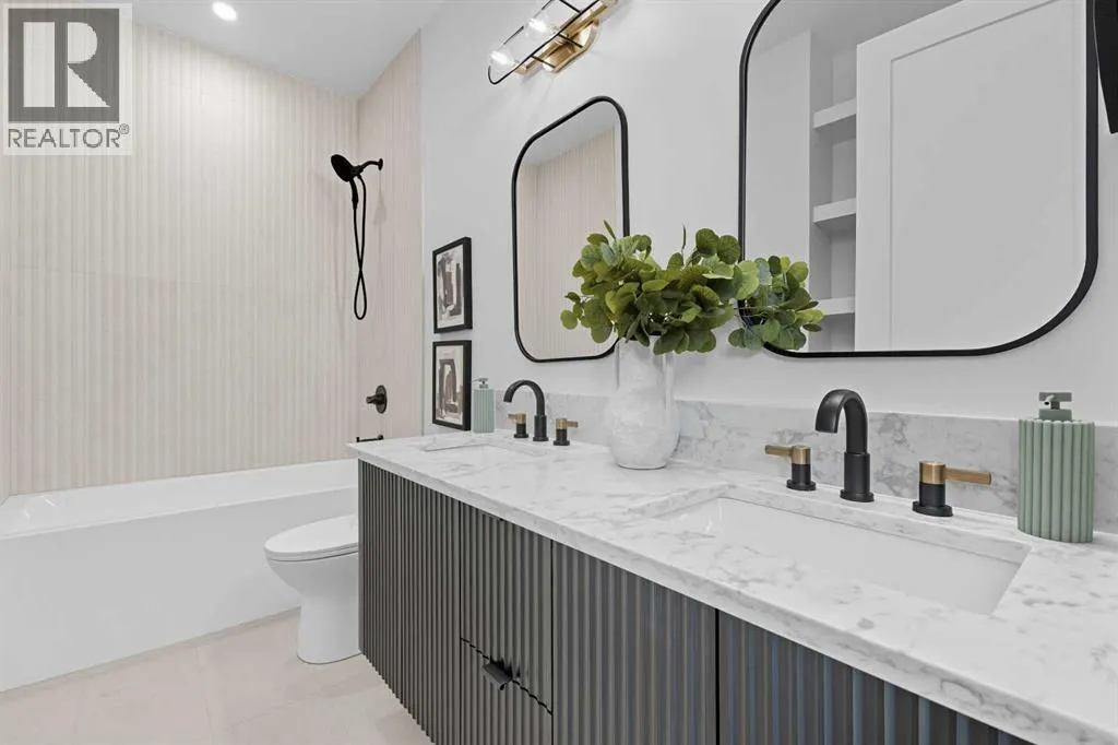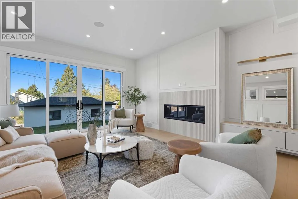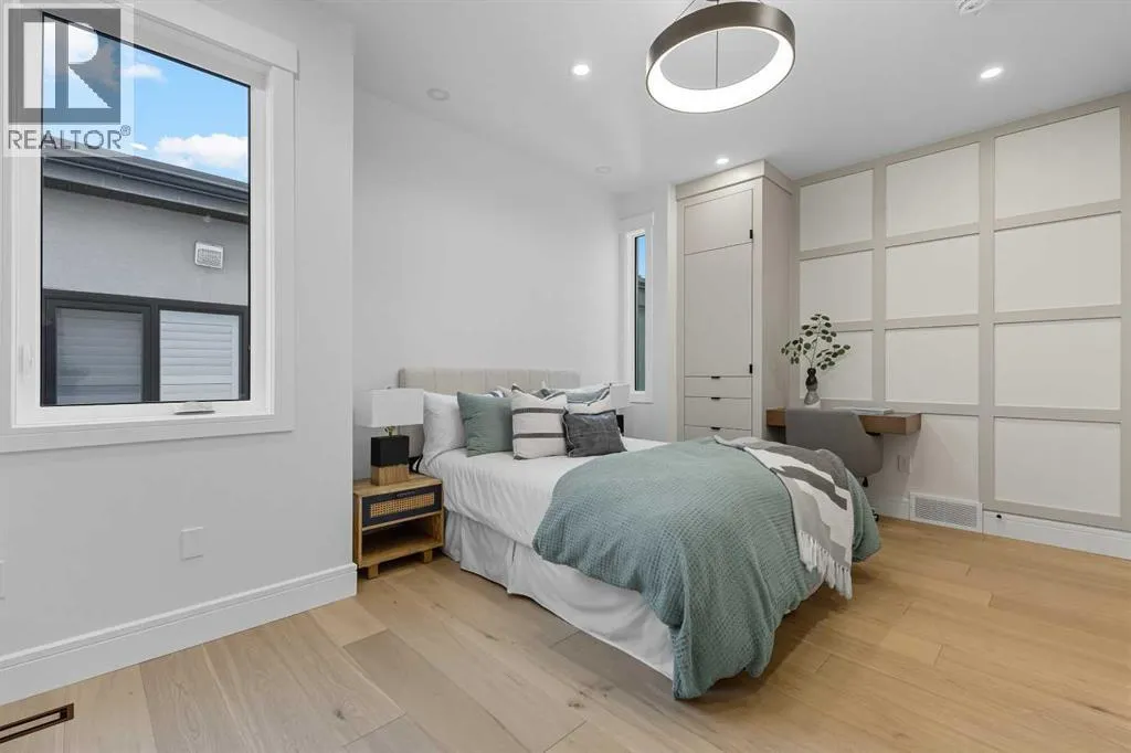 OPEN HOUSE SATURDAY, APRIL 4TH FROM 1-4 PM & SUNDAY, APRIL 5TH FROM 1-3 PM. Perched on coveted 29th Avenue with UNPARALLELED CITY, DOWNTOWN & MOUNTAIN VIEWS amongst multi-million dollar homes, this exquisite, brand new 3+1 bedroom home is situated on a 33âx125â lot & exudes the epitome of luxury, offering over 4500 sq ft of developed living space. The open, airy main level presents engineered hardwood floors, lofty ceilings & chic light fixtures, showcasing a grand foyer with floor to ceiling Rift cut oak cabinets & textured feature wall that leads to a kitchen thatâs impeccably finished with chamomile butter quartz counter tops, large island/eating bar, fluted cabinets with spice drawers, corrugated tile backsplash, convenient pot filler & stainless steel appliance package. A walk-in butler pantry with extra utility sink & extra storage thatâs perfect for storing small appliances is an added convenience. The spacious dining area with built-in hutch & 2 paneled beverage fridges, provides ample space to host family & friends. The living room is anchored by a feature fireplace & wainscoted feature wall. Completing the main level, is a handy mudroom with hexagon tile floors, built-in cabinets & hooks plus a 2 piece powder room. An elegant open riser staircase with glass inserts leads to the second level that hosts 3 bedrooms, a 5 piece main bath & laundry room with sink, lots of storage & hanging racks. The primary retreat is a true private oasis, featuring a sitting area with cozy double sided fireplace, to-die-for walk-in closet with laundry room access & zen-like 6 piece ensuite with heated floors, large vanity with dual sinks, relaxing freestanding soaker tub & rejuvenating steam shower. A third level loft with magnificent feature wall, wet bar & access to north & south decks with UNMATCHED MOUNTAIN VIEWS plus CITY & DOWNTOWN VISTAS is the ideal space for entertaining. A den/study area & 2 piece powder room are the finishing touches to the third level. Basement dev elopment includes a large family/media room with wet bar & charming wine room â perfect for game or movie night. A dedicated home gym with glass doors, epoxy flooring, mirrored wall & electrical for a TV delivers the perfect setting early morning workouts. The fourth bedroom with walk-in closet & large spa-like 3 piece bath with steam shower complete the basement. Other notable features include built-in speakers on each level, wainscoting detail throughout plus roughed in A/C. Outside, enjoy aggregate walk-ways & private back yard with patio & access to the double detached garage with rough in for heat.. This outstanding inner city home is located close to trendy Marda Loop, excellent schools, shopping, public transit & has easy access to 33rd & 26th Avenues & Crowchild Trail. (id:27476)