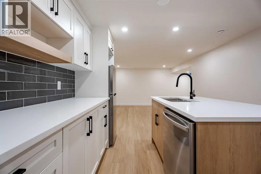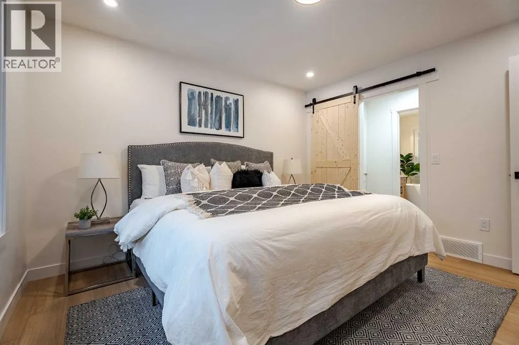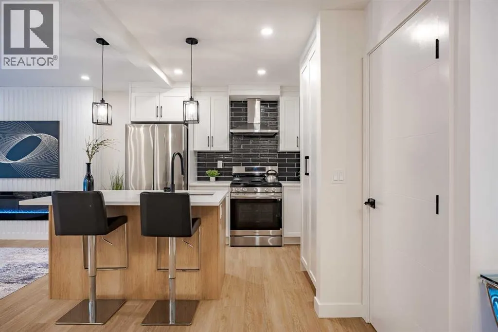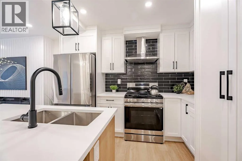 If a home could make a lasting impression, this one certainly does. Welcome to this extensively renovated, down-to-the-studs bungalow in the desirable community of Acadia, where every detail has been thoughtfully redesigned and nothing left untouched. From the new exterior, furnace, hot water tank, windows, doors, trims, flooring, and cabinetry, to the high-end finishes throughoutâthis home offers the perfect blend of modern style and everyday functionality. Ideally located just steps from schools, parks, and playgrounds, and only minutes from major shopping and amenities along Macleod Trail and Heritage Drive, the location is as convenient as it is desirable.From the moment you arrive, the homeâs stunning curb appeal sets the tone. Board and batten siding, custom exterior lighting, and large windows create a timeless modern aesthetic. Inside, a spacious entryway welcomes you into the open-concept main floor, where warm luxury vinyl plank flooring flows seamlessly throughout. The inviting living room features a custom fluted fireplace and a large picture window that fills the space with natural light. At the heart of the home is the beautifully designed kitchen, showcasing ample shaker cabinetry, a textured island with quartz countertops, a built-in pantry, and stainless steel appliances. The dining area is highlighted by a large light fixture and a sliding patio door that leads directly to the backyard. Down the hall, a stylish 3-piece bathroom with custom tile-work adds a touch of everyday luxury. The primary retreat offers space for a king-sized bed, a custom walk-through closet with built-in cabinetry, and a private spa-inspired 5-piece ensuite featuring a dual vanity, freestanding tub, and glass shower. An additional bedroom with a large window and closet completes the main level. The fully finished basement is equally impressive, offering a spacious recreation area perfect for relaxing or entertaining. A sleek kitchenette with new stainless steel appliances, a modern 4-piece bathroom, and two large bedrooms provide incredible flexibility for extended family, guests, or additional living space. A private laundry and utility room complete the lower level. Step outside to enjoy the generously sized yard, complete with a concrete patio and gas line for summer BBQs. The oversized double garage with an extra-large overhead door is perfect for car enthusiasts or additional storage. Stylish, functional, and completely move-in ready, this one-of-a-kind property truly has it all. Book your private showing today and experience it for yourself. (id:27476)