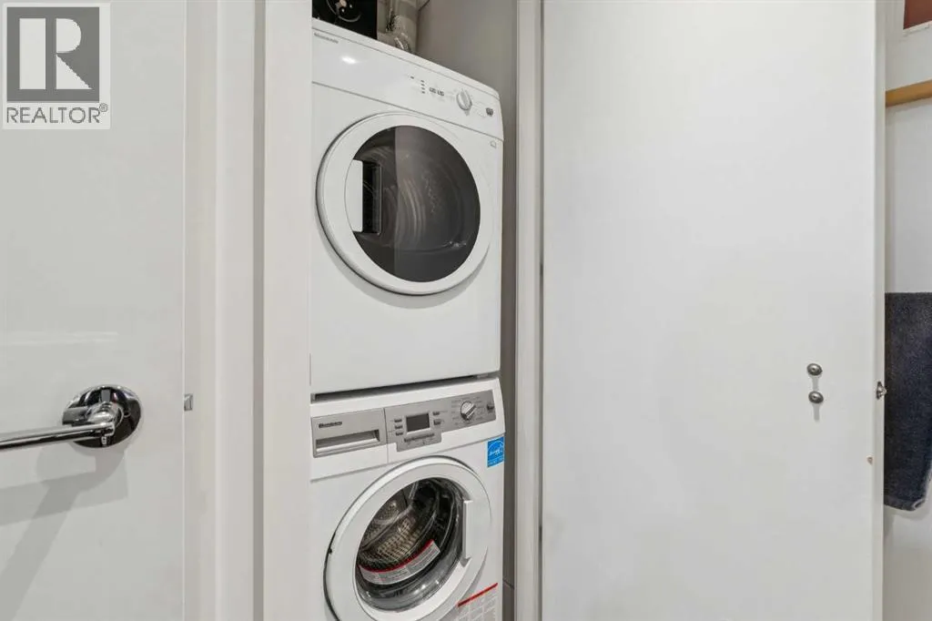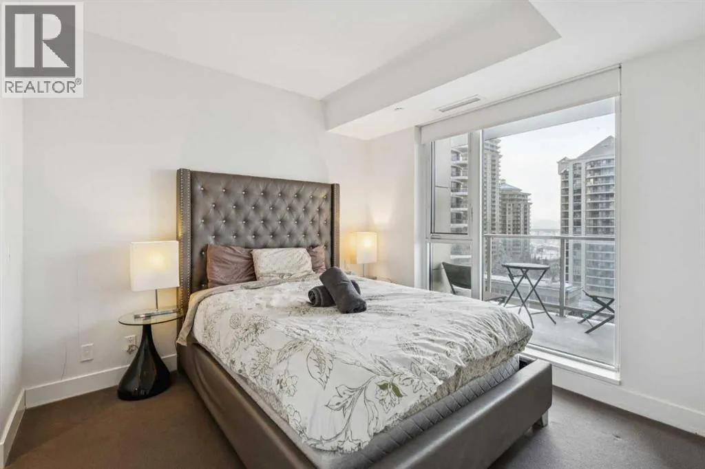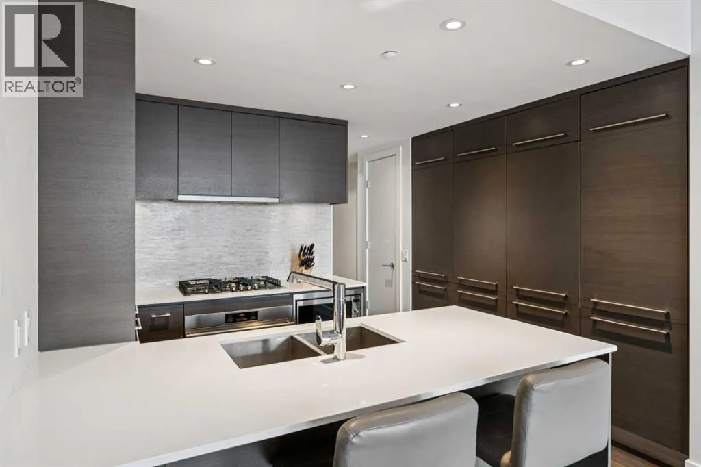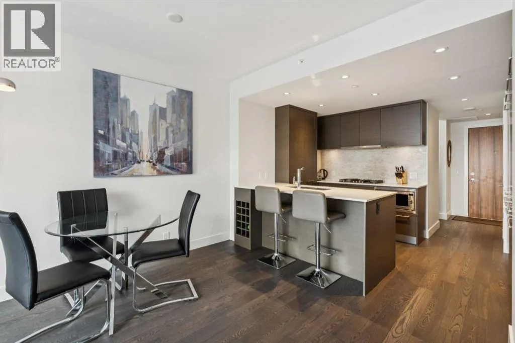 Experience refined urban living with unobstructed river views at Avenue West, one of Calgaryâs premier concrete residences in the Downtown West End. This sophisticated 1 Bedroom plus Den with 1.5 Bathroom home just under 700 sq.ft. showcases a bright, open concept design with floor to ceiling windows, built in features and central air conditioning throughout. The chef inspired kitchen is elegantly appointed with full height flat panel wood cabinetry, quartz countertops, a gas range, integrated and stainless steel appliances and a generous island, perfect for both entertaining and everyday living. The serene bedroom offers ample of closet space, tranquil retreat complemented by a sleek, modern 5 piece ensuite and in suite laundry, titled underground parking stall and titled storage locker. Step onto the private balcony and enjoy peaceful city and river surroundings. Avenue West offers residents an exceptional level of service and amenities including a beautifully designed concierge attended lobby, state of the art fitness centre, secure entry and professional management. Ideally located just steps from the Bow River pathway system, LRT, Kensington, Eau Claire and Calgaryâs finest dining and boutique shopping, this is elevated downtown living at its finest. Some of the furniture can be included in the sale, book your private showing today! (id:27476)