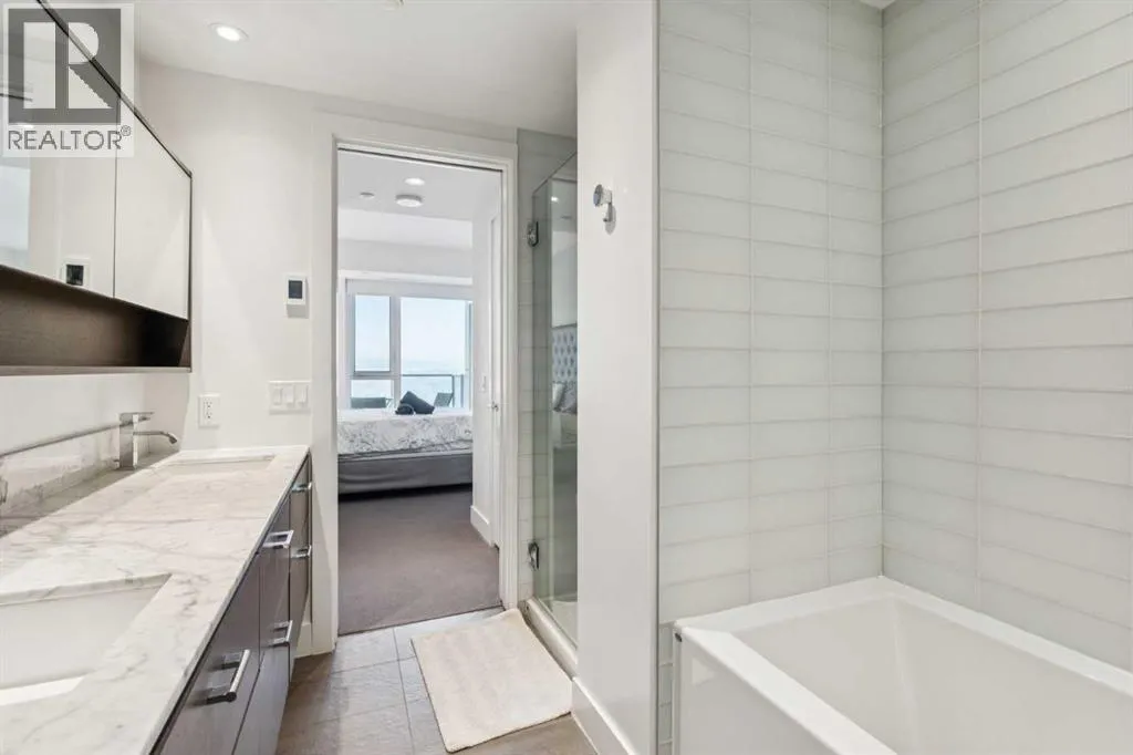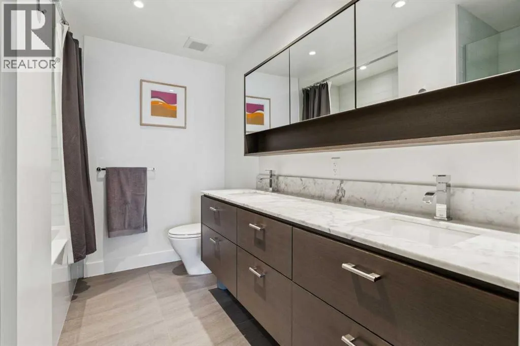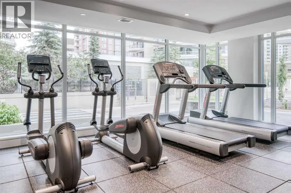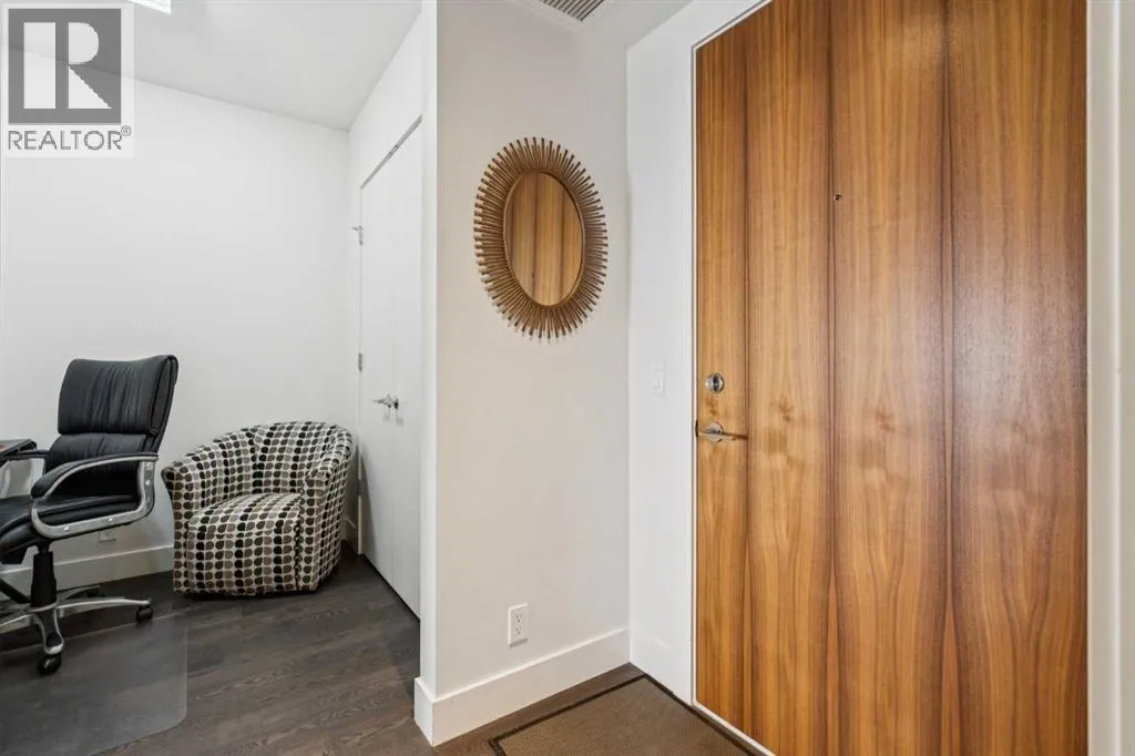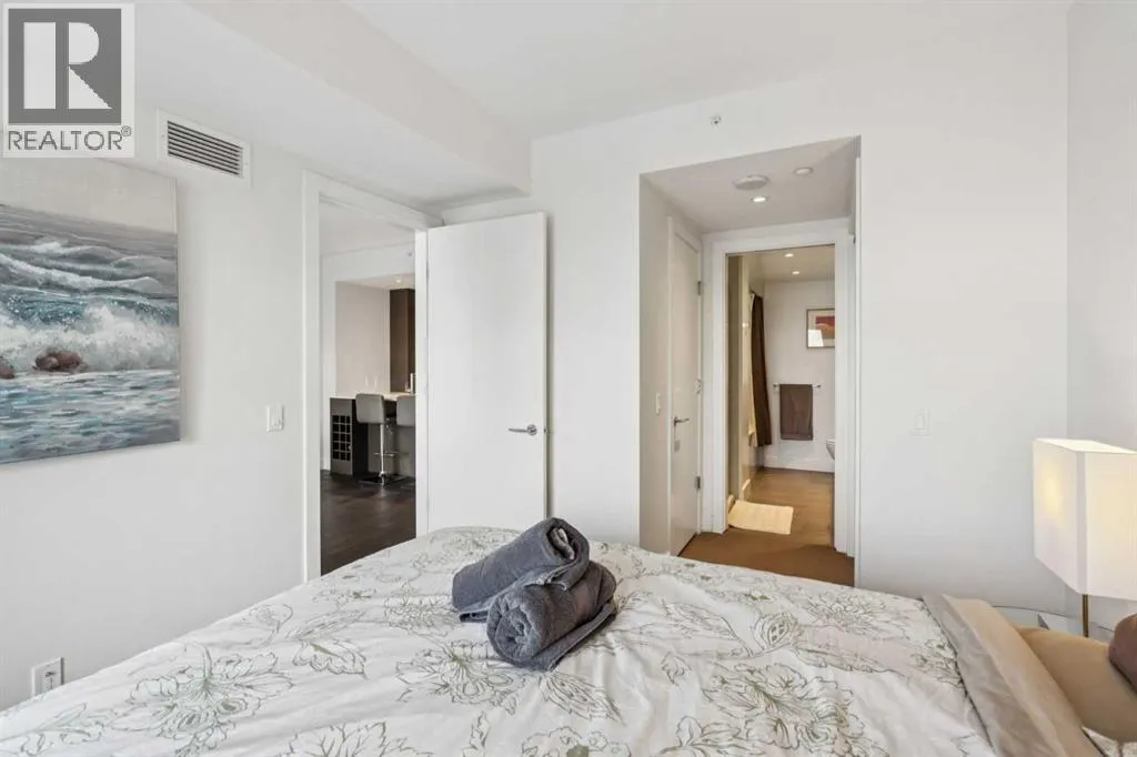 Experience refined urban living with unobstructed river views at Avenue West, one of Calgaryâs premier concrete residences in the Downtown West End. This sophisticated 1 Bedroom plus Den with 1.5 Bathroom home just under 700 sq.ft. showcases a bright, open concept design with floor to ceiling windows, built in features and central air conditioning throughout. The chef inspired kitchen is elegantly appointed with full height flat panel wood cabinetry, quartz countertops, a gas range, integrated and stainless steel appliances and a generous island, perfect for both entertaining and everyday living. The serene bedroom offers ample of closet space, tranquil retreat complemented by a sleek, modern 5 piece ensuite and in suite laundry, titled underground parking stall and titled storage locker. Step onto the private balcony and enjoy peaceful city and river surroundings. Avenue West offers residents an exceptional level of service and amenities including a beautifully designed concierge attended lobby, state of the art fitness centre, secure entry and professional management. Ideally located just steps from the Bow River pathway system, LRT, Kensington, Eau Claire and Calgaryâs finest dining and boutique shopping, this is elevated downtown living at its finest. Some of the furniture can be included in the sale, book your private showing today! (id:27476)