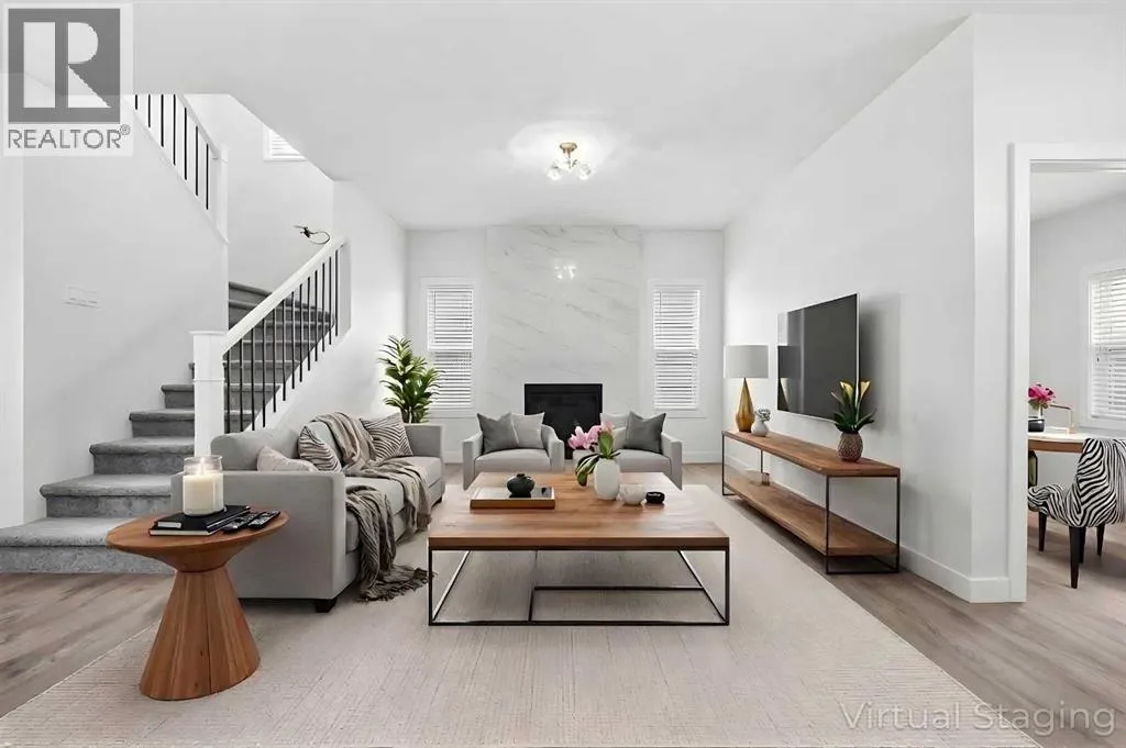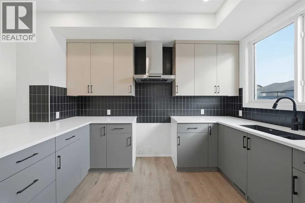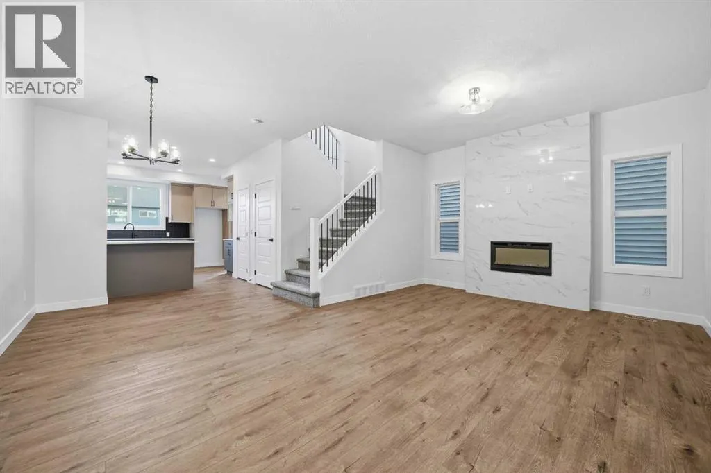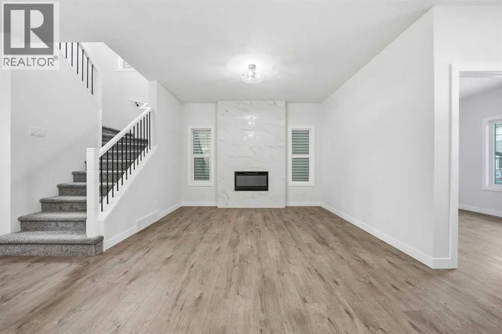 Welcome to this brand new and move in ready Copeland model at 596 Buffaloberry Manor SE. This property by Sterling Homes offers over 1,700 sq ft of thoughtfully designed living space with 3 bedrooms, 2.5 bathrooms, a main floor den, and a versatile upper-level.The main floor has a bright, open layout with luxury vinyl plank flooring throughout. The kitchen is located at the back of the home and features quartz countertops, stainless steel appliances, a chimney hood fan, tile backsplash, and a gas line for a future gas range. It opens up nicely to the dining area and living room, where a floor-to-ceiling tile electric fireplace creates a great focal point. Just off the dining space is the rear deck with a BBQ gas line rough-in, making it easy to enjoy summer evenings outside.Upstairs you'll find a central loft space that works well as a family room, office, or play area. The primary bedroom includes a walk-in closet and a 3-piece ensuite with a tiled walk-in shower. Two additional bedrooms, a full bathroom, and upper floor laundry complete the level.Other features include a main floor den, side entrance, and 9' basement walls, offering good potential for future development. The property also has rear lane access with a parking pad and space for a future detached garage.Conveniently located close to parks, pathways, schools, shopping, and major roadways, this home offers a great balance of comfort and accessibility.A great opportunity to own a brand new home from a reputable builder. (id:27476)