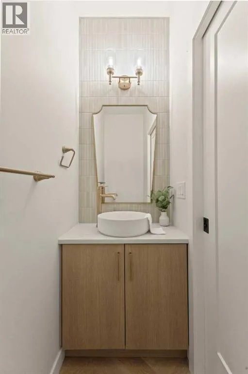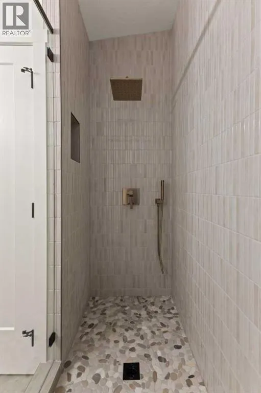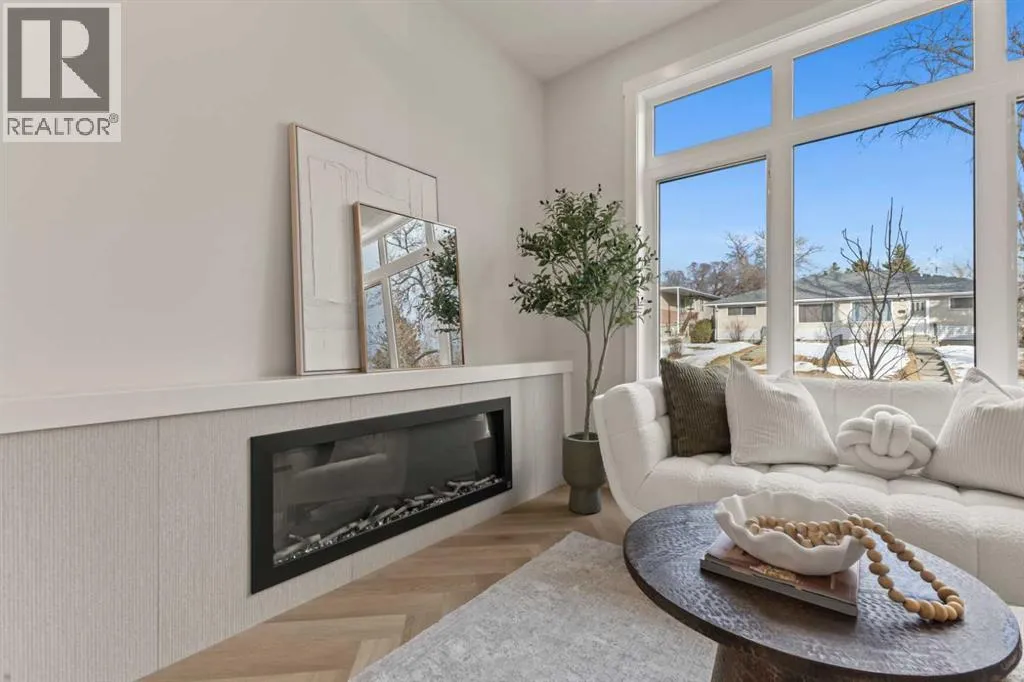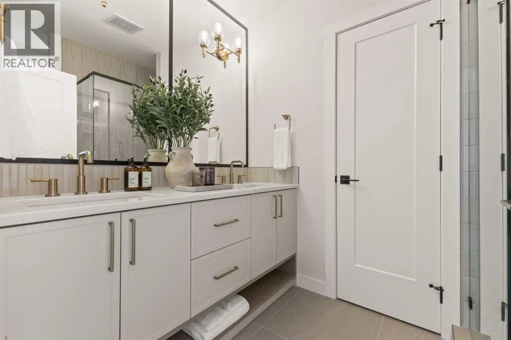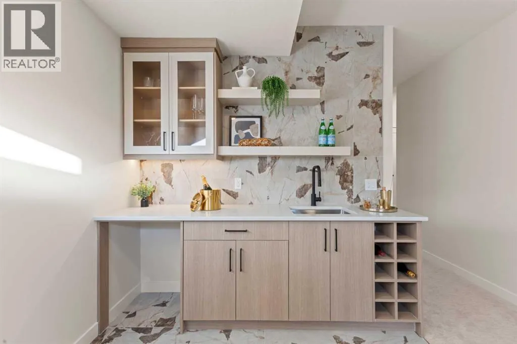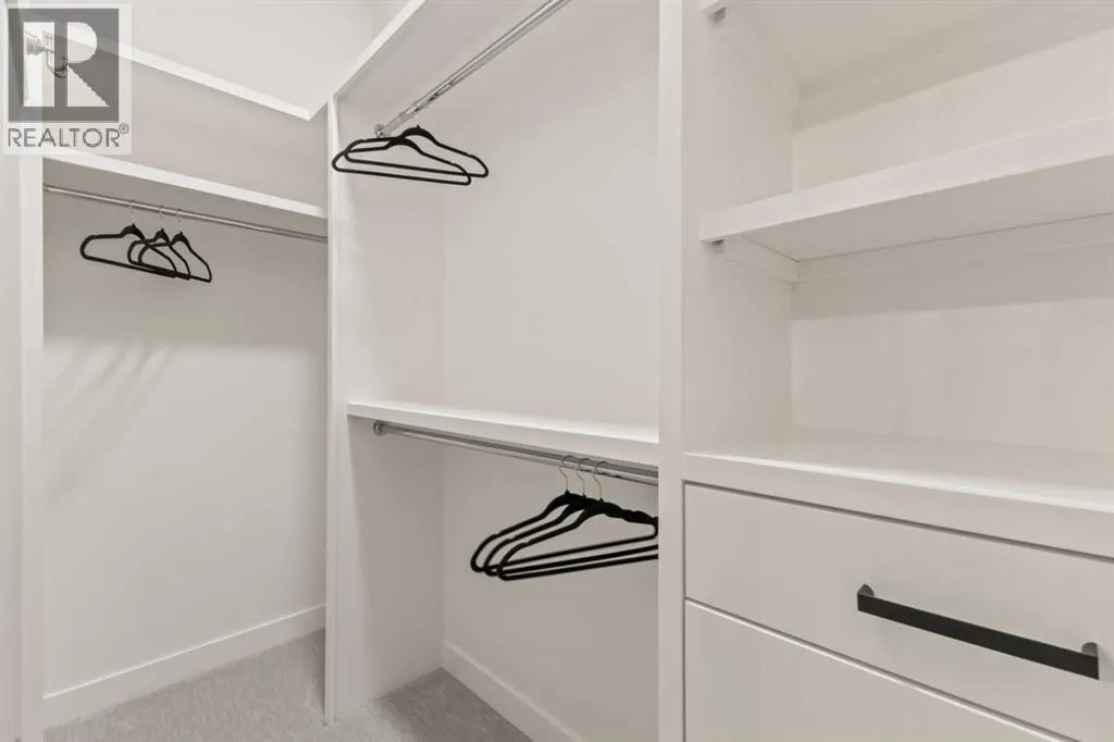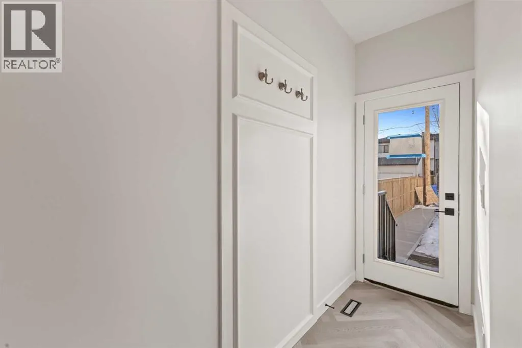 Welcome to THE SEVEN, an exclusive collection of seven luxury three-storey townhomes nestled in the heart of Glenbrook, one of Calgaryâs most sought-after inner-city communities. With 4 bedroom/4.5 bath (3 ensuites) and Designed for elevated urban living, these homes blend modern architecture, refined finishes, and thoughtful design just minutes from downtown.Step inside to a spacious main floor where a generous living room welcomes you with striking herringbone flooring flowing throughout and a beautifully tiled fireplace that creates a warm, inviting focal point. The designer kitchen is built for both everyday living and entertaining, featuring a large statement island, built-in oven and microwave, gas cooktop, and a pantry for seamless storage. The adjacent dining area offers the perfect setting for hosting dinners or relaxed family meals, while the stylish powder room delivers a boutique-hotel inspired feel for guests. A functional mudroom is tucked away at the rear, offering a separate entrance to the backyard and detached garage.The second level features two expansive bedrooms, each with its own private ensuite and walk-in closet, providing comfort and privacy for family or guests. A dedicated laundry room with additional cabinetry adds convenience and smart storage.Occupying the entire third floor, the grand primary retreat is a true sanctuary. Enjoy vaulted ceilings, elegant wall sconces, and a statement hanging chandelier above the bed, along with direct access to a private balcony perfect for morning coffee or evening relaxation. The spa-inspired ensuite features a dual vanity, stunning tile work, and a glass-enclosed shower, while the walk-in closet is finished with custom shelving and built-in cabinetry.The fully developed basement expands the living space with a large recreation room, stylish wet bar with under-cabinet lighting to set the mood, an additional bedroom, and a full bathroomâideal for guests, entertaining, or movie nights.Outside, residents enjoy a shared landscaped green space leading to a detached garage, while the homeâs exterior showcases a modern stucco façade accented with warm orange Hardie board details for striking curb appeal.Located in the vibrant community of Glenbrook, youâre just a short drive to downtown Calgary while enjoying the charm of established inner-city living, with nearby parks, schools, restaurants, and everyday amenities all within easy reach.Experience sophisticated design, modern comfort, and urban convenience at THE SEVEN. (id:27476)