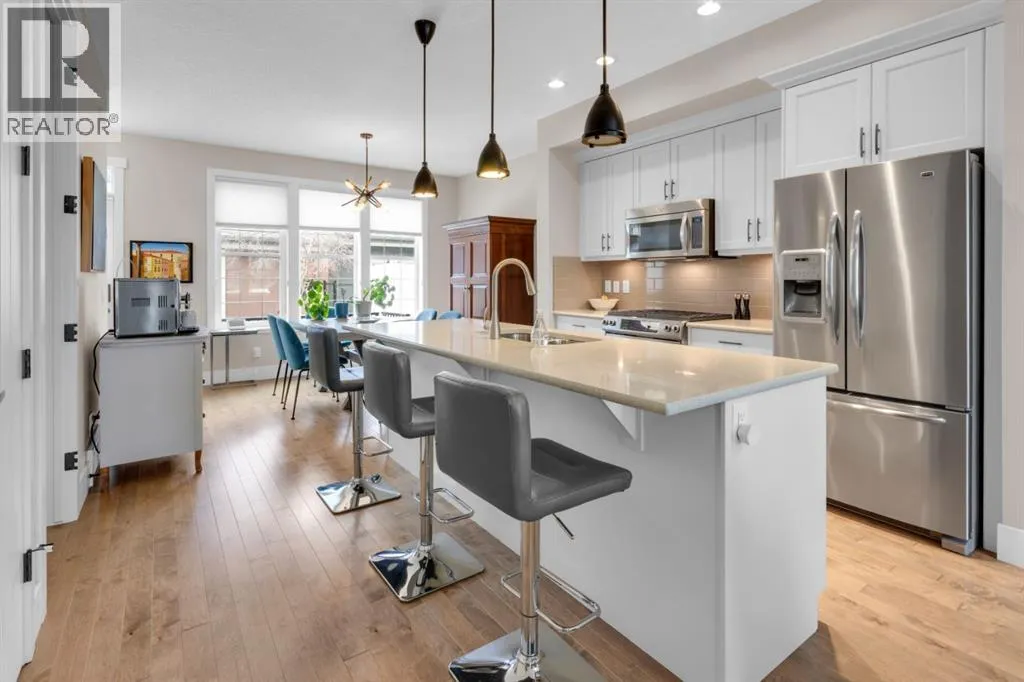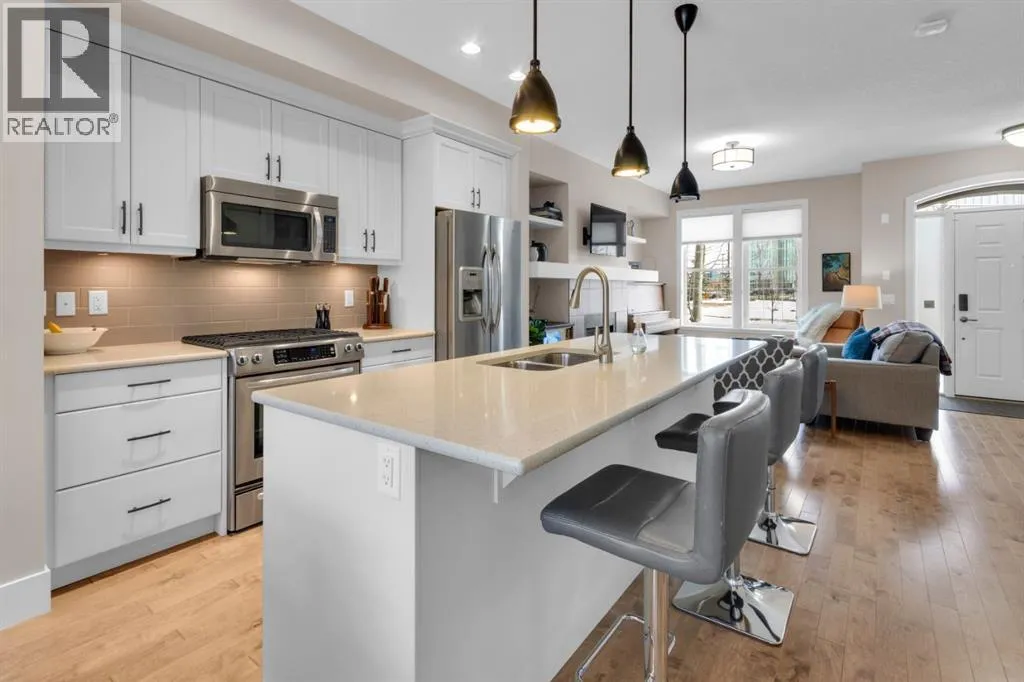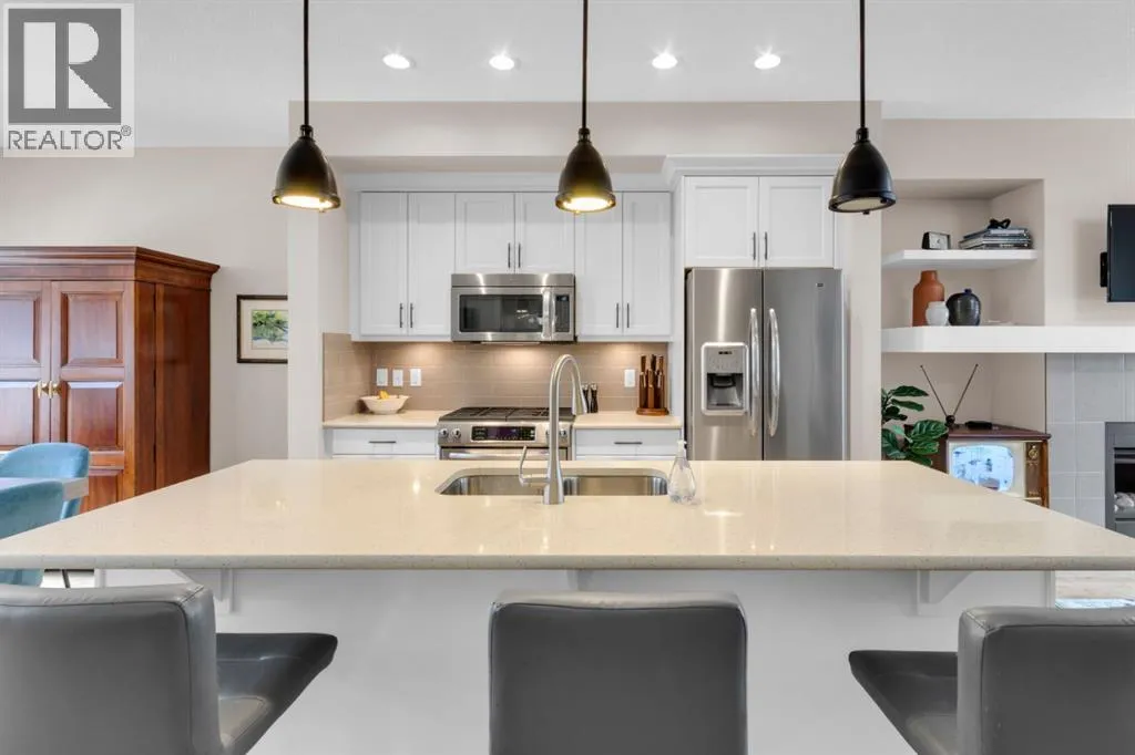 Welcome to Quarry Park, one of Calgaryâs most vibrant and thoughtfully planned communities. Known for its beautiful green spaces, walkable pathways, and convenient amenities, Quarry Park offers an exceptional lifestyle along the banks of the scenic Bow River. Residents enjoy easy access to parks, off-leash dog areas, extensive pathway systems, boutique shopping, local cafés, and popular neighbourhood pubs â all while being ideally located for commuting to downtown or anywhere across the city.This stylish two-storey townhouse blends comfort, functionality, and modern design. With its separate front entrance from the street and a private fenced backyard, the home offers the feel of a detached property while maintaining the convenience of townhouse living. A detached double garage adds practical everyday ease.The open-concept main floor is bright and inviting, perfect for both daily living and entertaining. The living room centers around a beautiful gas fireplace with built-in shelving, creating a warm focal point. The spacious kitchen features stainless steel appliances, a massive island, and plenty of prep and gathering space. Just off the kitchen, the sunny dining area overlooks the backyard, bringing in natural light throughout the day. A convenient main-floor half bath completes this level.Upstairs youâll find a unique and highly functional layout with two primary bedrooms, each with their own private ensuite. Separating the bedrooms is a dedicated laundry room and built-in desk workspace, offering the perfect spot for working from home or staying organized. There is also a pull-down attic hatch, providing valuable extra storage.The fully developed basement offers a cozy yet open extension of the home. The large family room provides plenty of flexible space and is currently set up for spin bikes and fitness equipment. This level also features a generous third bedroom with large windows, a walk-in closet, and convenient cheater access to a four-piece bathro om, making it ideal for guests or older children.With its smart layout, private outdoor space, and unbeatable location in Quarry Park, this home offers the perfect blend of urban convenience and natural surroundings. (id:27476)