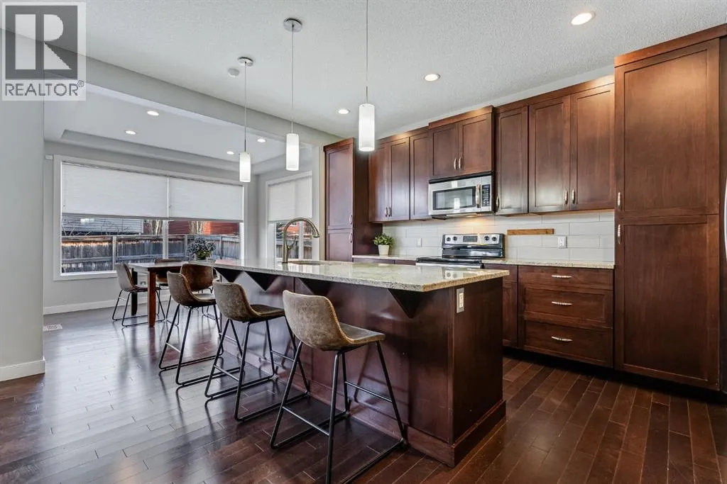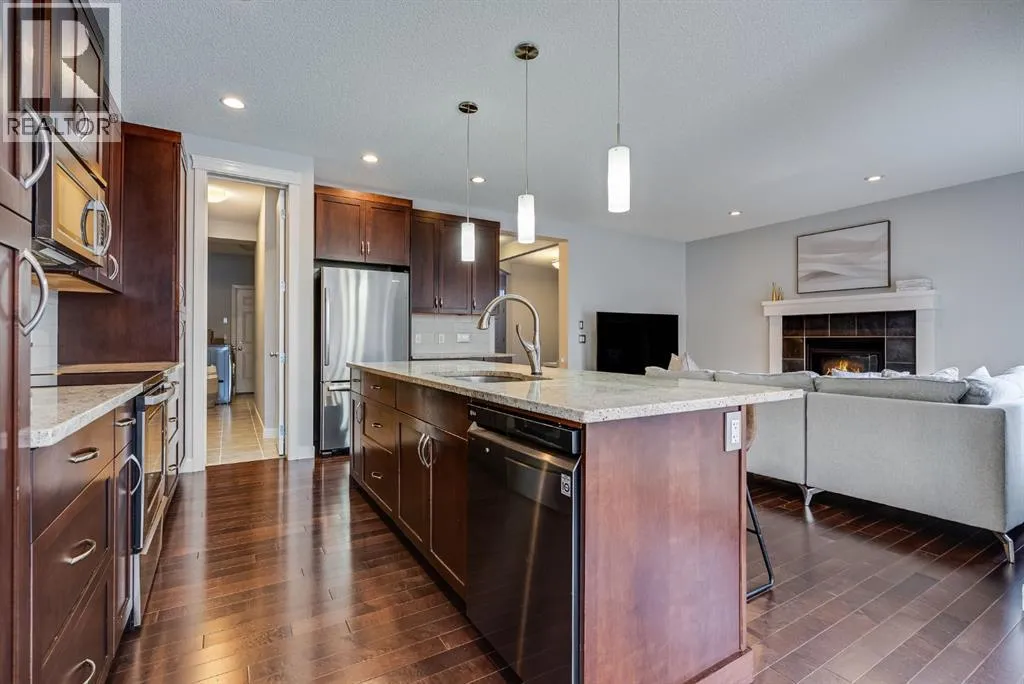 Welcome to this beautiful 5 BEDROOM home with lake access in the highly sought-after community of Auburn Bay. Offering over 2,900 sq ft of developed living space, this fully finished home is perfect for families looking for comfort, space, and style.Step inside to an open concept main floor featuring gleaming hardwood floors, granite countertops, stainless steel appliances, and full-height cabinetry. The spacious kitchen is designed for both everyday living and entertaining, complete with a large walk-through pantry for added convenience. Stay comfortable year-round with central air conditioning. Upstairs youâll find a large primary bedroom with a walk-in closet and a 4-piece ensuite, along with two additional bedrooms with large closest and a bright bonus room filled with natural light, offering the perfect space for relaxing, working, or family movie nights. The professionally developed basement adds even more living space and features two additional bedrooms, a full 4-piece bathroom, and a convenient cold storage room. Additional features include central vacuum, a spacious backyard, and a tiered deck which is perfect for summer gatherings and outdoor enjoyment. Located just minutes from Auburn Bay Lake, parks, schools, shopping, and restaurants, this exceptional home offers the perfect blend of lifestyle and location. (id:27476)