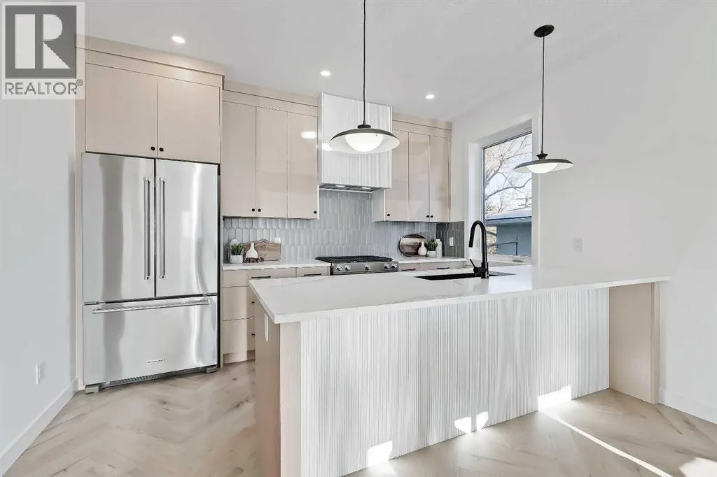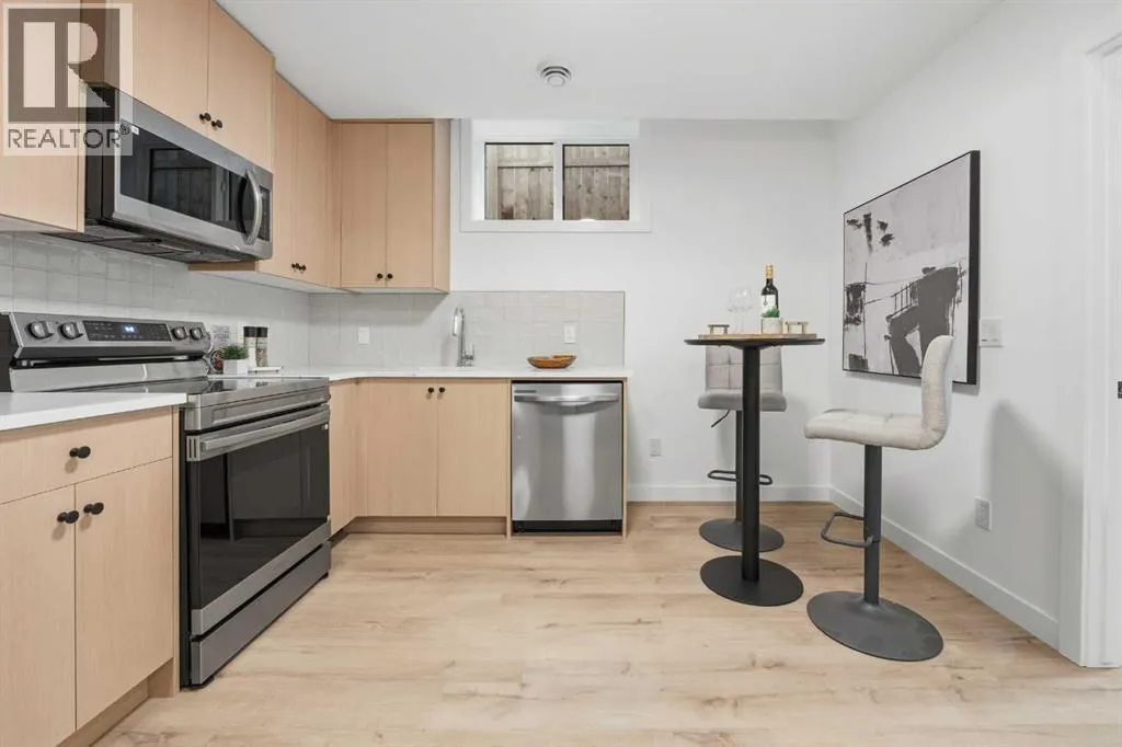 Move into the heart of South Calgary today with this brand-new, walkout townhome that perfectly blends luxury, location, and low-maintenance living! Thoughtfully designed w/ 3 beds, 2.5 baths, and a LEGAL 1 BED SUITE (approved by the city), this is inner-city living without compromise! The interiors strike a perfect balance between modern luxury & livable design. Find high-end finishes that are rare to find at this price point â blonde wood tones, sleek custom cabinetry, and modern & thoughtful tile. Designer hardware, mid-century inspired embellishments, and a clean neutral palette give this space a fresh, elevated vibe. The kitchen is the heart of the home, designed w/ both form and function in mind. A large quartz island anchors the space w/ bar seating for casual meals or morning coffee. There's a full stainless steel appliance package, generous cabinetry, and a stylish backsplash that adds just the right amount of visual interest. It's open to the dining area and spacious living room & balcony, creating the perfect layout for hosting or just relaxing at home. And donât forget the upscale powder room, complete w/ designer lighting. Upstairs, the primary suite feels like a boutique hotel retreat w/ a PRIVATE BALCONY, a large walk-in closet, and a modern 3-pc ensuite w/ a fully tiled walk-in shower. Two additional bedrooms and a full bathroom give you space for guests, kids, or home office! And yes, there's a laundry room upstairs, tucked conveniently between bedrooms. Downstairs is perfectly set up for a mortgage helper, additional income generator, or the perfect spot for multi-generational living w/ a LEGAL 1-BED SUITE (approved by the city). The modern touches flow into this space as well, w/ an open kitchen & living room space w/ ceiling-height cabinetry, stainless steel appliances, and quartz countertops, complete w/ separate laundry, a great-sized bedroom, and a full 4-pc bathroom. There is a separate entrance to the suite, as well as access from the main h ome to the suite for complete ease of use. The suite also boasts a private deck. The low-maintenance landscaping and a detached garage at the back are a serious bonus in the inner city. The backyard also features upright bike racks & secure CycleSafe lockers for added convenience. Youâre tucked into a tree-lined street in South Calgary, but just a short stroll to absolutely everything. Our Daily Brett and South Calgary Pool & library are just at the end of the street, cSPACE King Edwardâs arts & community programming is just a few blocks over, and all the everyday amenities in Marda Loop are w/in walking distance â Blush Lane Organic Market, Safeway, Shoppers, fitness studios, and an incredible lineup of restaurants. Youâre minutes from 17th Aveâs restaurants & nightlife, and a quick commute to downtown! Whether you're looking for a stylish new home in an established neighbourhood or a long-term rental property w/ strong demand, this unit is an incredible opportunity! *pictures from show suite* (id:27476)