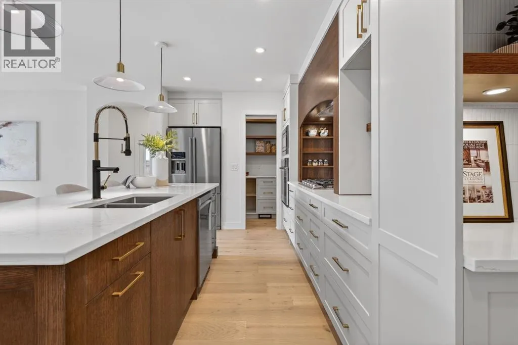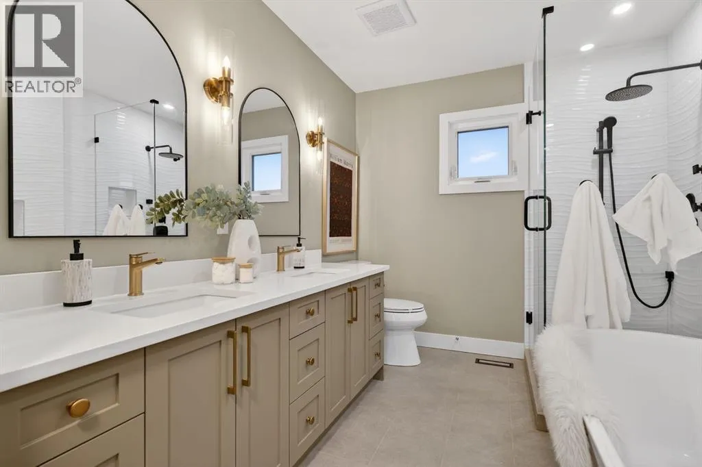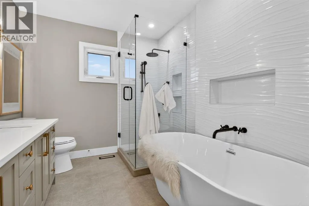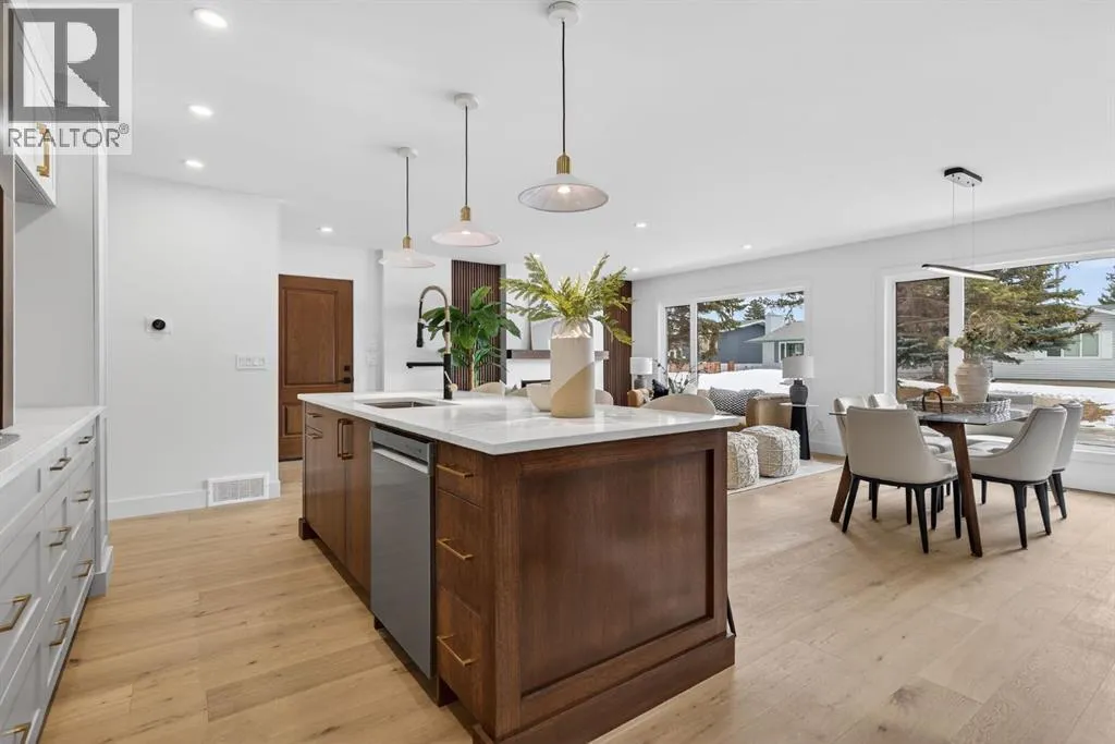Welcome to this beautifully reimagined Maple Ridge bungalow, rebuilt from the studs with exceptional attention to detail and quality craftsmanship throughout. This east-facing home offers the rare combination of modern construction and high-end finishes in one of Calgaryâs most established communities.The thoughtfully redesigned layout features 5 bedrooms and 4 full bathrooms, offering flexibility for families, guests, or multi-generational living. The main floor showcases engineered hardwood flooring, while the basement features luxury vinyl plank flooring, with ceramic tile in the bathrooms and mudroom.At the heart of the home is a stunning kitchen designed for both everyday living and entertaining, complete with quartz countertops, modern cabinetry, and a beautifully designed coffee bar and pantry area.The fully developed basement adds incredible versatility with a spacious living area centered around a sleek linear electric fireplace, a stylish wet bar, and a large recreation space perfect for a home theatre, gym, or games area. Two additional bedrooms and a full bathrooms provide excellent space for family or guests. With a separate side entrance, the lower level also offers potential for a private living area that could be used as a mortgage helper. The basement also includes washer and dryer rough-ins and a central vacuum rough-in for added convenience.Extensive upgrades behind the walls provide peace of mind, with new electrical, plumbing, insulation, drywall, and interior finishes completed as part of the full rebuild.The exterior is equally impressive, featuring durable James Hardie siding, cedar soffits at the front, and aluminum soffits at the rear, combining timeless curb appeal with long-term durability. New roofing shingles, triple-pane windows on the main floor, and a new insulated double detached garage with 10 ft ceilings with a new fence. Located just minutes from schools, parks, golf, shopping, and major routes, this home offers modern living in the heart of the established Maple Ridge community.A rare opportunity to own a fully renovated, move-in-ready home where every detail has been thoughtfully considered. (id:27476)