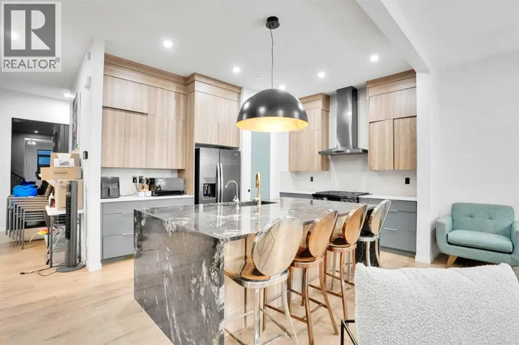 Hereâs a Contemporary Cedarglen CUSTOM HOME in Livingston Calgary AB (Built 2023). Located in the highly sought-after community of Livingston on the NE/NW border, this 2,600 sq ft, two-storey detached home offers nearly-new luxury living with thoughtfully upgraded features and an attached double garage. The main lever features soaring 10 FT CEILINGS enhance the spacious, open-concept layout. A sleek 5 ft-wide gas FIREPLACE anchors the family room, framed by oversized windows for maximum natural light. Private main-floor office with 10 mm GLASS DOORS. Chefâs kitchen boasts floor-to-ceiling cabinetry with a designer hood, QUARTZ BACKSPLASH and countertops, an oversized waterfall island, and premium black appliances including a high-end six-burner gas stove. A walk-in pantry with an additional fridge provides ample storage. UPGRADED light fixtures and oversized windows carry throughout the home. NINE-FOOT CEILINGS continue on the upper floor. Spacious bonus room provides a flexible family space. Expansive primary bedroom with a five-piece ensuite. Two additional large bedrooms and a well-appointed main bath complete this level. Nine-foot ceilings in the walk-out basement await your personal touch, offering potential for future development. New siding on two sides and brand-new roof shingles provide peace of mind. Large, fenced backyard ready for outdoor enjoyment. The DOUBLE ATTACHED GARAGE adds convenience and storage. Situated within Livingston, a premier master-planned community poised to welcome six new schools. Residents enjoy access to the Livingston Hub, maintained by the HOA for recreational amenities and private functions at preferred rates. Quick access to Stony Trail places downtown Calgary within easy reach and makes weekend trips to the mountains a breezeâCanmore is approximately an hourâs drive away. With its generous square footage, high ceilings, modern finishes, and prime location, this well-appointed home offers exceptional value and an opportunity t o enjoy new-build quality without the wait. Hurry & Book showing at this incredible home today. (id:27476)