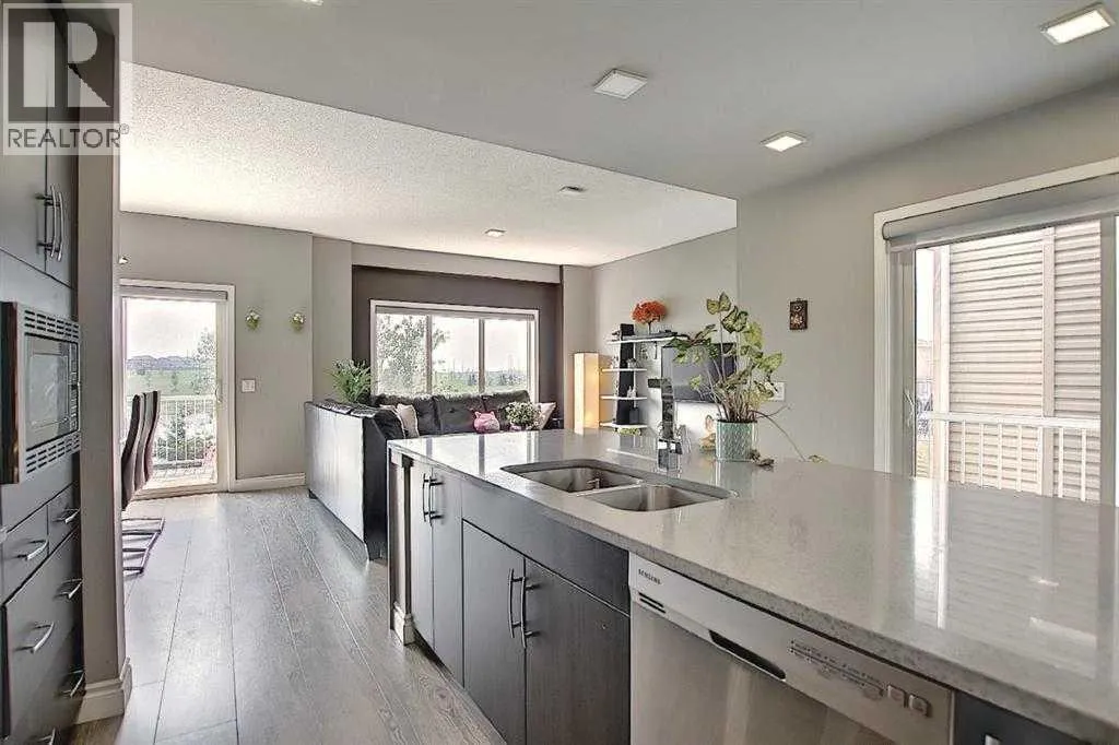 Location Location Location..... ACTUAL WALKOUT HOME BACKING ONTO POND W/ MANY UPGRADES! DOWNTOWN & MOUNTAIN VIEWS! Experience the ultimate walkout home backing onto a serene pond, showcasing numerous exquisite upgrades! Revel in stunning downtown and mountain vistas from your living space. The residence boasts upgraded wide plank laminate flooring throughout, with a spacious living room featuring expansive windows that overlook the tranquil pond. The gourmet kitchen is a chefâs dream, equipped with luxurious quartz countertops with a striking waterfall edge on the island, a chimney hood fan, gas stove, built-in microwave, garburator, energy-efficient LED panel lighting, and a sleek upgraded faucet. The inviting fireplace adds warmth and ambiance. Step outside onto two private decksâone at the sunny south-facing back with a gas BBQ line, perfect for entertaining, and a side deck for more intimate gatheringsâboth offering breathtaking views. Upstairs, enjoy a generous bonus room and a spacious master suite with a luxurious 5-piece ensuite and a full main bath, both featuring upgraded sinks, faucets, quartz counters, and elegant 12âx24â tiles. Two additional sizable bedrooms, an upstairs laundry with a gas dryer (reducing energy costs), and a versatile bonus room with an existing home theatre system enhance the appeal. The walkout basement featuring 9-foot ceilings, insulated subfloors, and elegant double French doors, providing endless possibilities. Outside, indulge in the tasteful brick patio, cozy firepit, and professionally landscaped yard. Modern Hunter Douglas blinds add a touch of sophistication. Conveniently located near public transit, a future school, numerous amenities, and major roads, this home offers spectacular views of downtown and the mountains from both the kitchen and bedroom windowsâwatching airplanes land and take off will ignite your enthusiasm. This exceptional property truly combines luxury, comfort, and breathtaking sceneryâdonât miss your cha nce to make it yours! (id:27476)
