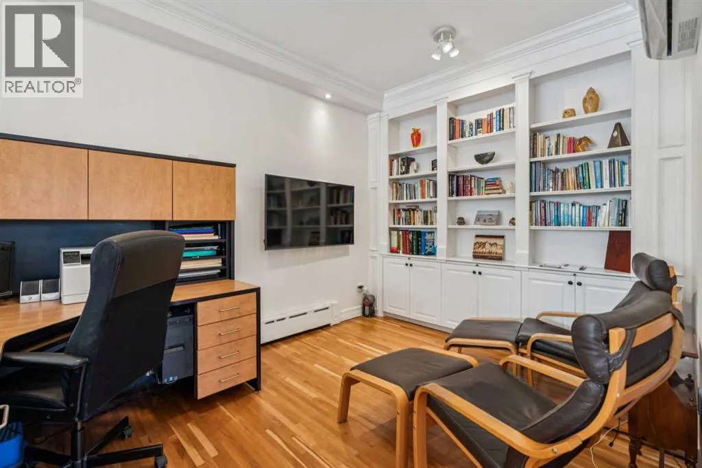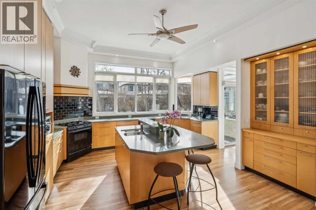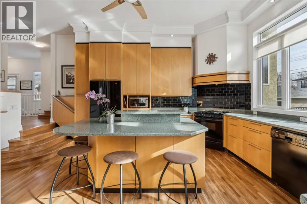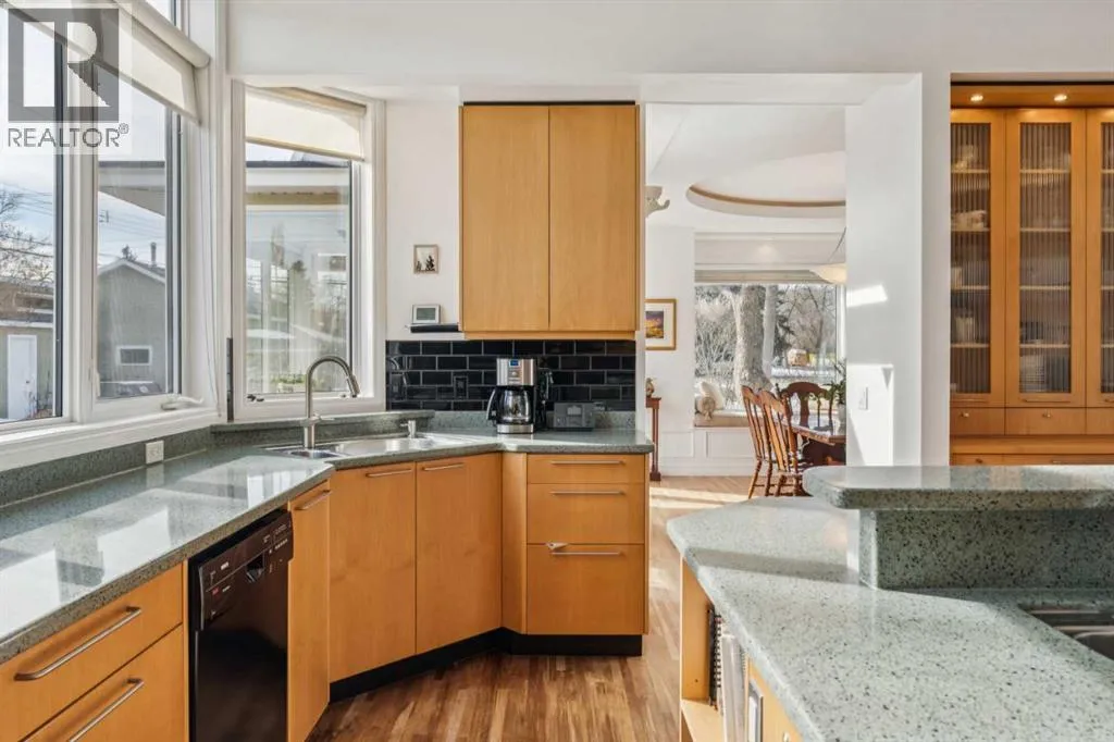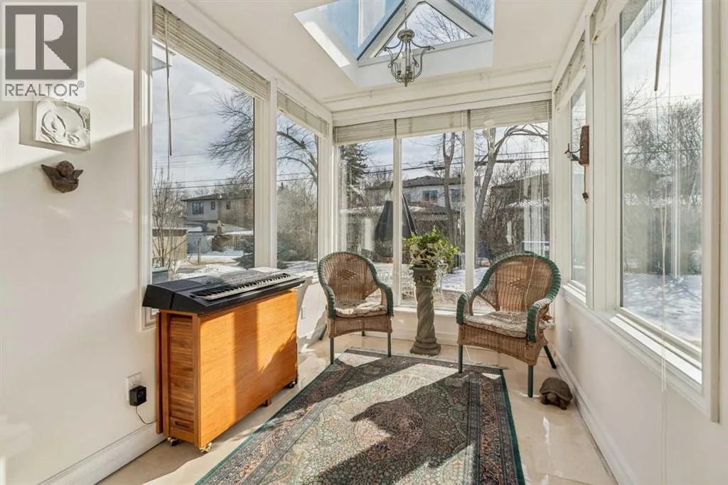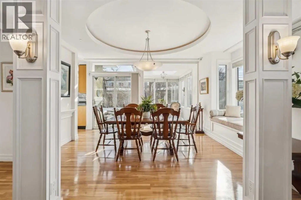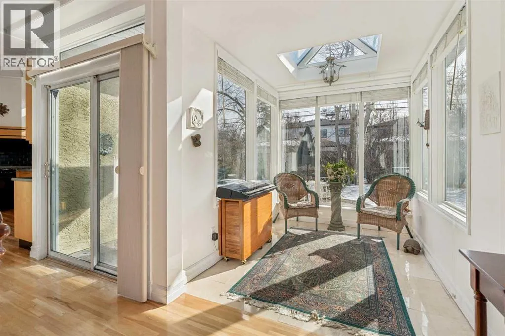 Welcome to Renfrew. This beautifully renovated and expanded mid-century home offers over 2,300 sq. ft. with 4 bedrooms and 3 bathrooms, gorgeous hardwood, highlighted by 9-foot ceilings throughout. A rare inner-city offering, the property features both a double attached garage and a double detached garage, providing exceptional parking and storage.An additional highlight is the future redevelopment potential. Situated on an expansive 11,000 sq. ft. corner lot facing Beaumont Park. Properties of this size are increasingly being redeveloped into multi-plex projects with six or more townhomes, making this an attractive opportunity for investors, builders, or homeowners seeking long-term value.The elegant living room is filled with natural light from an abundance of windows and anchored by a gas fireplace with a substantial mantel and built-in shelving. It flows into the dining areaâperfect for large family gatheringsâand a bright sunroom ideal for plants or a relaxing retreat. The kitchen impresses with an 11-foot ceiling, sleek Denca cabinetry, generous counter space, and large windows overlooking the stunning backyard.The master's quarter's features a walk-in closet and spacious 4 piece ensuite, while two additional bedrooms, a full bathroom, and a versatile denâideal for a home office or libraryâcomplete the main level.The fully developed lower level offers an entertainment room, kitchenette/summer kitchen, 4th bedroom, second laundry area, and direct access to the Double Attached Garage. A Double Detached Garage and 40-foot driveway provide additional parking for vehicles, hobbies, or even an RV. Additional highlights include a 60,000 BTU heat pump for efficient heating and air-conditioned comfort and a rainwater capture system. With spring just around the corner, youâll truly appreciate spending time in the beautifully landscaped, park-like yard. Curved paver pathways wind through a vibrant collection of perennial gardens, flowering plants, and mature shrub s, creating a peaceful setting that feels both private and inviting. Whether youâre tending to the garden, enjoying a morning coffee on the patio, or tending to the gas barbecue on a warm summer evening, this thoughtfully designed outdoor space offers a wonderful connection to nature right in the heart of the city. Renfrew is a vibrant inner-city community offering excellent amenities, including Renfrew Athletic Park, a Natural Park, and the Nose Creek pathway system. Residents enjoy nearby recreation facilities, indoor pool, skating arenas, schools, and quick access to local restaurants and cafés along Edmonton Trail, all just minutes from downtown. Move in & Enjoy! (id:27476)