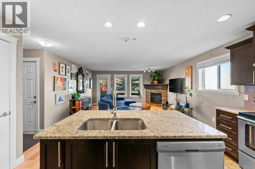 Welcome to inner-city living in Killarneyâsteps to 17th Aveâs parks, cafés, restaurants, and a 5-minute walk to the Shaganappi C-Train. Built in 2009, this well-run, 6-unit boutique building has been meticulously maintained. Inside, youâll find over 930 sq. ft. of bright, open space that lives more like a townhouse than a condo, thanks to both front and rear entrances (the back door leads directly to your assigned parking stall).The main living area features new Connel hickory hardwood, a gas fireplace, and an airy dining/entertaining zone. Off the living room is your west-facing, covered balconyâperfect for sunset viewing and BBQs with a natural gas line already in place. The kitchen is thoughtfully appointed with a pantry, granite countertops, stainless steel appliances, and an island with breakfast bar.Sleep spaces are smartly separated: a large primary bedroom with two closets, plus a well-sized second bedroom for guests, office, or gym. A 4-piece bathroom with granite and an in-suite laundry area complete the plan.Additional perks: a new hot water tank (2020) and Airbnb permitted with board approvalâthis unit is already outfitted and short-term-rental ready. An excellent opportunity for first-time buyers and investors seeking a turnkey home in one of Calgaryâs most convenient inner-city locations. (id:27476)