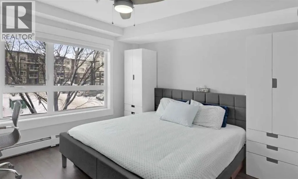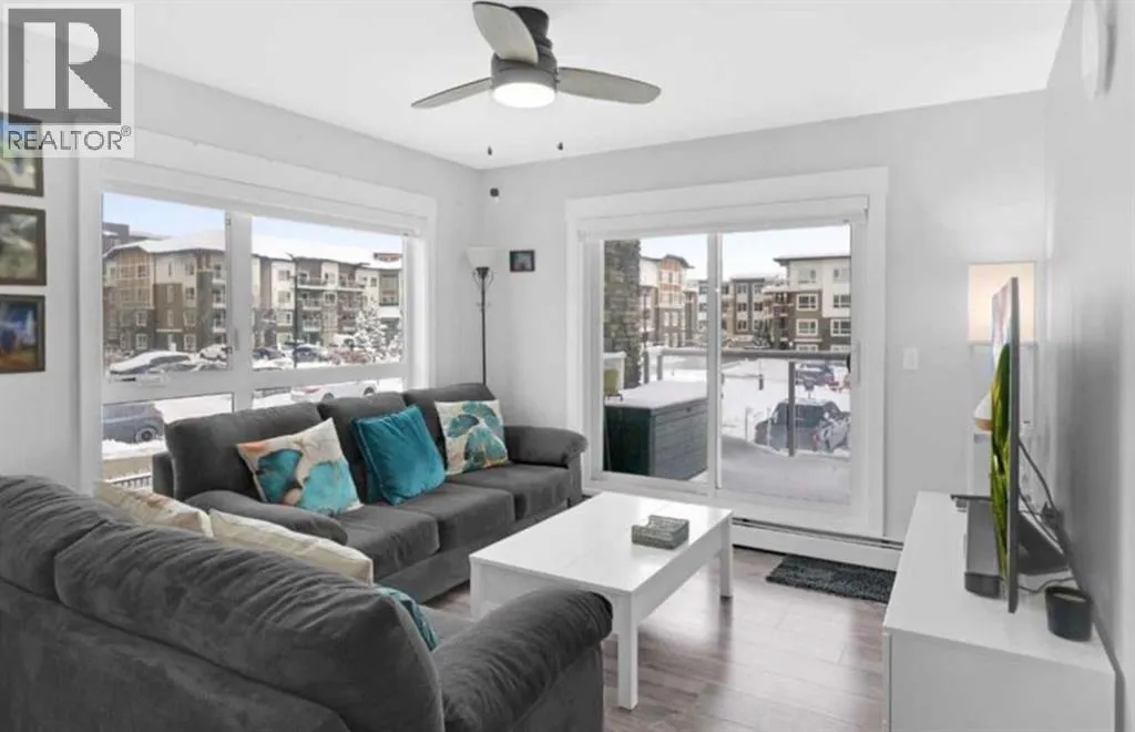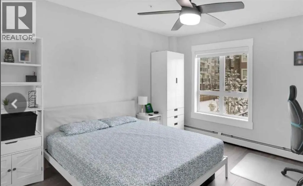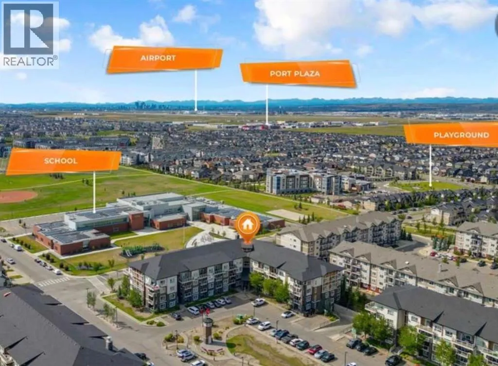 Welcome to this beautifully maintained and UPGRADED CORNER UNIT CONDO, located on the second floor offers over 943.5 sq ft of comfortable living space, featuring 2 spacious bedrooms, 2 full bathrooms, and the convenience of titled heated underground parking and secure caged storage locker. As you enter, youâll be greeted by an open-concept design that includes a well-appointed kitchen, a dining area, and a versatile flex space perfect for an office. The kitchen is a chefâs dream, featuring a large counter with bar seating, granite countertops, stainless steel appliances. The owner has invested over $15k in upgrades including CUSTOM CABINETRY , HALL TREE ENTRYWAY BENCH ,COAT RACK with SHOE STORAGE, SMART LOCK for main DOOR , WATER PURIFIER ,SAMSUNG DISHWASHER, NEW LIGHT FIXTURES( Kitchen and dining) and BOTH WASHROOMS FIXTURES, New VINYL PLANK FLOORING (no carpet) has been installed throughout the unit, PATIO TILES, REMOTE CONTROLLED ZEBRA BLINDS for all windows and CEILINGS FANS in both bedrooms and Living room add extra convenience and comfort and beautiful Balcony to spend time with friends ,enjoying BBQ.Located in the vibrant Skyview Ranch community, this condo offers easy access to local amenities, parks, schools, shopping, and major roadways. Whether you're a first-time homebuyer, a growing family, or someone looking for a modern, low-maintenance property, (id:27476)
