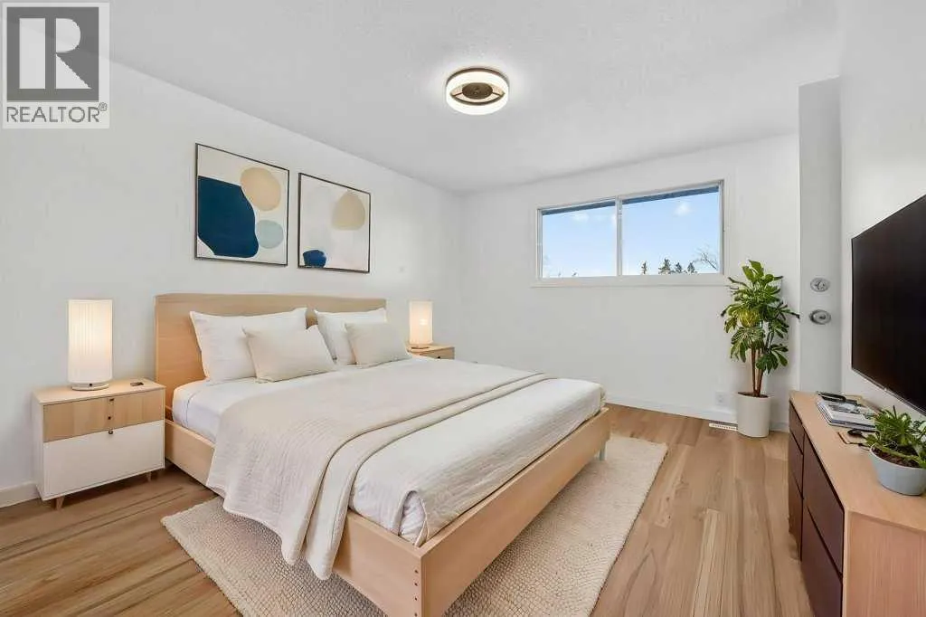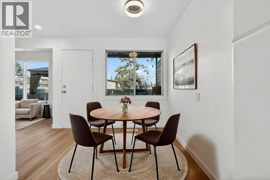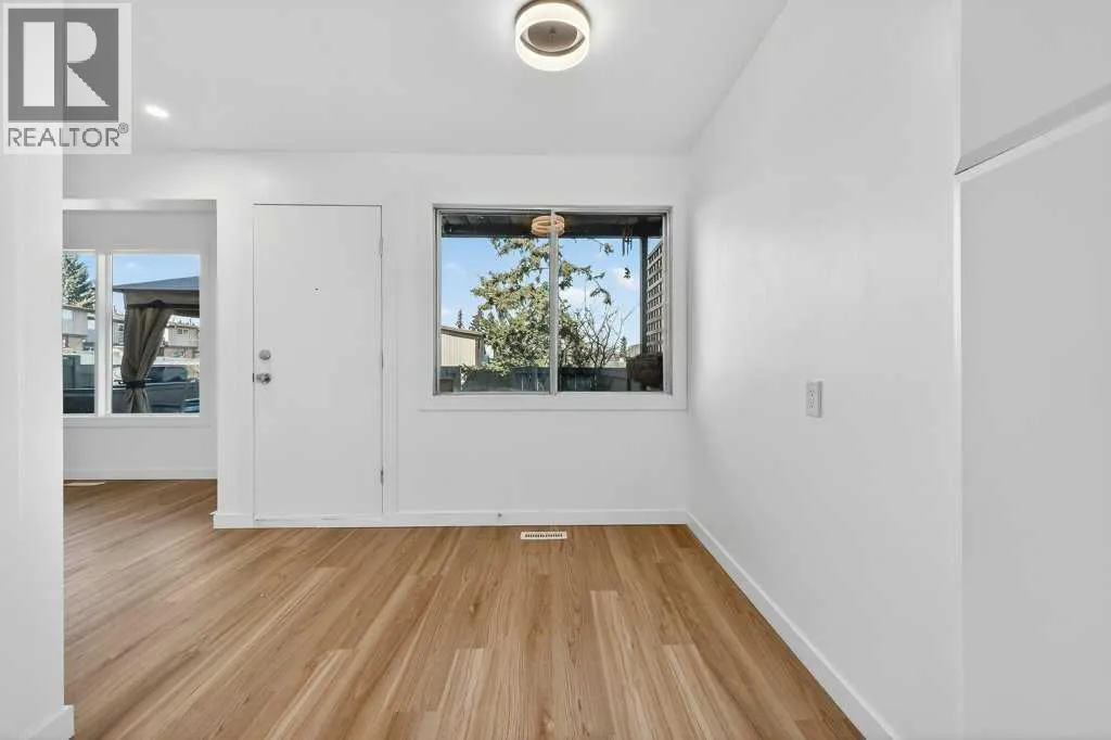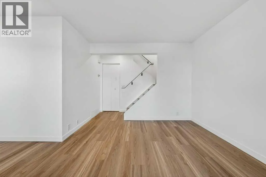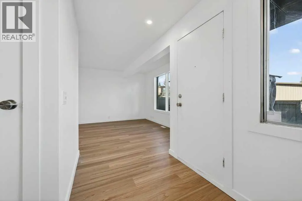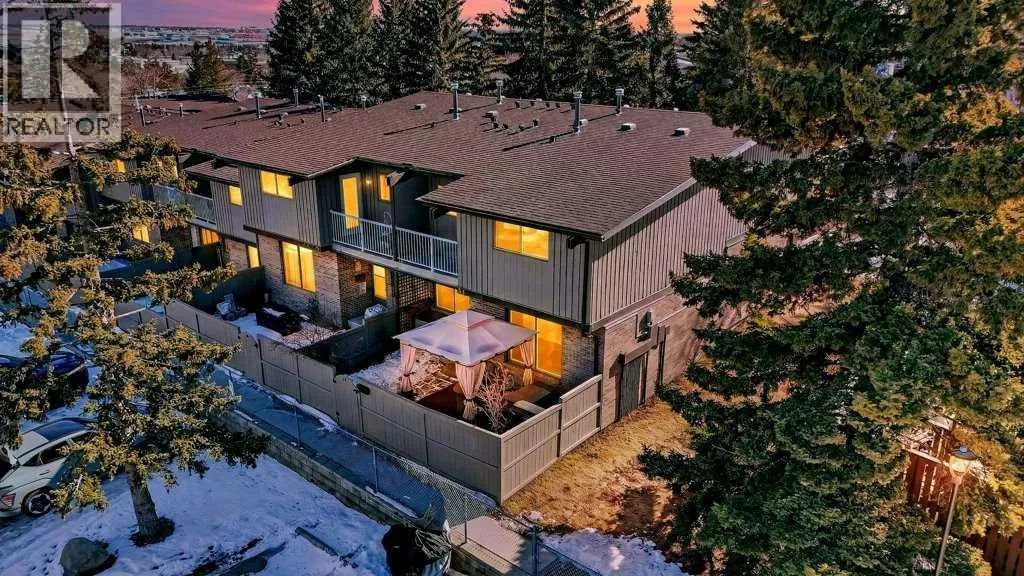 This is the one youâve been waiting for! Welcome to this completely remodelled corner-unit townhouse in the heart of Huntington Hills. As you approach the home along the beautifully landscaped stone pathway, youâll immediately notice the impressive outdoor space featuring a large deck with a fire table, gazebo, and bar areaâan incredible setting for relaxing or entertaining guests. Step inside and youâll be greeted by sleek new laminate flooring that flows seamlessly throughout the entire home. A bright and cozy dining nook leads into the modern kitchen, which showcases granite countertops, crisp white cabinetry and backsplash, pull-out shelving, stainless steel appliances, a brand new refrigerator, and both pot lighting and under-mount lighting for a stylish and functional cooking area. As you move through the home, youâll notice that all light fixtures have been updated with contemporary designs. The spacious living room offers plenty of room and flexibility to arrange the space to suit your lifestyle. This level also includes a convenient laundry area and a generous storage space for all your extras. Heading upstairs, youâll be impressed by the one-of-a-kind custom metal railing along the staircase. The primary bedroom is massive and features a door leading to your own private outdoor balcony. The second bedroom is also generously sized and offers open views. The updated 4-piece bathroom includes a new vanity, mirror, and toilet. The entire townhouse has been freshly painted and upgraded with new baseboards, doors, and trim, giving the home a clean and modern feel throughout. Your parking stall is conveniently located and sits beside a grassy area, with plenty of visitor parking available for guests. Ideally situated just steps from schools, shopping, transit routes, and the scenic pathways of Nose Hill Park, this pet-friendly complex welcomes both cats and dogs with board approvalâperfect for animal lovers seeking a comfortable community. A beautifully updated h ome in a fantastic locationâthis is one you wonât want to miss! Check out the link to the great virtual tour! (id:27476)