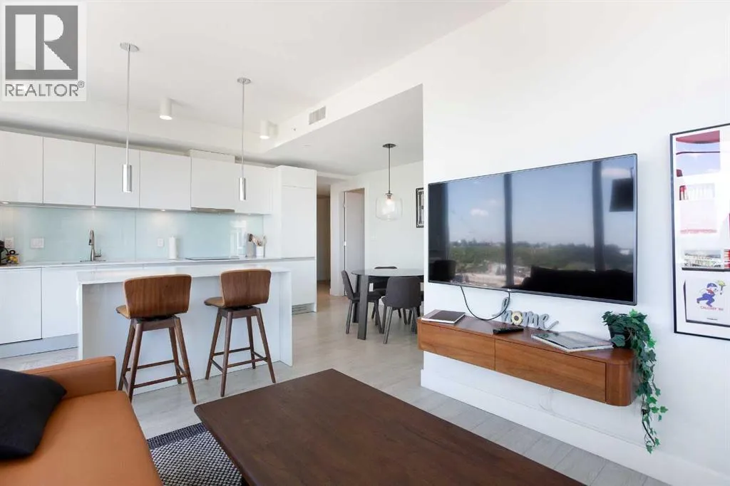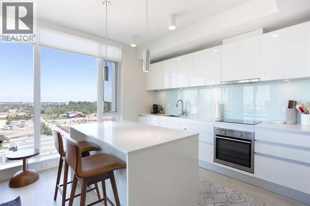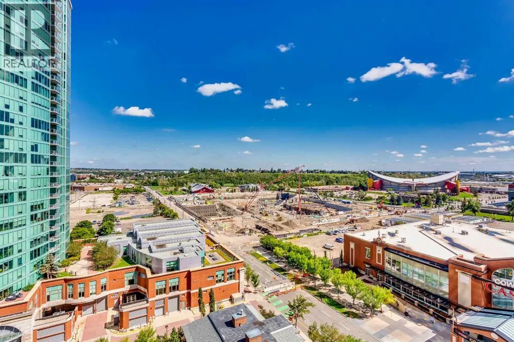 Urban luxury meets modern design in this stunning 2-bedroom, 2-bathroom suite in the iconic Guardian South Tower â Calgaryâs tallest residential building.Located in the heart of the Beltline, this impeccably designed unit features floor-to-ceiling windows that frame sweeping views of the city skyline, Calgary Tower, and beyond. The open-concept layout is enhanced by custom feature walls, sleek finishes, and a bright, contemporary aesthetic.The chef-inspired kitchen boasts high-end built-in appliances, quartz countertops, and streamlined cabinetry â perfect for both daily living and elevated entertaining. Both bedrooms are generously sized and well-separated for privacy, with the primary suite offering a walk-through closet and a spa-like ensuite.Unique to this unit are two private balconies, providing extended outdoor living space to enjoy both sunrise and sunset cityscapes.Additional highlights include in-suite laundry, central A/C, and titled underground parking.Residents of The Guardian enjoy access to a fully equipped fitness centre, social lounge, workshop, and rooftop terrace â all within walking distance to Stampede Park, the Saddledome, 17th Ave, and the C-Train.This is downtown living at its finest â perfect for professionals, investors, or anyone seeking an upscale urban lifestyle. (id:27476)