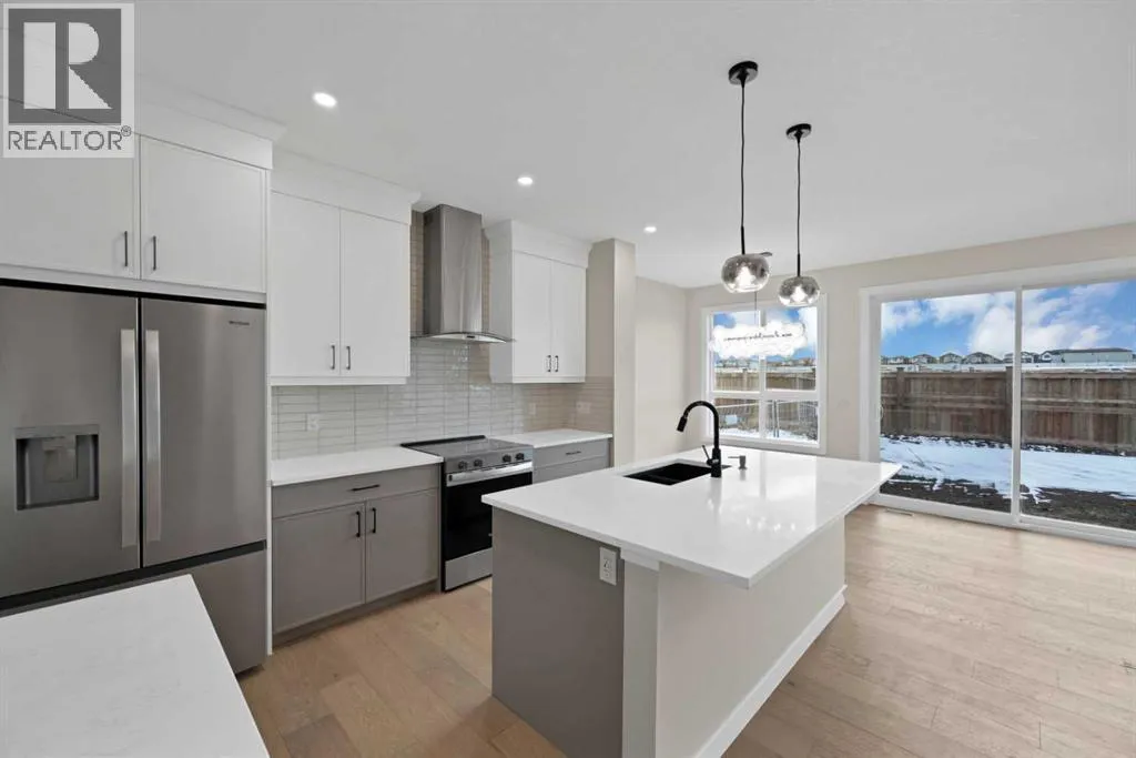 Some of the key Features in this BRAND NEW HOME | LEGAL 2-BEDROOM BASEMENT SUITE | SPICE KITCHEN | MAIN FLOOR BEDROOM & FULL BATH | TWO PRIMARY SUITES | NO NEIGHBOURS BEHIND | 2 LIVING AREAS | RAILING ON THE STAIRS | DESIGNER LIGHTING. Located in the growing community of Homestead in NE Calgary, this beautifully built home offers an impressive amount of space and a layout designed for modern family living and multi-generational comfort. The main floor features a bright and open design with a welcoming front living room, a spacious kitchen with abundant cabinetry and prep space, plus a separate spice kitchen with a GAS RANGE for added convenience. A cozy family room with an Electric Fireplace with a Stone Wall next to the dining area, creating the perfect space for everyday living and entertainment. This level also includes a bedroom and a full 4-piece bathroom, making it ideal for guests, extended family, or a home office, along with a spacious foyer and access to the attached double garage. Upstairs offers four well-sized bedrooms, including a large primary retreat with a 5-piece ensuite and walk-in closet, while the second bedroom also enjoys its own private 4-piece ensuite and walk-in closet. Two additional bedrooms share another full bathroom, and the central bonus room provides flexible space for a media room, kidsâ play area, or study lounge. A convenient laundry room completes the upper level. The fully legal basement suite features a separate entrance, 9-foot ceilings, two bedrooms, a full bathroom, a modern kitchen, a comfortable living area, and its own laundry setupâperfect for rental income or extended family accommodation. With no neighbours behind and in closer proximity to parks, pathways, and future amenities, this home presents an excellent opportunity in one of Calgaryâs newest communities. Some photos are virtually staged. Book your showing today. (id:27476)