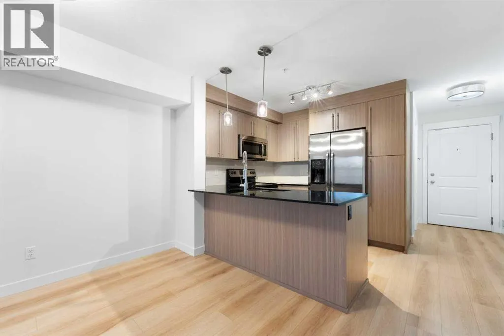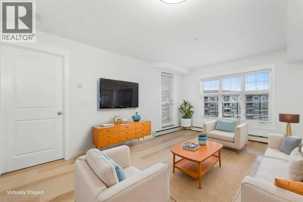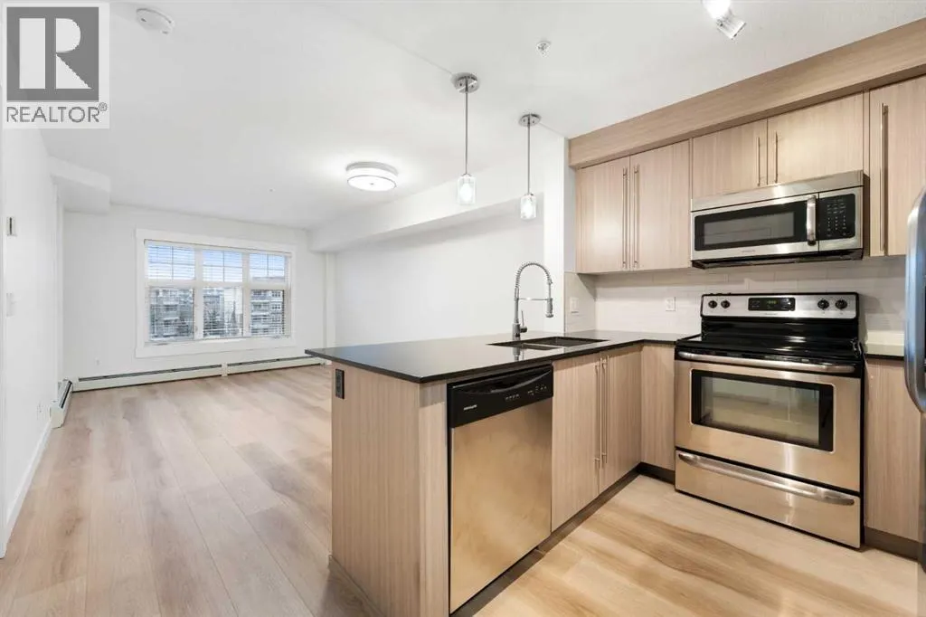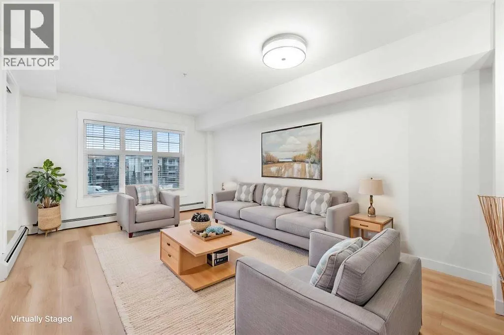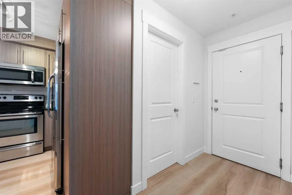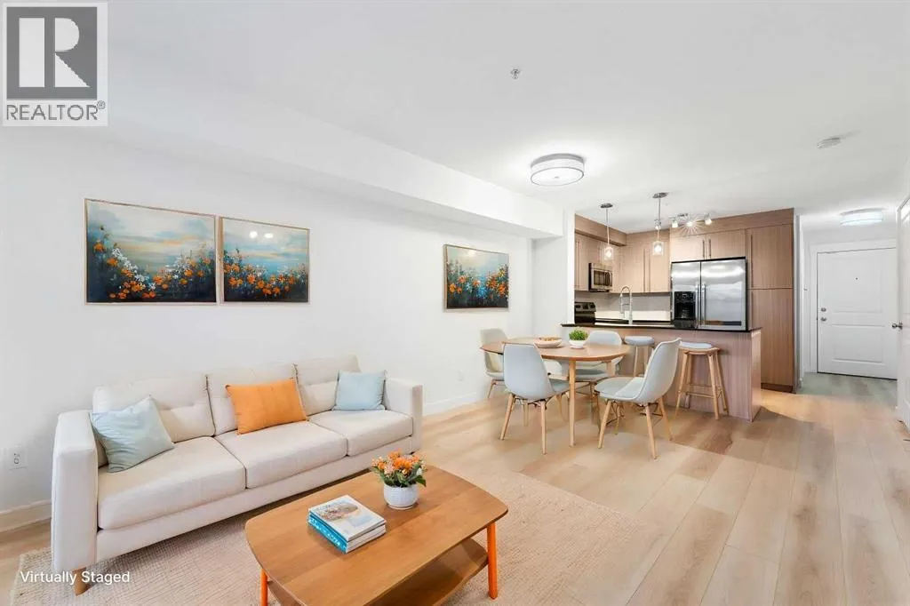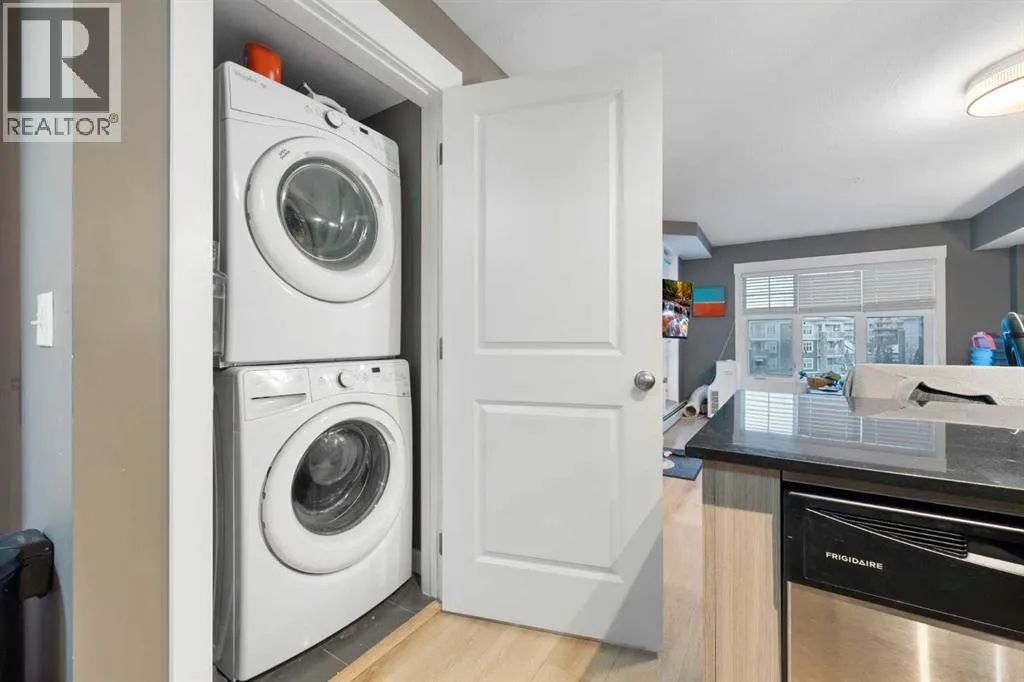 Discover easy, modern living in the heart of Mahoganyâone of Calgaryâs most desirable lake communities where lifestyle, recreation, and everyday convenience blend seamlessly. Situated in the thoughtfully designed 51 Oak complex, this freshly painted third-floor condo offers a stylish and low-maintenance home in a peaceful, well-kept setting. Built around a beautifully landscaped central courtyard, the development features three carefully planned buildings that create a quiet and welcoming environment from the moment you arrive. Inside, this bright and spacious 2-bedroom home offers an efficient and comfortable layout designed for everyday living. Fresh flooring installed in 2025 brings a crisp, updated feel throughout the space. The open kitchen is both functional and attractive, featuring gleaming stainless steel appliancesâincluding a refrigerator with water and iceâalong with granite countertops, a deep double sink with a bistro-style faucet, tall cabinetry, and a classic subway tile backsplash. A convenient breakfast bar seamlessly connects the kitchen to the main living area, creating a natural hub for casual dining, relaxing, or hosting guests. Large windows invite in an abundance of natural light while overlooking the peaceful courtyard below, adding to the bright and airy atmosphere of the home. The bathroom offers a contemporary vessel sink and a deep soaker tubâperfect for relaxing at the end of a long day. Everyday convenience continues with the inclusion of an in-suite stackable front-load washer and dryer. Step outside onto the generously sized balcony, an ideal spot to enjoy your morning coffee, unwind with an evening drink, or simply take in some fresh air throughout the day. Parking and storage are simple and secure thanks to the titled underground stall and attached storage lockerâproviding valuable space for seasonal items, tools, and outdoor gear. Living in Mahogany means enjoying access to an exceptional range of community amenities. Residents ca n take advantage of the private lake for swimming, skating, and fishing, along with beautiful beaches, tennis courts, scenic ponds, and an extensive network of walking paths. The community also hosts vibrant events throughout the year, creating a true neighborhood atmosphere. Everyday essentialsâincluding grocery stores, shops, restaurants, and servicesâare just minutes away. Whether youâre a first-time buyer, downsizer, or investor, this well-kept and move-in-ready condo offers an outstanding opportunity to enjoy the best of Mahogany living in a comfortable and well-connected home. (id:27476)