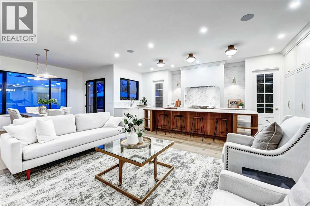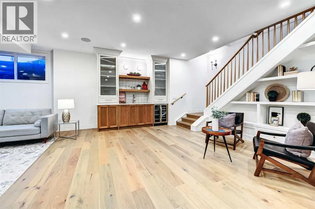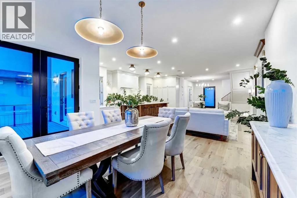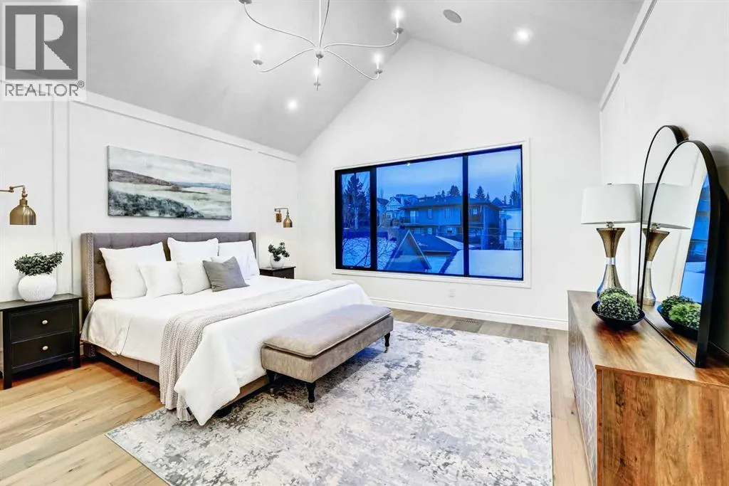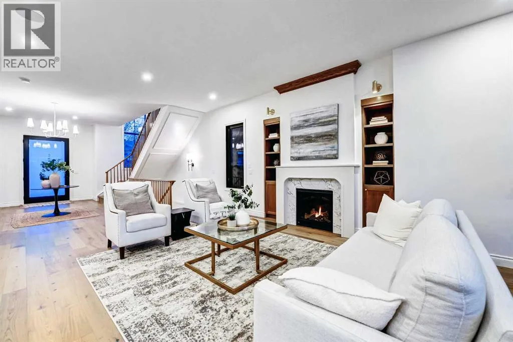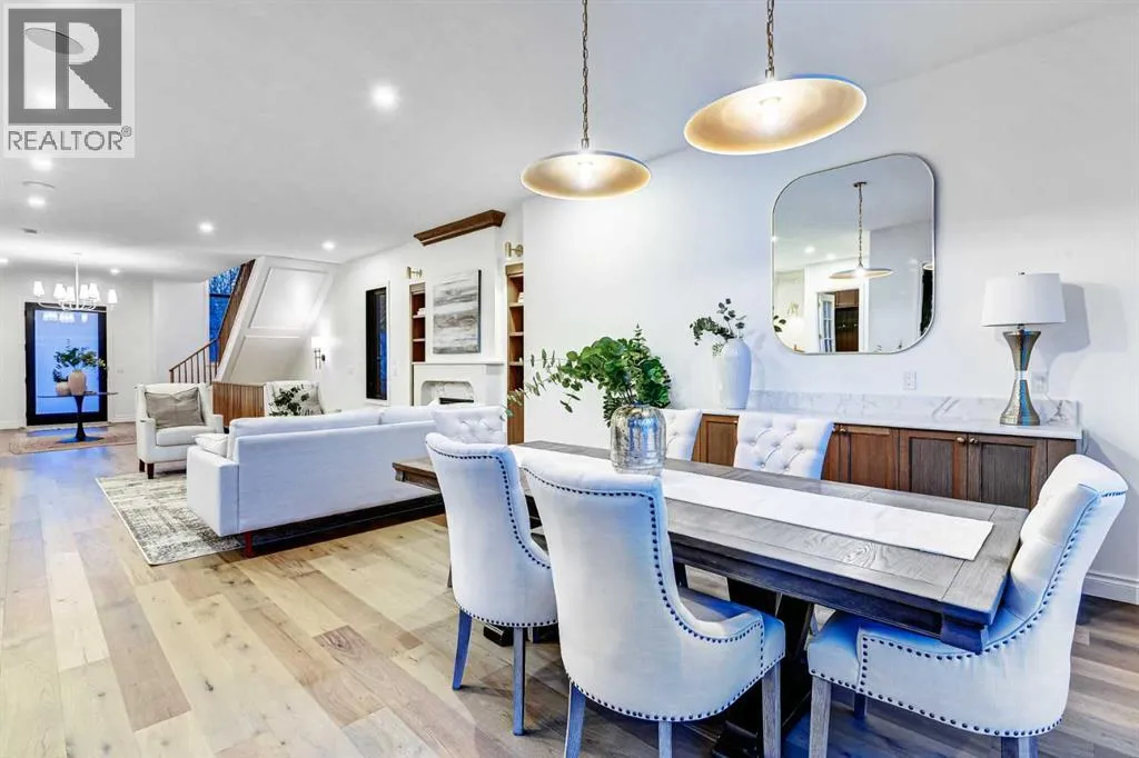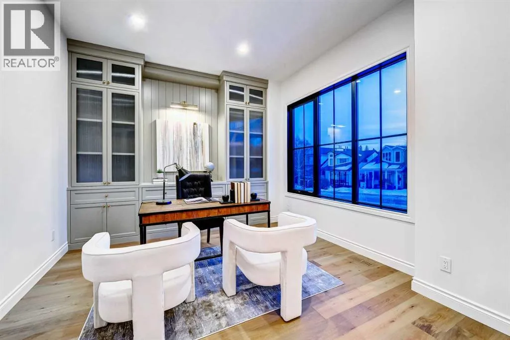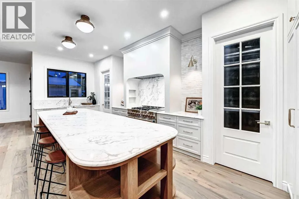 Set on a quiet street in the heart of Marda Loop, The Bardot is an exceptional custom residence that blends refined French-Country character with contemporary luxury. Thoughtfully designed and built by Cedar Rock Homes with interiors curated by Aly Velji Designs, this home offers four bedrooms, 4.5 bathrooms, and a rare triple-car garage. The striking exterior showcases a sophisticated mix of stone, stucco, and Hardie panel, accented by an aluminum cedar soffit entry, statement front door, and custom aluminum Lux windows with black interior cladding. The fully landscaped and fenced backyard is designed for low-maintenance enjoyment and features a generous composite patio with aluminum and glass railing, creating a private outdoor retreat. Inside, wide plank white oak engineered hardwood flooring flows throughout all levels, complemented by solid core doors and custom site-built cabinetry with wood dovetail drawers. Soaring 10-foot ceilings on the main floor and 9-foot ceilings on both the upper and lower levels enhance the homeâs bright and open feel. The main living area is anchored by a cozy gas fireplace and transitions seamlessly into the chef-inspired kitchen featuring a premium JennAir appliance package, including a 48-inch gas range, 48-inch panelled refrigerator, panelled dishwasher, and a microwave drawer integrated into the island with additional storage on both sides. A curved quartz slab island, custom cabinetry, and a bespoke hood fan create a stunning focal point, while the adjacent butlerâs pantry adds extended storage and elevated lighting. The dining space is highlighted by a custom oak sideboard, and a spacious mudroom with tailored millwork ensures everyday functionality. A private front office is thoughtfully designed with French doors, floor plugs, and custom glass-front cabinetry. Upstairs, three generously sized bedrooms each feature walk-in closets and private ensuites with heated tile flooring. The primary retreat is highlighted by vaulted c eilings and a spa-inspired ensuite complete with an oversized steam shower with dual rain heads, a freestanding tub, solid slab stone backsplash, and custom hanging mirrors. A beautifully finished upper-level laundry room with sink, hanging rod, and custom cabinetry completes the floor. The fully finished basement expands the living space with a gym, TV and games area, wet bar with beverage fridge, full bathroom, and ample storage. Mechanically, the home is equipped with dual-zone high-efficiency furnaces with humidifiers, along with rough-ins for in-floor basement heating, air conditioning, central vacuum, speakers, security system, and exterior cameras. Every detail of The Bardot reflects intentional design, superior craftsmanship, and timeless appeal, all just steps from Marda Loopâs vibrant shops, restaurants, parks, schools, and only minutes from downtown Calgary. (id:27476)