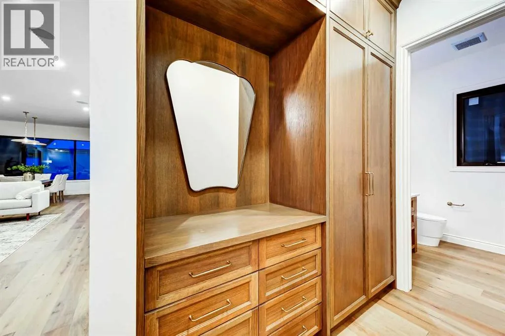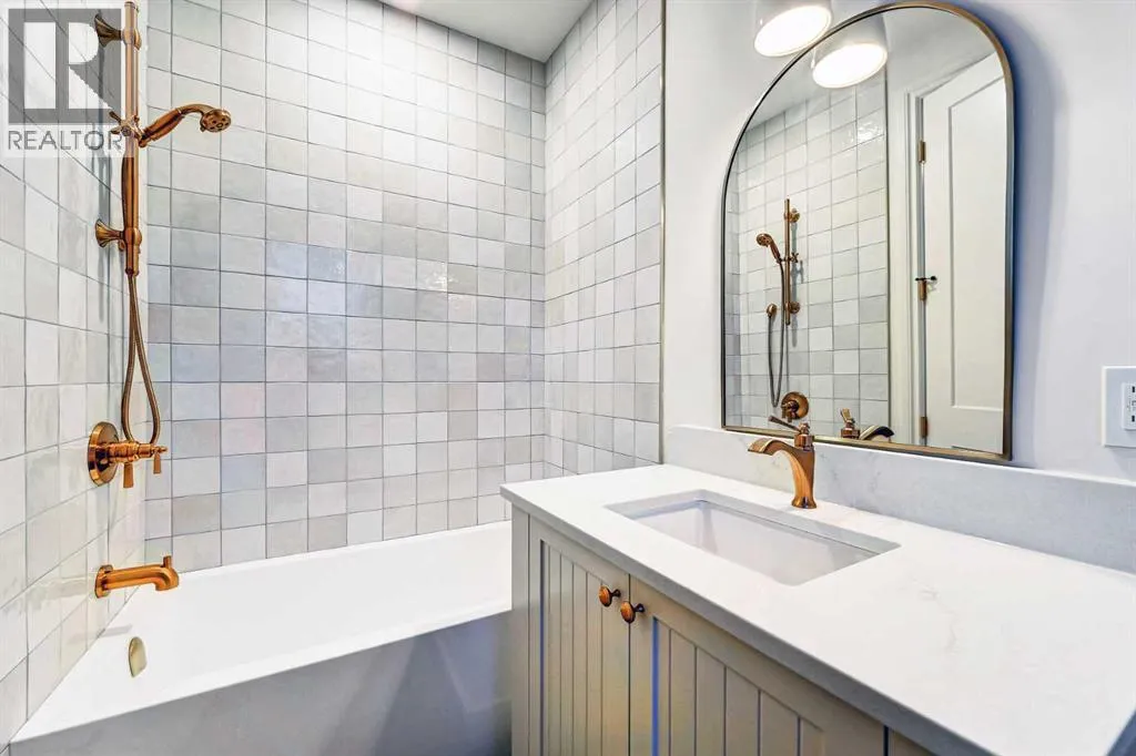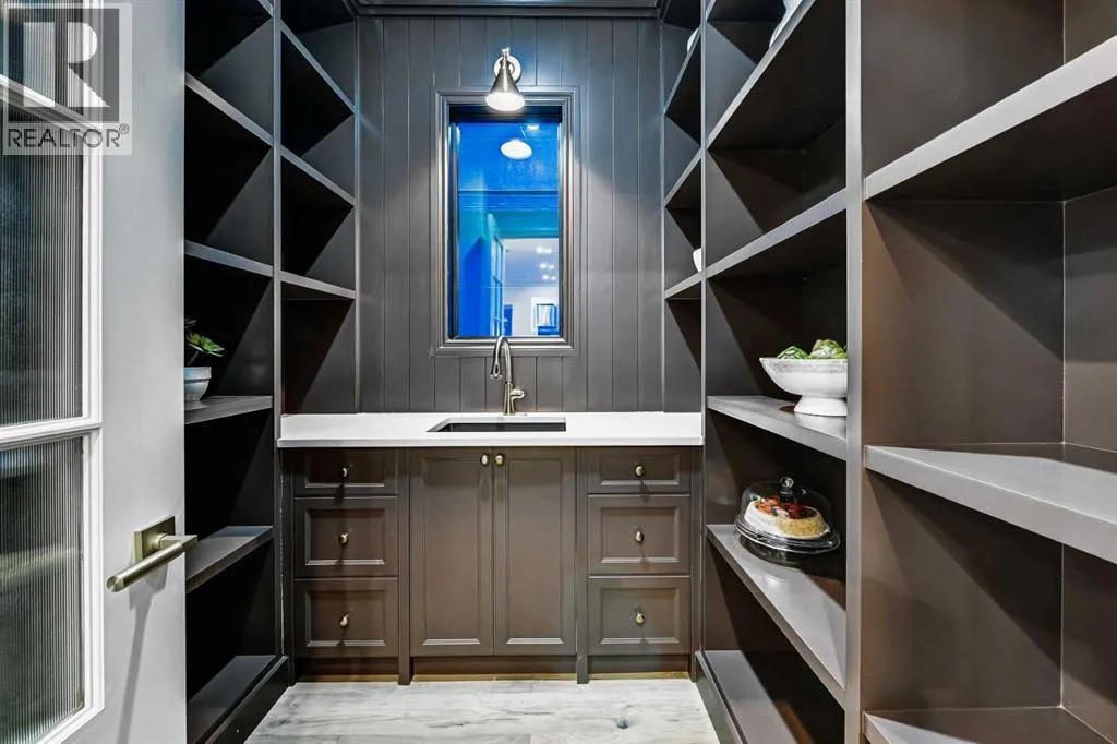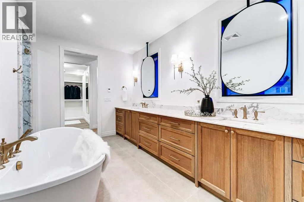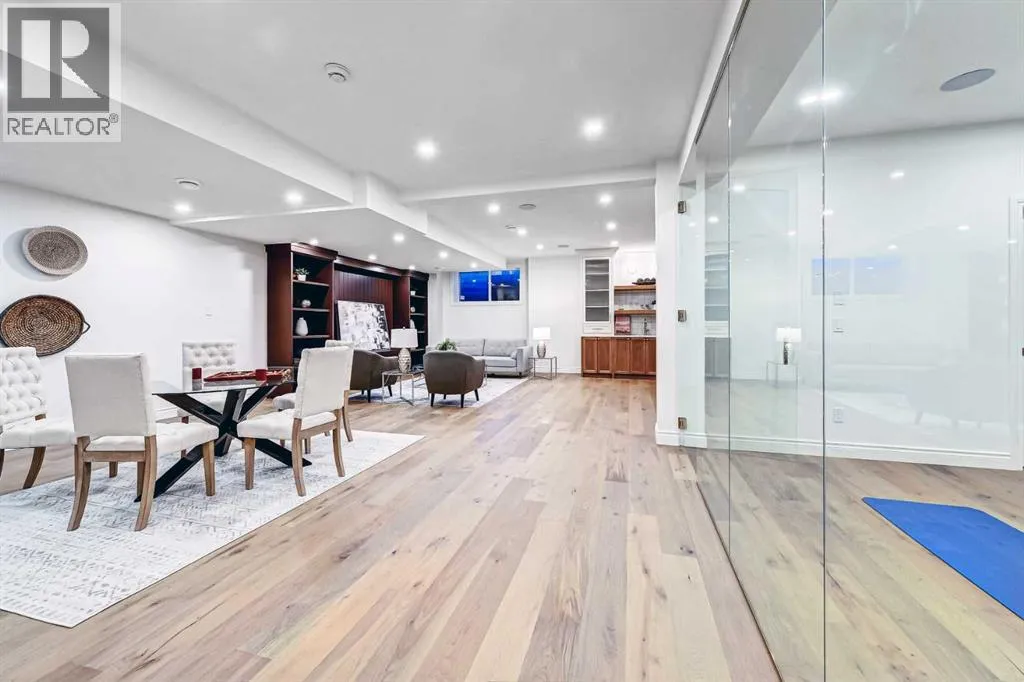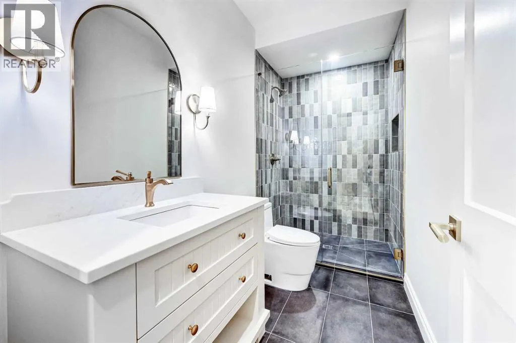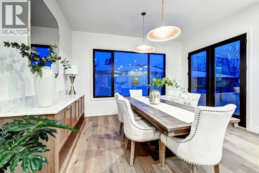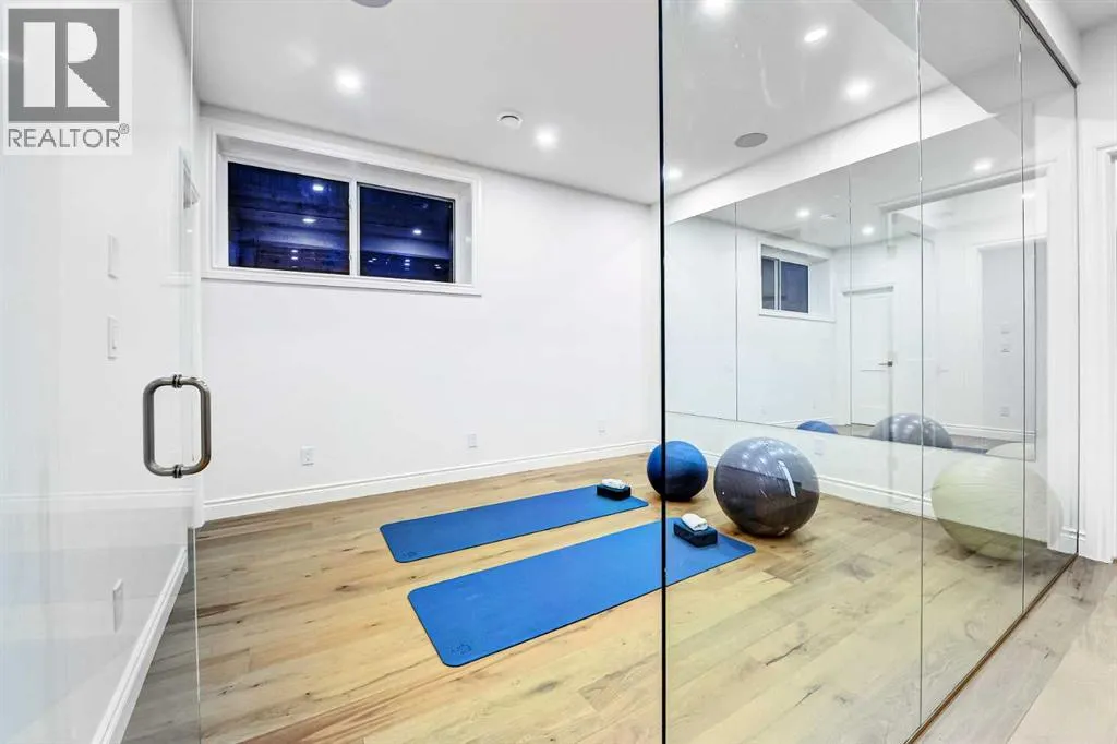 Set on a quiet street in the heart of Marda Loop, The Bardot is an exceptional custom residence that blends refined French-Country character with contemporary luxury. Thoughtfully designed and built by Cedar Rock Homes with interiors curated by Aly Velji Designs, this home offers four bedrooms, 4.5 bathrooms, and a rare triple-car garage. The striking exterior showcases a sophisticated mix of stone, stucco, and Hardie panel, accented by an aluminum cedar soffit entry, statement front door, and custom aluminum Lux windows with black interior cladding. The fully landscaped and fenced backyard is designed for low-maintenance enjoyment and features a generous composite patio with aluminum and glass railing, creating a private outdoor retreat. Inside, wide plank white oak engineered hardwood flooring flows throughout all levels, complemented by solid core doors and custom site-built cabinetry with wood dovetail drawers. Soaring 10-foot ceilings on the main floor and 9-foot ceilings on both the upper and lower levels enhance the homeâs bright and open feel. The main living area is anchored by a cozy gas fireplace and transitions seamlessly into the chef-inspired kitchen featuring a premium JennAir appliance package, including a 48-inch gas range, 48-inch panelled refrigerator, panelled dishwasher, and a microwave drawer integrated into the island with additional storage on both sides. A curved quartz slab island, custom cabinetry, and a bespoke hood fan create a stunning focal point, while the adjacent butlerâs pantry adds extended storage and elevated lighting. The dining space is highlighted by a custom oak sideboard, and a spacious mudroom with tailored millwork ensures everyday functionality. A private front office is thoughtfully designed with French doors, floor plugs, and custom glass-front cabinetry. Upstairs, three generously sized bedrooms each feature walk-in closets and private ensuites with heated tile flooring. The primary retreat is highlighted by vaulted c eilings and a spa-inspired ensuite complete with an oversized steam shower with dual rain heads, a freestanding tub, solid slab stone backsplash, and custom hanging mirrors. A beautifully finished upper-level laundry room with sink, hanging rod, and custom cabinetry completes the floor. The fully finished basement expands the living space with a gym, TV and games area, wet bar with beverage fridge, full bathroom, and ample storage. Mechanically, the home is equipped with dual-zone high-efficiency furnaces with humidifiers, along with rough-ins for in-floor basement heating, air conditioning, central vacuum, speakers, security system, and exterior cameras. Every detail of The Bardot reflects intentional design, superior craftsmanship, and timeless appeal, all just steps from Marda Loopâs vibrant shops, restaurants, parks, schools, and only minutes from downtown Calgary. (id:27476)