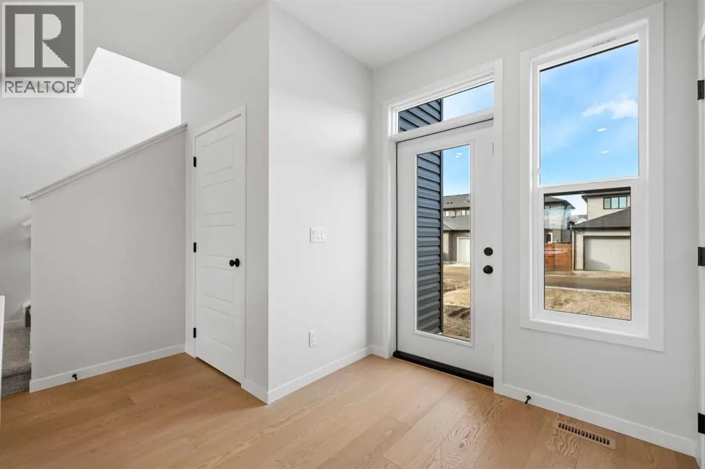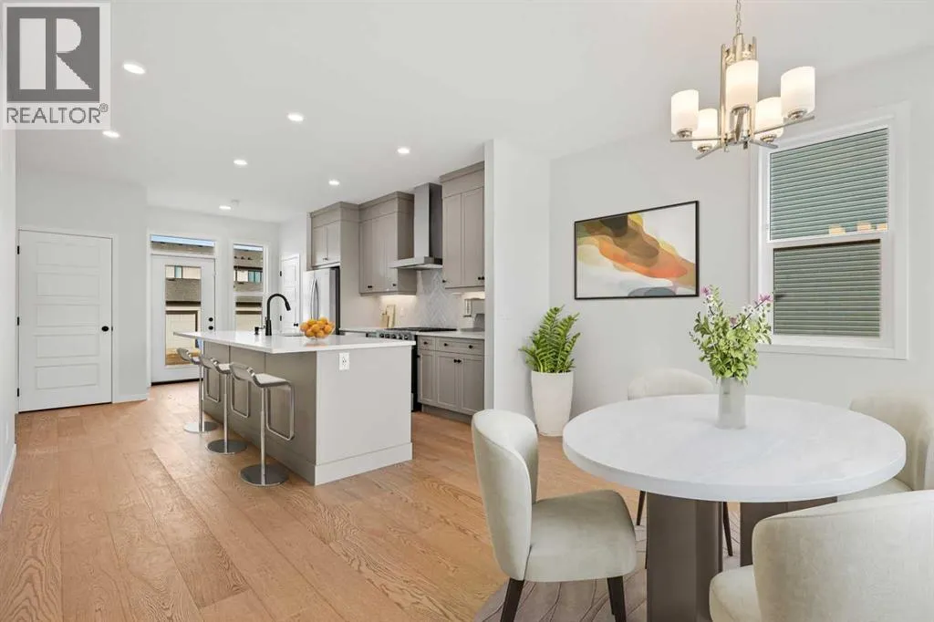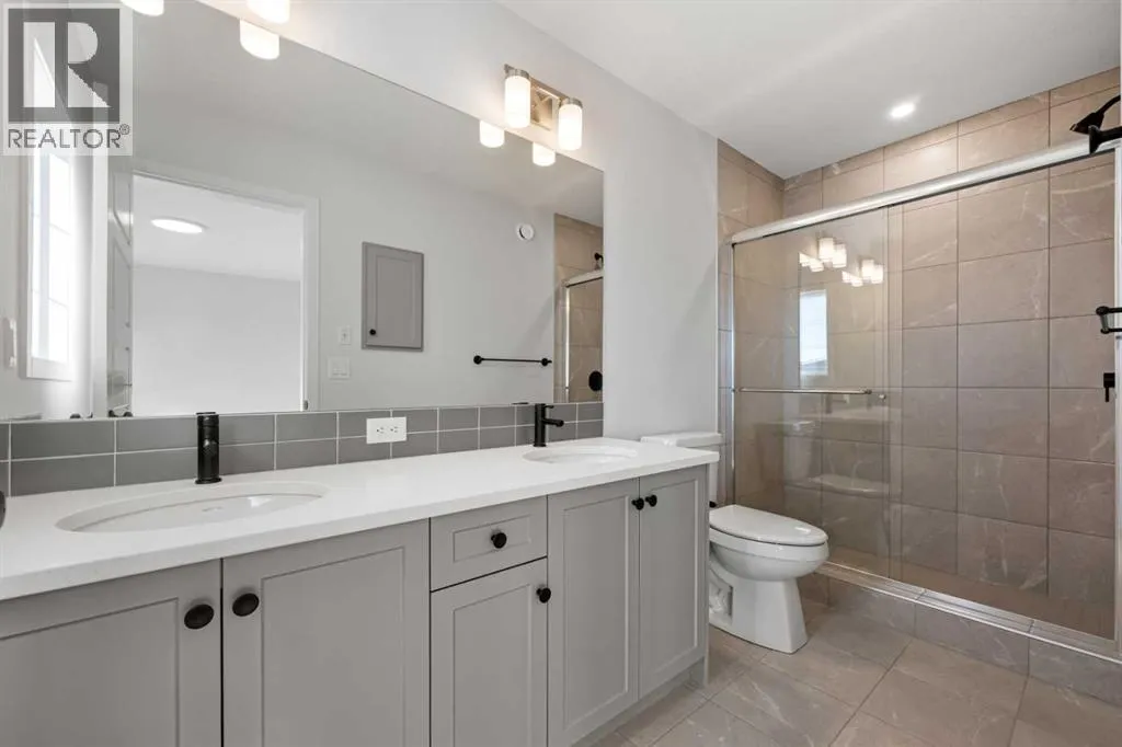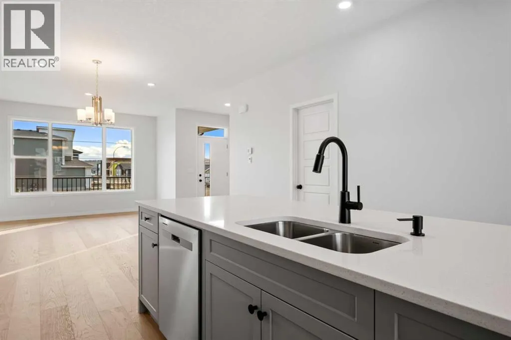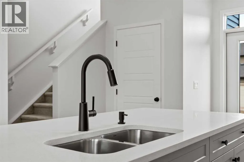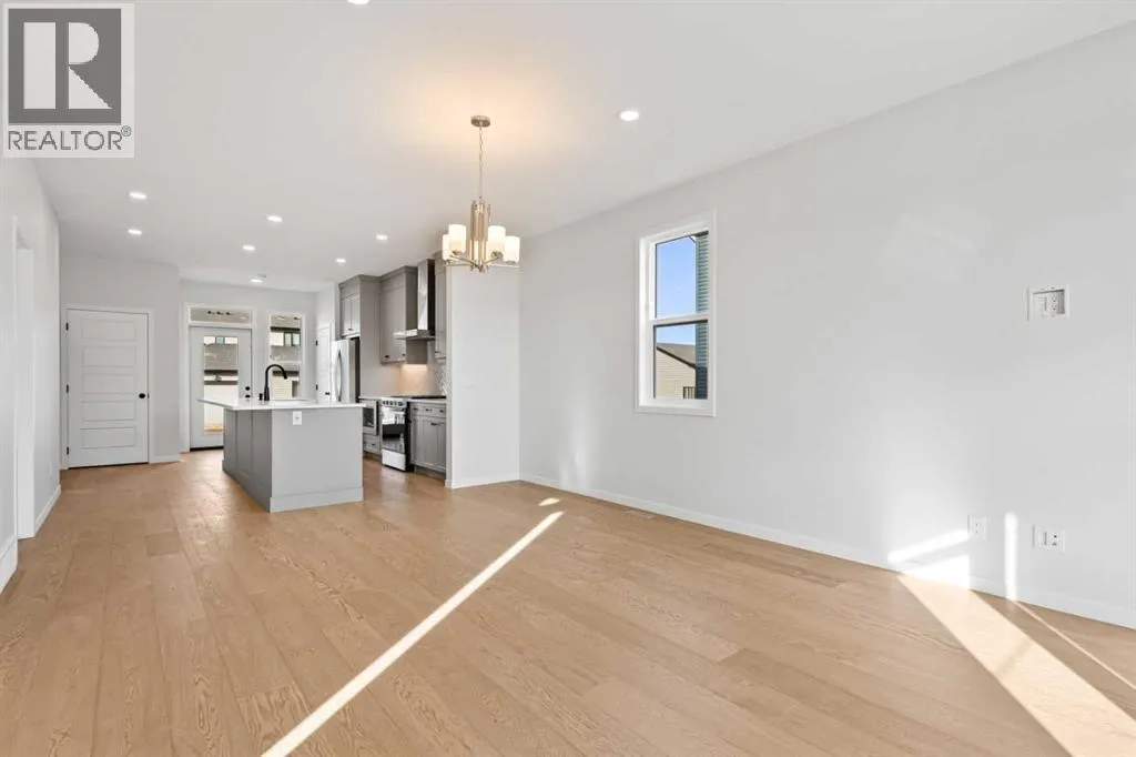 Located in the scenic and growing community of Wolf Willow, 83 Wolf Hollow Rise SE offers a thoughtfully designed two-storey home by Trico Homes that blends modern finishes, functional living spaces, and an exceptional location close to nature. With approximately 1,578 sq. ft. above grade, this brand-new home is ideal for families, first-time buyers, or anyone seeking contemporary comfort in a vibrant southeast Calgary neighbourhood.The main level features a bright open-concept layout enhanced by high ceilings and large windows that allow natural light to flow throughout the space. The kitchen is designed to be both stylish and practical, showcasing quartz countertops, a spacious kitchen island, breakfast bar seating, and a gas stoveâperfect for everyday cooking or entertaining guests. The seamless connection between the kitchen, dining area, and living room creates a welcoming environment for gatherings and daily living. A convenient two-piece bathroom completes the main floor.Upstairs, youâll find three bedrooms, including a spacious primary suite with a walk-in closet and private ensuite featuring a double vanity and relaxing soaking tub. Two additional bedrooms share a well-appointed four-piece bathroom, making the upper level ideal for family living. The laundry area is conveniently located in the upper hallway, simplifying everyday routines.The unfinished basement provides excellent potential for future development, allowing new owners to customize additional living space to suit their needsâwhether itâs a recreation room, home gym, or additional bedrooms.Outside, the home features a welcoming front porch and a rear parking pad with space for two vehicles, accessible from the back lane. A BBQ gas line is also included, making outdoor entertaining easy.Wolf Willow is known for its connection to nature and community lifestyle, offering nearby parks, playgrounds, walking and biking paths, and easy access to schools and shopping. Residents also enjoy clo se proximity to the Bow River pathway system, making outdoor recreation part of everyday life.With modern finishes, functional design, and a fantastic location, 83 Wolf Hollow Rise SE presents a wonderful opportunity to own a new home in one of Calgaryâs most exciting emerging communities. (id:27476)