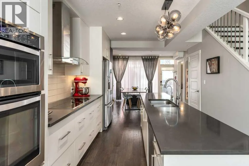 Experience quiet, upscale living in this beautifully upgraded townhome located in the heart of vibrant Marda Loop. Built with solid concrete construction, this home offers exceptional soundproofing and privacyâcreating a peaceful retreat in one of Calgaryâs most sought-after inner-city communities.Inside, modern design meets thoughtful upgrades. The main floor features engineered hardwood flooring, while the bedrooms and second-floor hallway were updated with engineered Canadian maple hardwood (Fall 2023). The office/den showcases European-made luxury vinyl plank flooring, and the stairs are finished with 100% wool carpet (Fall 2023) for added comfort. The stylish kitchen includes a Bosch dishwasher with built-in water softener (2024) and an updated Miele induction cooktop. Enjoy in-floor heating throughout the home as well as air conditioning for year-round comfort.Upstairs are two spacious bedrooms, each with its own ensuite, while the private rooftop patio provides a beautiful space to relax or entertain.Just steps from the shops, restaurants, and cafés of Marda Loop, this home offers the perfect blend of modern upgrades, quiet concrete construction, and an unbeatable inner-city location. (id:27476)