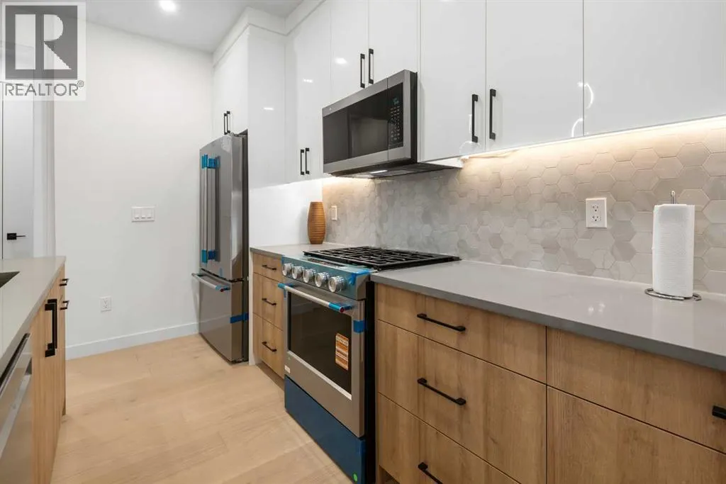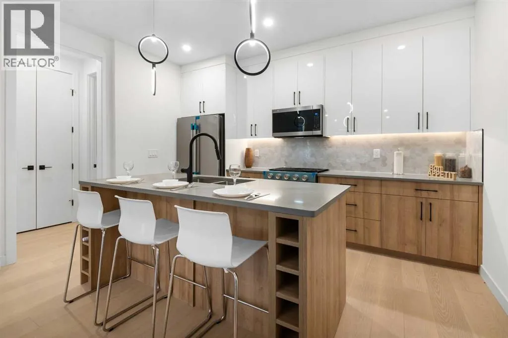 An excellent opportunity to expand your investment portfolio in the heart of Marda Loop. This BRAND NEW 8 unit complex is complete and ready for immediate possession. Situated on a large 50x125 ft. lot, on a tree lined street, just steps from river park and the heart of marda loop. Easy transit access to MRU and downtown. The upper 3 storey units offer over 1800 sqare feet on three levels, above grade and an addtional 575 square feet basement suites with separate entrances (Units can be connected to basement directly if desired) High quality modern finishes throuhout this spacious townhouse. Hardwood, quarts, stainless steel appliances, ceramic tiles. Each upper unit features three bedrooms and 3 and a half baths. An excellent main level with living, dining and large kitchen with Island. The second floor boats two large bedrooms both with large closets and ensuites. The top third floor showcases an amazing Primary suite complete with a huge walk in closet, large ensuite with walk in 2 person shower. Dual sinks, and a full east facing private balcony. The basement suites boast high ceilings, full moden kitchens, ensuite laundry and separate spacious bedrooms with large closets. Single detached garages for all units. (4) This build can be eligible for CMHC MLI Select financing. Rental rates in the area have remained stable with low pre dominant vacancy. Possible gross monthly income of $15k-$17k Furnished units can attain more and can be included in the purchase price as required. Full appliance packages for all 8 units included, and all units a separately metered. A great opportunity in a thriving community. (id:27476)