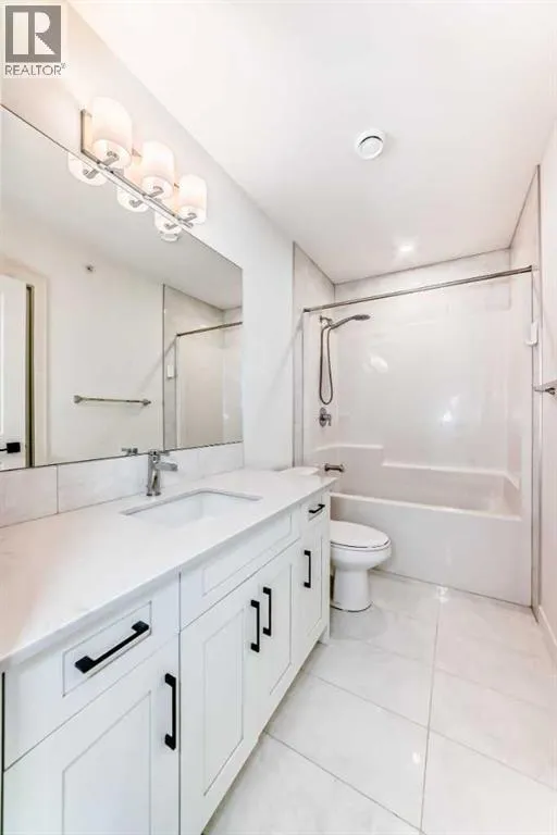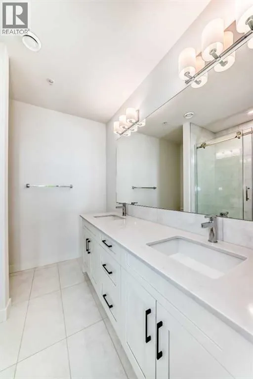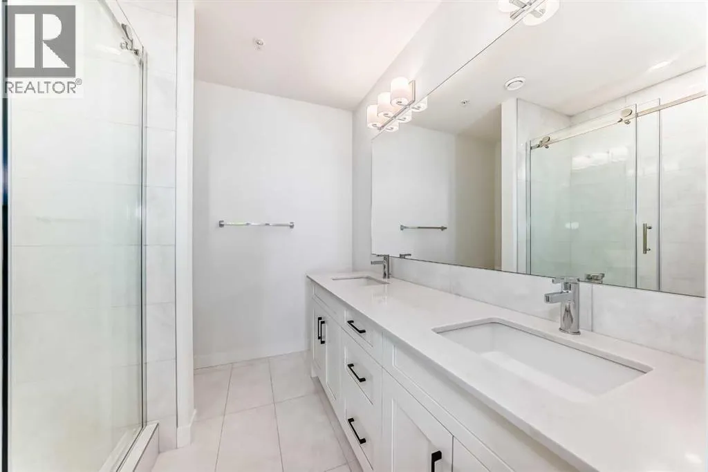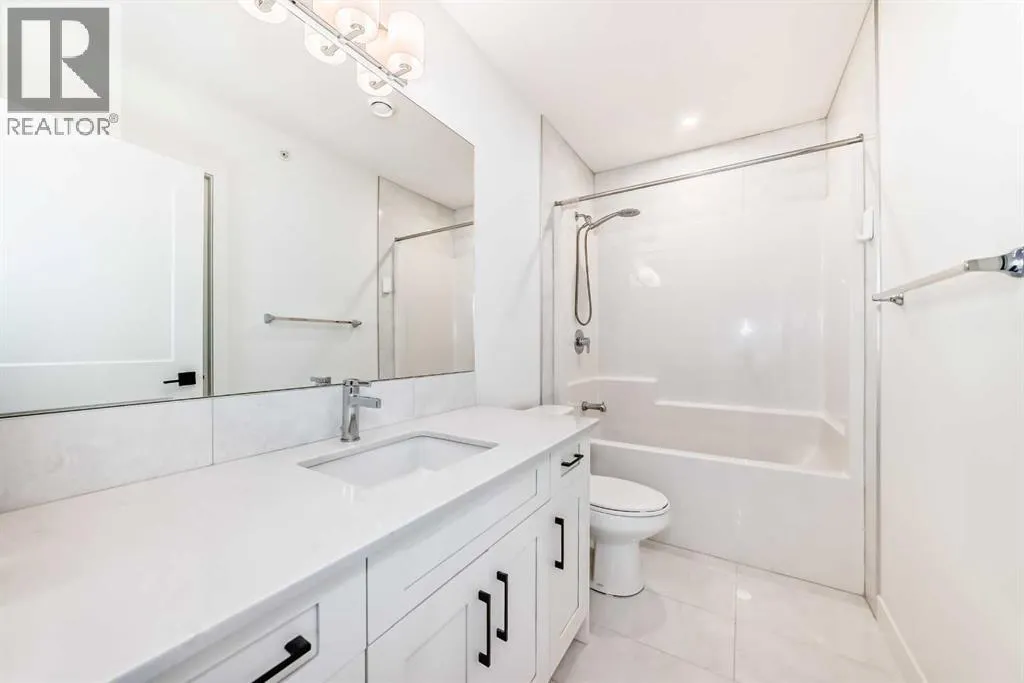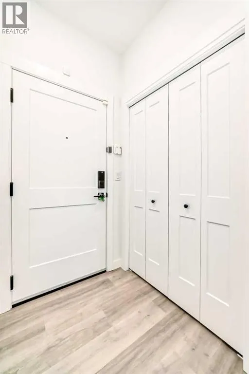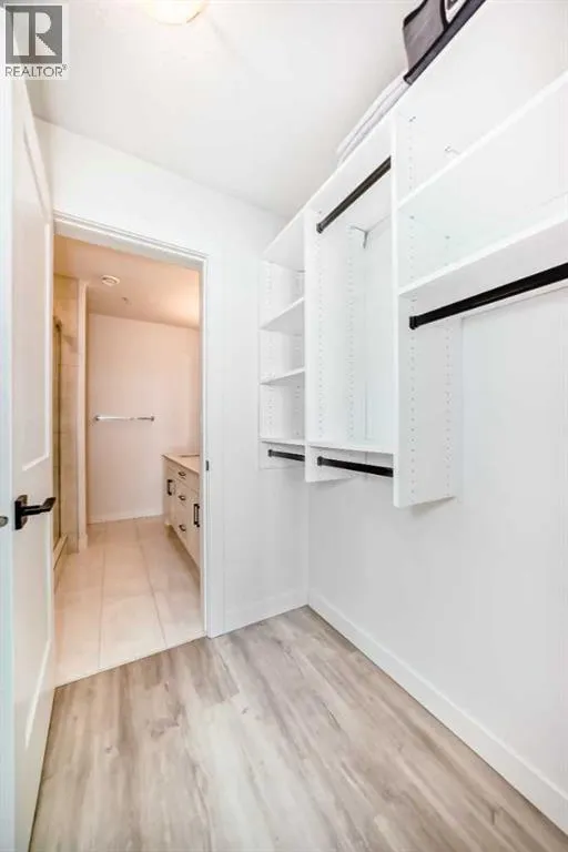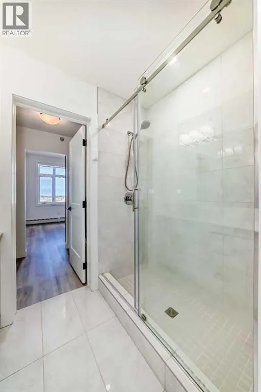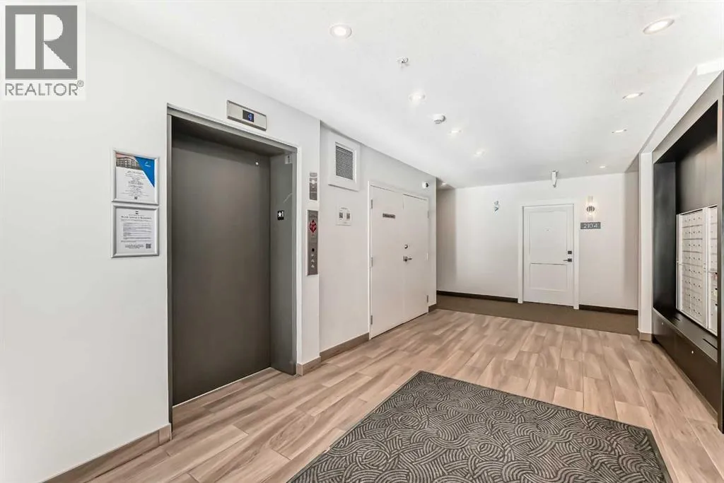Welcome to this beautiful upgraded apartment condo unit with 2 bedrooms, 2 full baths on the top floor corner unit in the vibrant community of Seton SE area. The open concept floor plan features 9-foot ceilings, insuite laundry room with upgraded laundry doors and full side stainless steel washer & dryer, luxury vinyl plank floorings all over for easy mainternance & style, large windows offering plenty natural lights throughout. Modern white finished kitchen with high end kitchen shaker cabinetry package and soft-close doors and drawers, good size pot drawers. Upgraded stainless steel appliances and chimney style range-hood, stunning Pendant lighting and huge extended central island with Quartz countertops is perfect for preparing meals or hosting family gatherings overlooking to a spacious living room/dining room combine offering a wall-mounted air conditioner unit to keep you comfortable during hot summer days, you also have patio door step out on to your private big balcony with a gas-line for BBQ and a glimpse of the surrounding community. The bedrooms are separate by a spacious bathroom for additional privacy. The primary bedroom is a spacious retreat with a good size walkthrough closet made by Calgary California Closets company offers abundant storage for all clothing & accessories and you also have a good size 4-pc stand shower ensuite with full height tiles, ceramic tile floorings & backsplash, Quartz countertop on dual sinks and a elegant barn door to separate the primary bedroom and walkthrough closet. This unit is measured at 971 sqft by the Builder floor plan. It also comes with a fresh air in-take system, one titled underground heated parking stall and one good size assigned storage cage, both of these are located close to the elevator and stairs. This condo complex is conveniently located within walking distance to transit, HOA, the Real Candian Superstore, Save on Foods, Cinemas, Tim Hortons, various restaurants and Pubs, the South Health Campus, the largest YMCA, Library, Schools, playground, dog park and future LRT Green line. Easy access to Deerfoot Trail, Stoney Trail and to the rest of the city. This home shows better than new and priced to sell. Quick possession negotiable. Don't miss out on this chance to make this property your own! (id:27476)