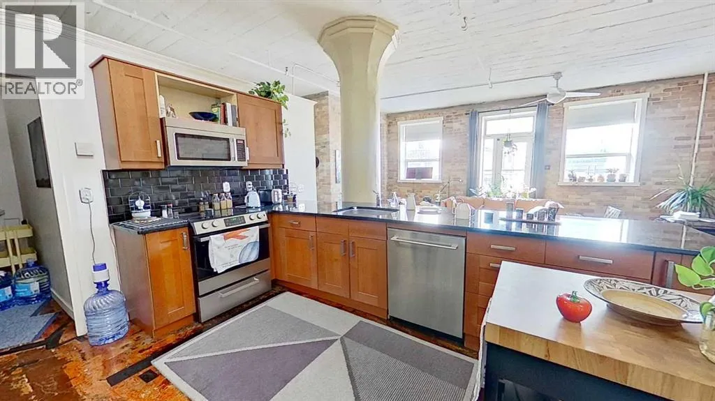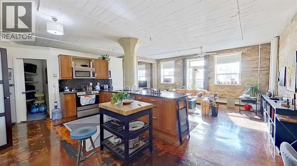 Loft-style condo offering an open 82.1 m² layout with one private bedroom. The unit features a bathroom area with sink and shower, with a separate enclosed space for the toilet and in-suite washer and dryer. Located in a building pursuing heritage designation, the property also includes access to a shared rooftop patio. Situated in Calgaryâs Beltline community just outside the downtown core, the location provides convenient access to restaurants, cafés, shops, and other urban amenities. (id:27476)