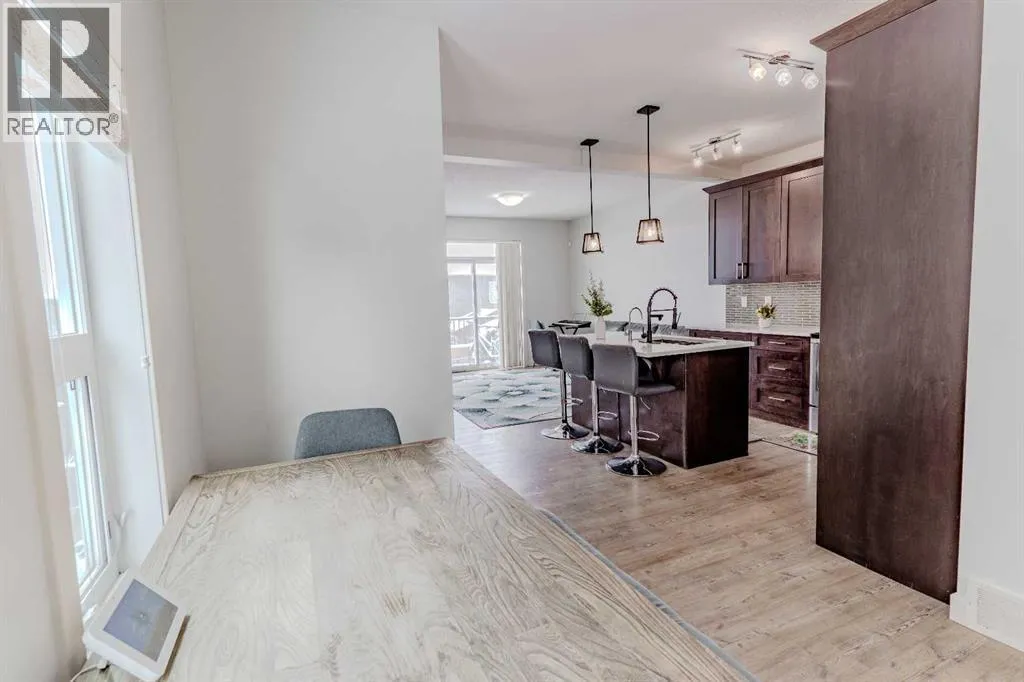 Welcome to this beautifully maintained Cardel Lifestyles custom-built home in the sought-after community of Nolan Park, featuring a fully developed walkout basement and a bright, open-concept design.The main floor offers 9â ceilings and a spacious layout, highlighted by quality finishes including knockdown ceilings, upgraded baseboards, and modern fixtures throughout. The chef-inspired kitchen is complete with quartz countertops, rich maple cabinetry, stainless steel appliances, and ample storage, making it perfect for both everyday living and entertaining. A generous living room, dining area, and convenient powder room complete the main level.Upstairs youâll find three comfortable bedrooms, including a spacious primary retreat with a walk-in closet and private 4-piece ensuite. Two additional well-sized bedrooms, a full bathroom, and a convenient upper-floor laundry room add to the functionality of the upper level.The fully finished walkout basement provides extra living space with a large family room, 4-piece bathroom, and additional storage, with direct access to a covered patio and backyardâideal for relaxing or entertaining.Additional highlights include a single attached garage with driveway parking and a fantastic location close to parks, pathways, shopping, and dining, with quick access to Beacon Hill Shopping Centre, Walmart, and major routes.A perfect opportunity to own a move-in ready home in a growing NW community. (id:27476)