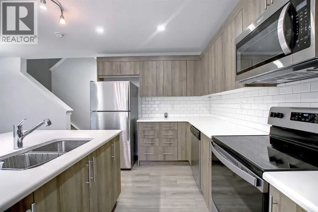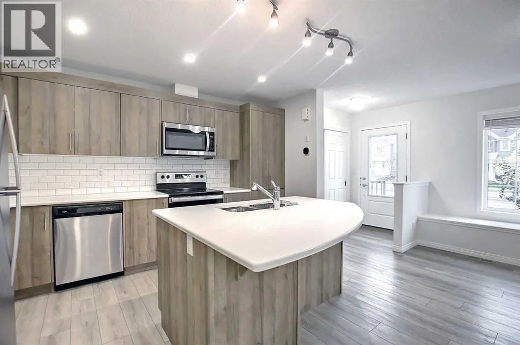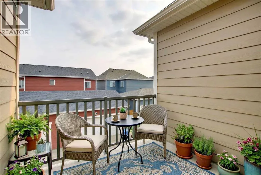 Open House, April 4, 12- 2 pm. Say hello to this beautifully maintained, like-new townhome with NO CONDO FEES in the growing community of Yorkville, just minutes from Spruce Meadows.The open-concept main floor features durable oak luxury vinyl plank flooring and a bright, spacious kitchen complete with quartz countertops, a large white island, subway tile backsplash, stainless steel appliances (including a new dishwasher), and warm oak cabinetry. The kitchen flows seamlessly into the dining and living areas, creating the perfect space for everyday living and entertaining. The home has been professionally painted throughout and features brand-new light beige carpet on the stairs and upper level.Upstairs offers three bedrooms, including a spacious primary retreat with a huge walk-in closet, a stunning 5-piece ensuite featuring Carrara tile, and a private balcony. Two additional bedrooms, a 4-piece bathroom with double sinks, and a convenient upper-level laundry room with Samsung washer and dryer complete the upper floor.Additional highlights include a double attached garage, keeping you warm and dry year-round. Ideally located across from a park and walking pathways surrounding the pond, and just minutes from Granary Road and a short 10-minute drive to the Shawnessy CTrain Station.This move-in-ready home is a fantastic opportunity for homeowners or investors in one of South Calgaryâs newest communities. Book your showing today! (id:27476)