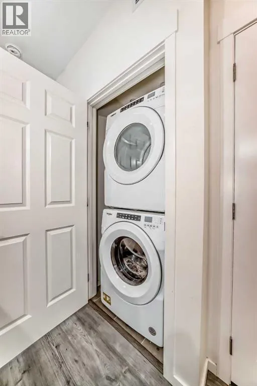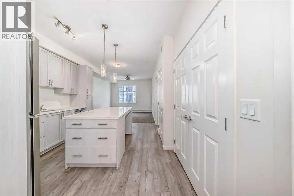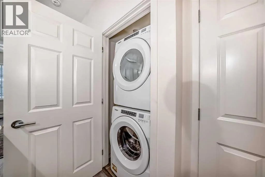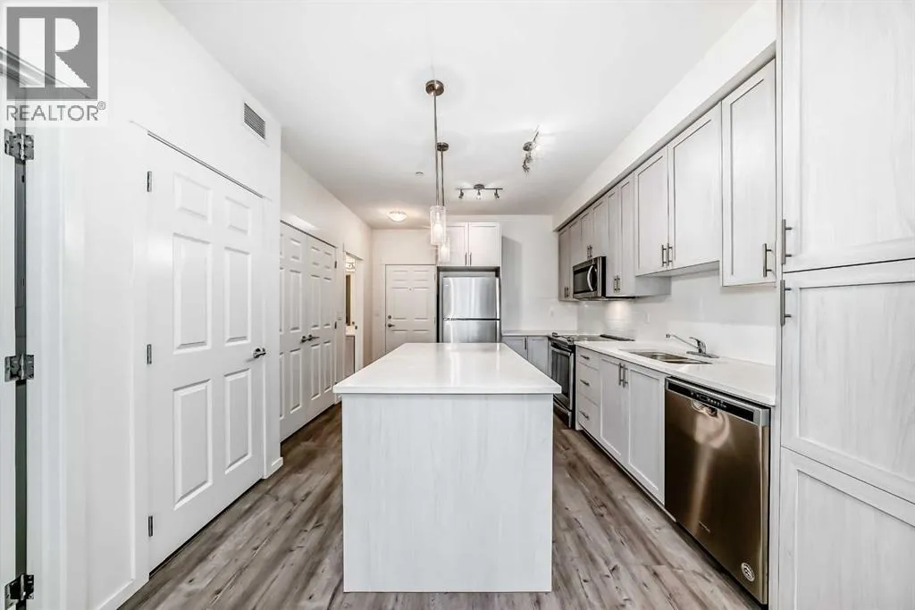 Great Value ! 1 Bedroom Condo in the popular community of Legacy Park. The kitchen features stunning WHITE MARBLE LOOKING QUARTZ countertops, with beautiful grey and white shaker wood cupboards that go all the way to the ceiling! The kitchen is also highlighted with an island and equipped with stainless steel appliances, including a slide out stove, making for a sleek back splash. For your convenience, Your condo also includes an in-suite washer/dryer. The bathroom has the same marble looking quartz counter top, and a grey and white shaker wood cupboard. The bathroom can be accessed from the main area or from the bedroom through the walk-in closet. Your future home comes with a TITLED UNDERGROUND HEATED PARKING spot and an assigned storage locker. And to top it off a nice balcony to enjoy your favorite beverage or meal. Close to walking paths and beautiful ponds, a bus stop around the corner, and stores, restaurants and bars are just steps away. (id:27476)