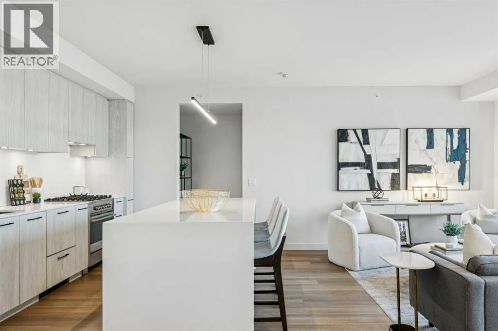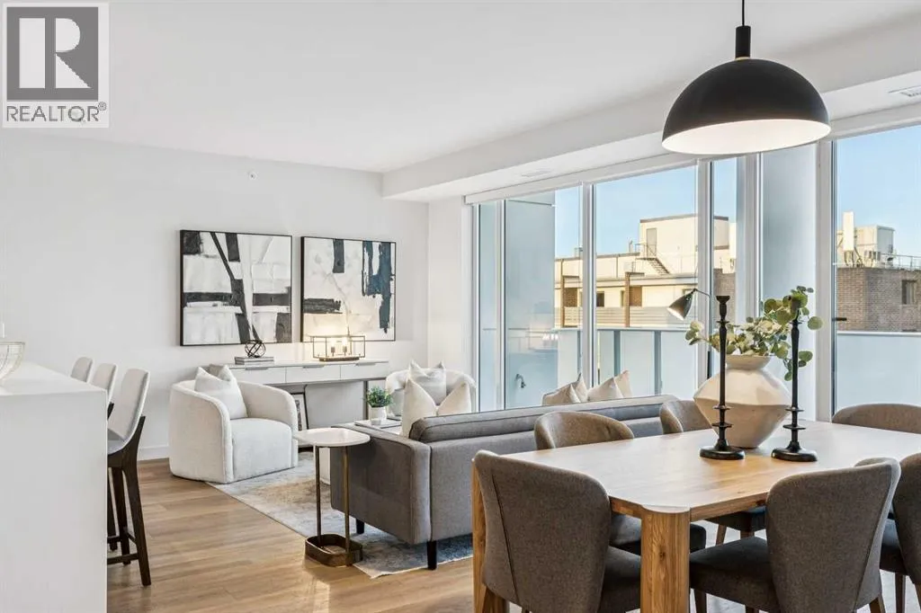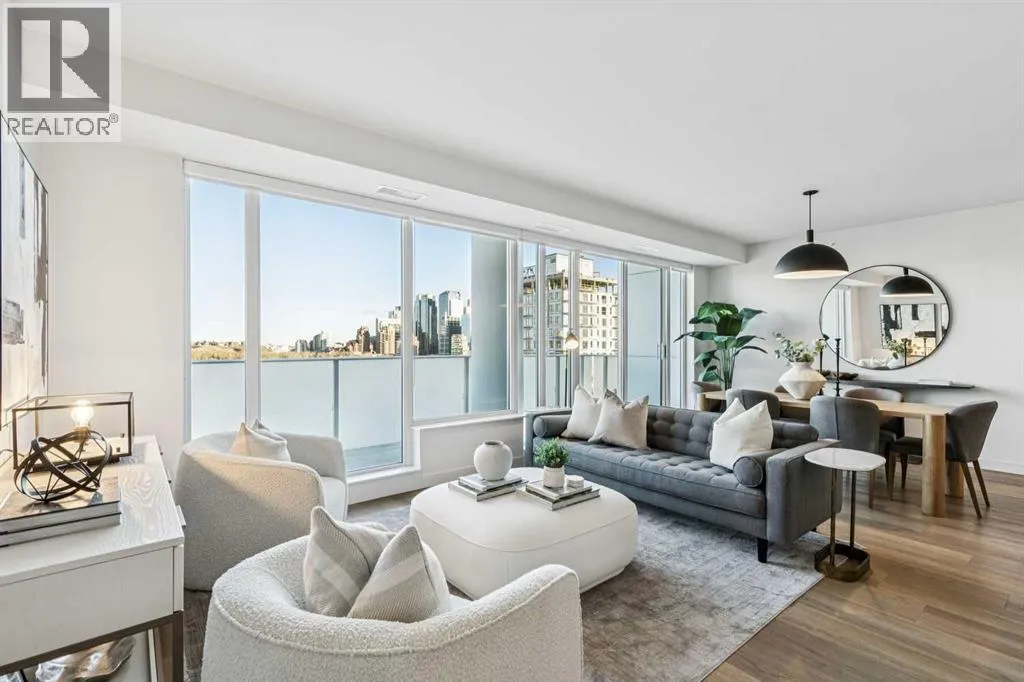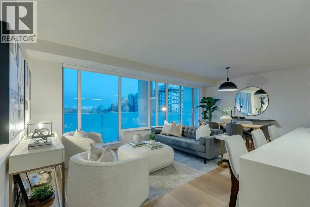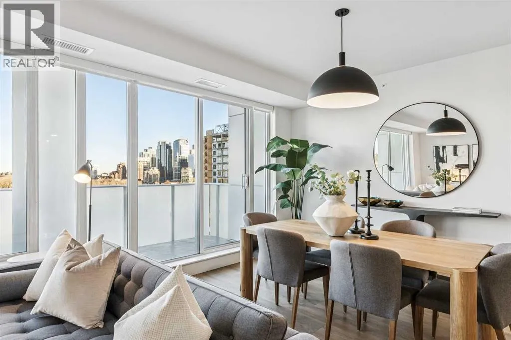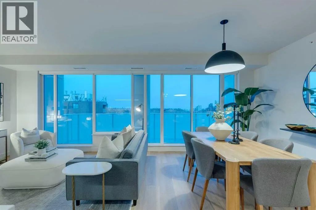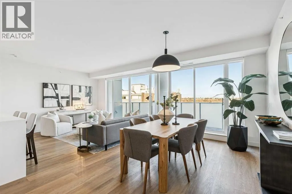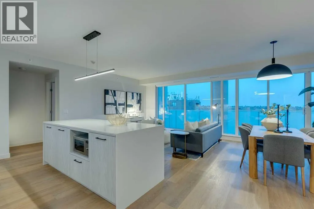 Perched atop the sought-after Theodore, this exceptional 10th-floor penthouse presents a rare opportunity to experience refined urban living in the heart of Kensington. Showcasing over 1,400 square feet of beautifully curated living space, this pristine three-bedroom, three-bathroom residence blends sophisticated design with remarkable functionalityâoffered by the original owner and maintained in immaculate, show-home condition.From the moment you enter, soaring 9-foot ceilings, expansive floor-to-ceiling windows, and elegant luxury vinyl plank flooring create a bright, airy atmosphere while framing captivating views of downtown Calgary skyline. The open-concept living and dining area flows effortlessly onto a spacious private balconyâan inviting retreat to relax or entertain while enjoying the glittering city backdrop and convenient natural gas BBQ hookup.At the heart of the home, the designer kitchen is a chefâs dream. Thoughtfully appointed with sleek quartz countertops, abundant cabinetry, and a generous island with counter seating for four, the space is complemented by integrated Fisher & Paykel appliances, delivering both style and performance for everyday living and entertaining alike.The serene primary suite offers a luxurious escape, complete with expansive windows, a spacious walk-through closet, and a spa-inspired ensuite featuring heated floors, a free-standing soaker tub, shower, and dual vanity. Two additional well-proportioned bedrooms and full bathrooms provide exceptional flexibility for family, guests, or a stylish home office.Rarely found in inner-city condominium living, this penthouse includes three titled underground parking stalls and complete with storage locker, and convenient in-suite laundry & storage room âenhancing comfort and practicality.Residents of The Theodore also enjoy access to an extraordinary rooftop terrace, complete with outdoor fire pit, BBQ, lounge seating, and sweeping panoramic views that stretch from sunrise t o dusk. Itâs a spectacular setting to unwind and gather with friends.Ideally located just steps from Kensingtonâs popular boutiques and restaurants, as well as Safeway Kensington, the home is also moments from the picturesque pathways and green space of Riley Park, the Bow River, nearby schools and the downtown core.Combining boutique luxury, an unbeatable inner-city location, and the rare convenience of three parking stalls, this remarkable penthouse offers the pinnacle of elevated urban living in one of Calgaryâs most coveted neighbourhoods. (id:27476)