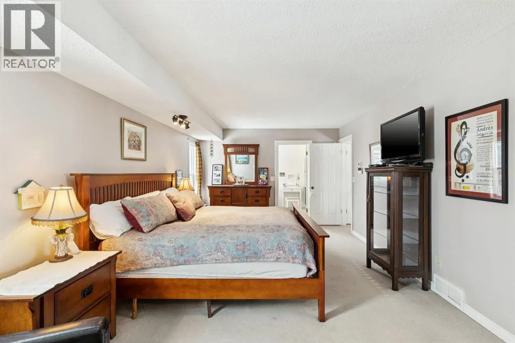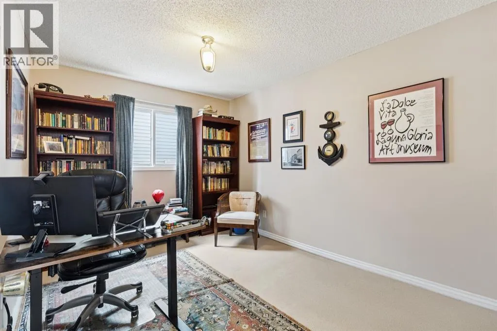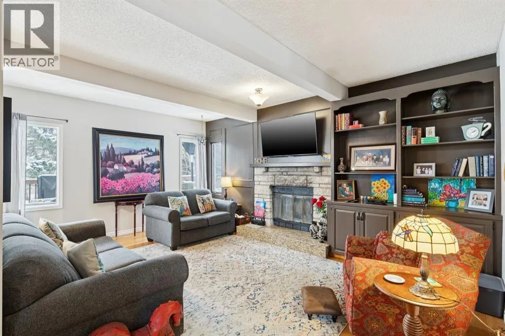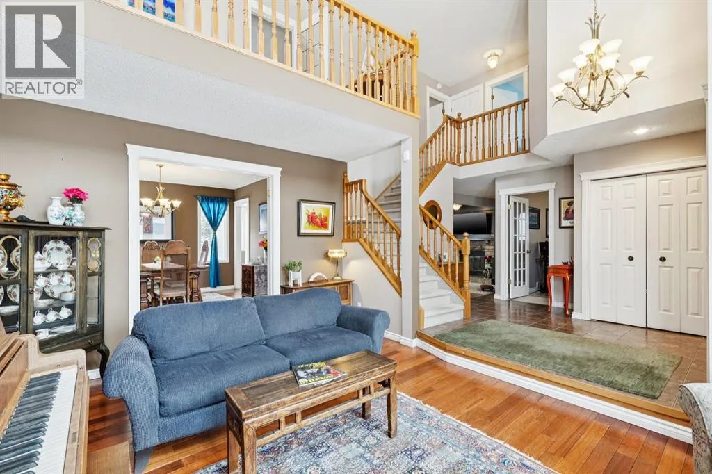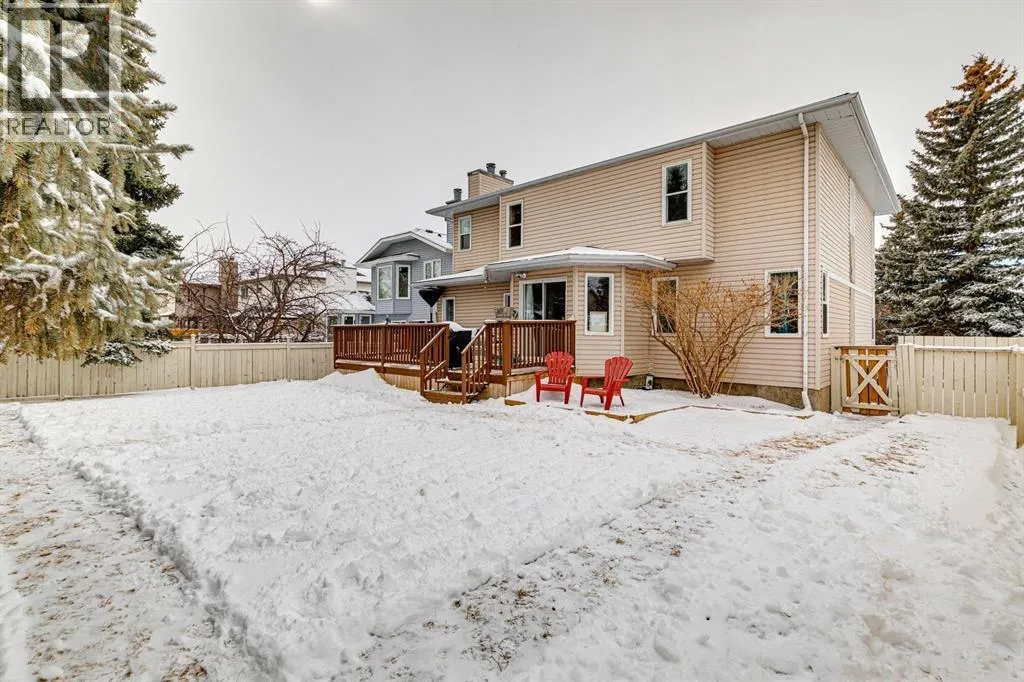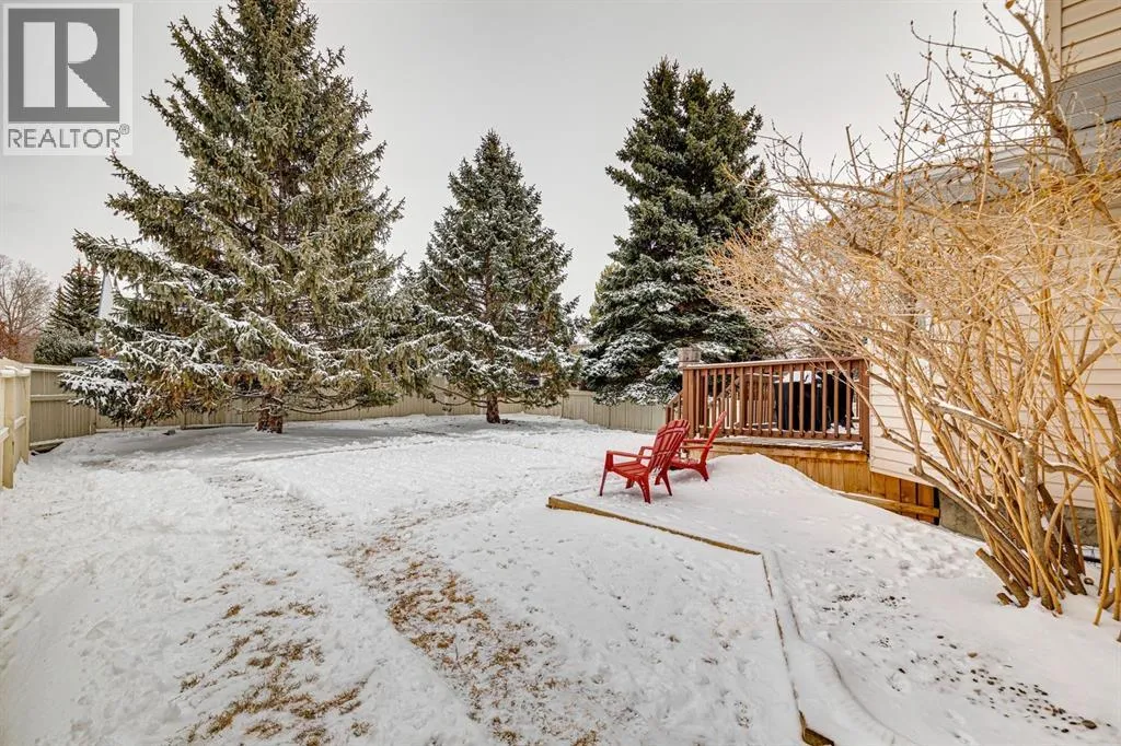 Step into a home where timeless elegance meets exceptional comfort. Offering over 3,780 sq ft of developed living space, this impressive four bedroom home sits proudly on a large corner lot, showcases mountain views, and features a double attached garage, creating a striking presence from the moment you arrive. Inside, you are welcomed by soaring ceilings and a dramatic curved staircase that sets the tone for the homeâs refined interior. The sunken front living room is bathed in natural light from expansive windows, creating a warm and inviting space perfect for hosting guests or enjoying a quiet moment with a book. Just steps away, french doors lead into the formal dining room, seamlessly connecting to the heart of the home. The fully renovated kitchen (2012) is designed for both everyday living and entertaining, showcasing granite countertops, rich espresso cabinetry, stainless steel appliances, and a convenient eat-up island. Sliding glass doors open to the rear deck, inviting you to enjoy al fresco dining and outdoor gatherings. Adjacent to the kitchen, the welcoming family room features a stunning stone surround wood burning fireplace and custom built-in shelving and storage, creating a cozy yet sophisticated gathering space. A quiet main floor office provides the perfect work from home retreat, while a discreet laundry area and powder room add everyday convenience. A spacious hallway leads directly to the double attached garage, enhancing the homeâs thoughtful functionality. Upstairs, plush carpeting leads to four generous bedrooms and a full bathroom. The expansive primary serves as a true sanctuary, featuring its own private and luxurious 5pc ensuite with dual sinks, a separate shower, and a jetted soaker tub, along with a walk-in closet. The room opens to a loft overlooking the main living room, an inspiring space ideal for yoga, meditation, or a cozy reading nook. The fully developed and freshly painted lower level offers incredible versatility with a mass ive recreation/media area, perfect for a home gym, games area, or a relaxing hangout for kids and teens. A large den provides excellent flexibility and can easily function as a guest bedroom. Outside, the beautifully private backyard feels like your own retreat, complete with a spacious deck, generous green space, and mature evergreens that create natural privacy from neighbouring homes. The location is truly exceptional and is just a short walk to the entrance of Fish Creek Park for endless walking, cycling, and outdoor adventures. Just minutes away is Buffalo Run, featuring Costco, fuel stations, coffee/dining, dental and chiropractic services, and many more amenities. With quick access to Stoney Trail, commuting is effortless and weekend escapes to the Rocky Mountains are within easy reach for hiking, skiing, and year-round adventure. This is a rare opportunity to own a spacious family home in an outstanding location, a perfect blend of comfort, style, and lifestyle. (id:27476)