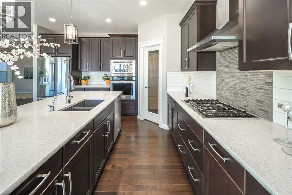 Welcome to your dream home in Mahogany! This luxurious 2-storey offers over 4,000 sq ft of developed living space and backs directly onto the Mahogany wetlands, featuring breathtaking views and a scenic walking path right outside your door. Bright and sunny throughout, the open-concept main floor showcases a spacious living room with a cozy gas fireplace, a breakfast nook, and a stunning modern kitchen with centre island, breakfast bar, granite countertops, stainless steel appliances, and pantry. The main level has been fully updated with refinished vinyl plank flooring, adding a fresh and modern touch throughout. A versatile office/formal dining room/flex space, 2-piece bath, and mudroom leading to the double attached garage complete the main level. Step out from the breakfast nook onto the deck and enjoy the peaceful wetland setting.Upstairs, the impressive primary suite features a luxurious 5-piece ensuite and walk-in closet. The upper level also offers 2 additional spacious bedrooms, a bonus room, laundry room, and a 4-piece bath. The fully finished walkout basement includes a 4th bedroom, 4-piece bath, and a huge recreation room. Additional features include stucco exterior and new paint.Located just minutes from the Mahogany Beach Club, schools, shopping, dining, coffee shops, and more. A rare opportunity to own a beautiful walkout home in one of Calgaryâs most desirable lake communities! (id:27476)
