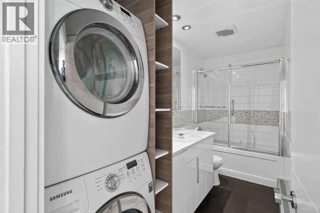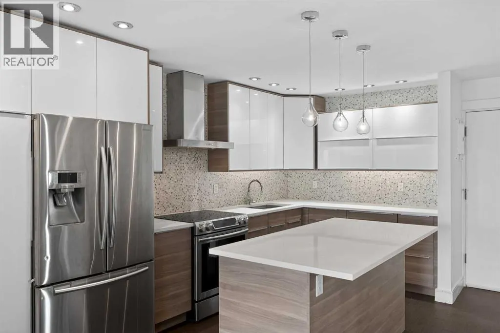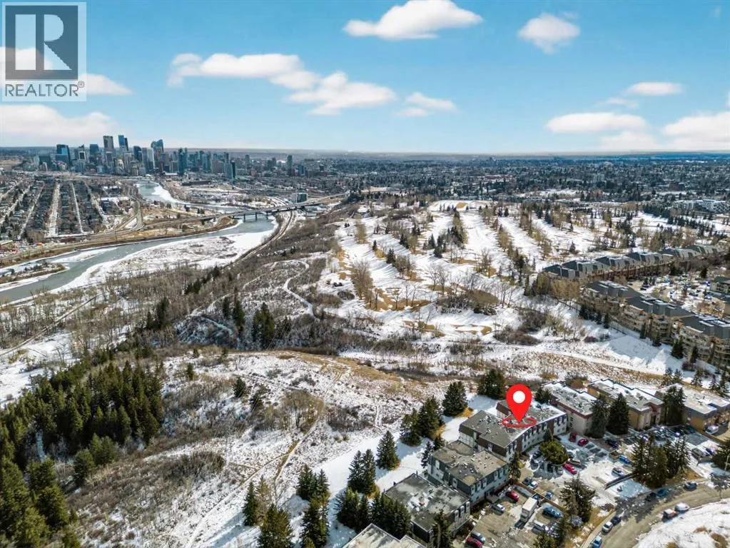 Welcome to Spruce Cliff, one of Calgary's most scenic and desirable communities. This home truly has it all. FULLY RENOVATED to the highest level, walking in you are greeted with a completely open floor plan with laminate floors that span throughout. Your chef inspired kitchen offers quartz counter tops, high end stainless steep appliances, gorgeous cabinetry and drawers as well as a ton of lighting. Your living room is very large and flows from your kitchen and out to your east facing balcony with AMAZING DOWNTOWN VIEW and the quiet tranquilness of backing on to EDWORTHY PARK with nature at your back door. The primary bedroom is huge and give you space for a king size bed along with additional bedroom furniture. The second bedroom is also a great size and is just adjacent to your spa style renovated bathroom. This unit boasts IN-UNIT FULL SIZE LAUNDRY which is rare for the complex as well as an assigned parking stall and indoor storage locker. If you want to wake up to morning coffee on your balcony with the birds and the deer or have a glass of wine with expansive night time city views, this unit is for you. Take a walk from your back door all right to the pathways through the park and down to the river. Do not miss this chance to make it yours! (id:27476)