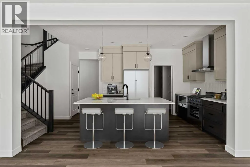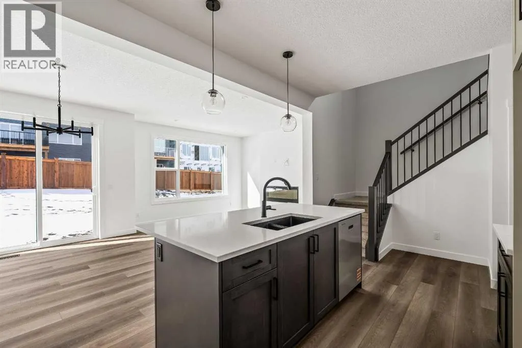 This brand-new home by Brookfield Residential is move-in ready in the sought-after community of Starling and features a desirable west-facing backyard! The popular Rundle 24 floor plan offers a Farmhouse elevation and a thoughtfully designed layout featuring 2 living areas, 3 bedrooms, 2.5 bathrooms all above grade, plus a fully legal one-bedroom basement suite with its own private entrance. The chef-inspired kitchen features shaker cabinetry in a timeless warm colour palette with contrasting maple lower cabinets and oversized central island. The kitchen is equipped with built-in microwave, chimney range hood, and slide-in range. A spacious walk-through pantry, conveniently accessed from the mudroom and double attached garage, enhances everyday functionality. The kitchen opens seamlessly to the dining and living areas, creating the perfect space for both entertaining and daily living. A wall of windows across the back of the home fills the main floor with natural light, while patio doors off the dining area lead to the sunny west backyard -Â ideal for summer evenings outdoors. The cozy electric fireplace in the living room adds warmth and charm during the colder months. Natural wood railings with iron spindles lead to the upper level, where a central bonus room thoughtfully separates the primary suite from the secondary bedrooms, providing both privacy and additional living space. The spacious primary retreat features a luxurious 5-piece ensuite with dual sinks, a soaker tub, walk-in shower, and a large walk-in closet. Two additional generously sized bedrooms, a full bathroom, linen closet, and a full laundry room complete the upper floor. The fully developed basement includes a legal one-bedroom suite with private side entrance, offering a full kitchen, living area, full bathroom, and its own private laundry - perfect for extended family or rental income. This home includes Builder Warranty and Alberta New Home Warranty for added peace of mind. Fully complete and mo ve-in ready, this property is ideal for growing families, investors seeking a dual-income opportunity, or buyers looking to live upstairs while generating rental income from the legal suite below. (id:27476)
