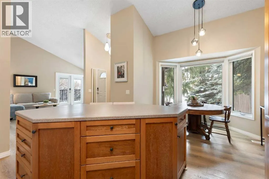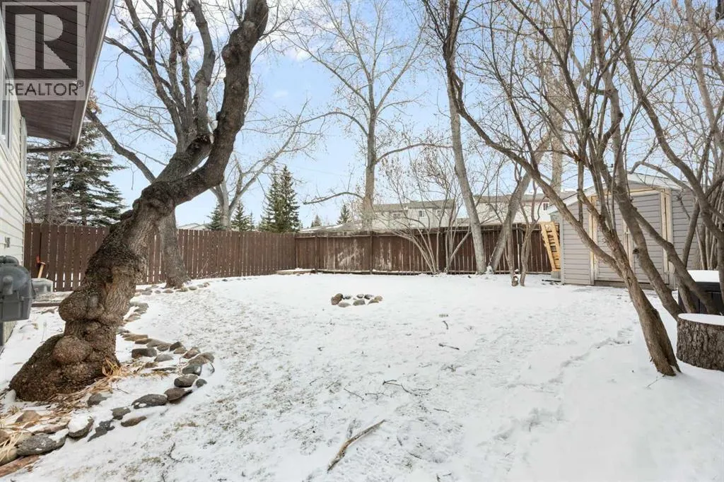 Welcome to this well-maintained 4-level split located in the highly desirable community of Ranchlands, offering over 1,500 sq. ft. of developed living space and exceptional access to parks, pathways, schools, and the many amenities of Crowfoot Centre.This detached home features 3 bedrooms and 2.5 bathrooms, providing a functional and versatile layout ideal for families or those seeking additional space. The bright and inviting main floor showcases a spacious open-concept design highlighted by a soaring vaulted ceiling, creating an airy atmosphere perfect for everyday living and entertaining.Recent upgrades include high-quality AC5-rated laminate flooring throughout the first three levels, updated bathrooms with modern vanities, lighting, and finishes, as well as fresh paint and contemporary fixtures. The lower level has been refreshed with a refinished ceiling, and a new French door opens onto the deck. A new washer and dryer (2025) add further convenience.Step outside to enjoy the private, mature backyard featuring new sod (2025) and established trees that provide excellent seasonal privacy. The large deck offers an ideal space for outdoor relaxation and entertaining. Additional exterior features include a fully fenced yard, an 8â x 8â storage shed, and a small root cellarâperfect for gardening enthusiasts or extra storage.Ideally situated just steps from public transit and only minutes to Crowfoot shopping, restaurants, the CTrain station, and an extensive network of greenspaces, pathways, and dog parks, this home offers outstanding convenience for commuters and active lifestyles alike.An excellent opportunity to own a thoughtfully updated home in the established and family-friendly NW community of Ranchlands. (id:27476)