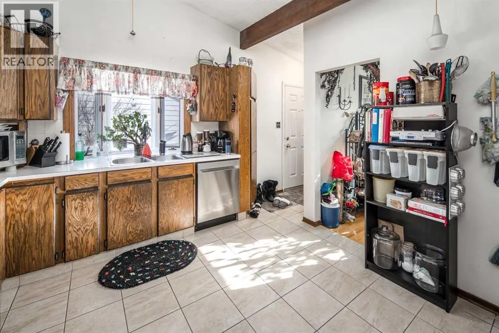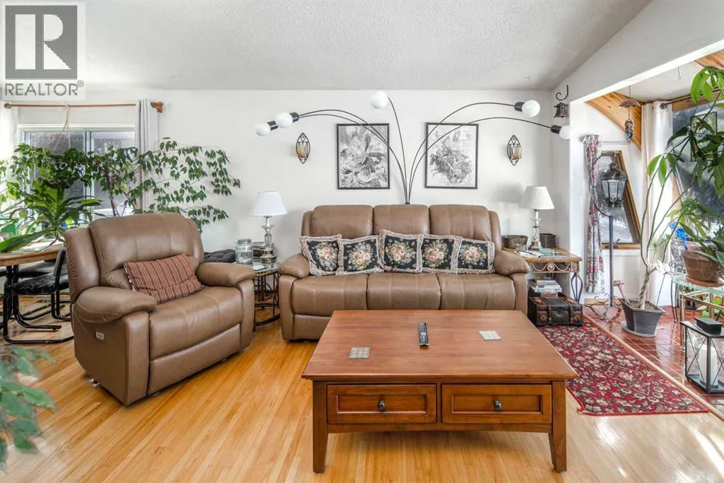 Open house March 14th (Saturday) 1:00-4:00pm. Immaculate fully finished 4-level split located directly across from a park and school in a highly convenient and family-friendly neighborhood. This well-maintained home offers 3+1 bedrooms and 2.5 bathrooms, making it ideal for families or as an investment property. The bright and open main level features gleaming hardwood floors, a spacious living room with soaring vaulted ceilings, and a formal dining area perfect for entertaining. The large kitchen includes newer tile flooring and updated appliances, providing both functionality and ample workspace. The upper level offers three generously sized bedrooms, including a primary bedroom with a private 2-piece ensuite, along with a renovated 4-piece main bathroom. The third level features a spacious family room filled with natural light from large windows, complete with a cozy wood-burning fireplace and an additional 4-piece bathroom. The fully finished lower level includes a fourth bedroom, cold/storage room, and laundry area, providing extra living space and storage. Oversized double garage fit big truck. Recent updates cost around $60K include: Dish Washer (2023), Garage door spring and rail (2024), newer roof on the oversized double garage (2014), interior paint (2014), entrance doors (2014), side fence and gates (2014), and a durable metal roof on the main house. Located within walking distance to the University of Calgary, transit, C-Train, and Market Mall, and just minutes from two major hospitals, Bowmont Park, and downtown. A fantastic opportunity in a prime location. (id:27476)