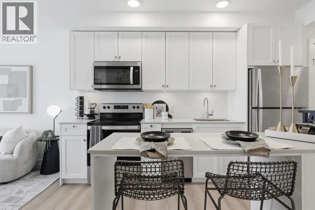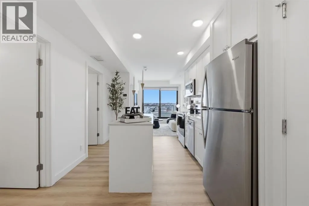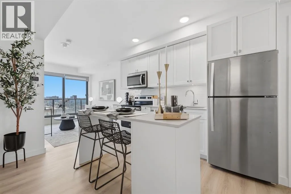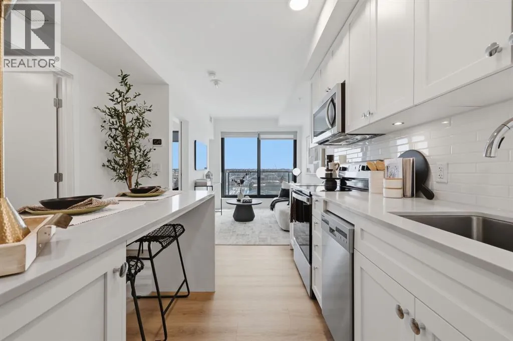 Welcome to Era by Minto Communities, where modern design meets exceptional lifestyle in one of Calgaryâs most vibrant inner city locations. This beautifully designed 1 bedroom, 1 bathroom residence offers the rare opportunity for Airbnb and short term rentals, making it an incredible option for both homeowners and investors seeking flexibility and strong income potential.Bathed in soft northeast facing light, the thoughtfully designed open concept layout creates an effortless flow between the kitchen, dining, and living areas. Large windows invite the city skyline inside, while the private balcony provides the perfect place to enjoy your morning coffee, fresh air, and peaceful views above the energy of the city.The contemporary kitchen is both stylish and functional, featuring quartz countertops, stainless steel appliances, sleek modern cabinetry, and a spacious island ideal for entertaining or everyday living. The interior is finished with durable vinyl plank flooring, in suite laundry, and air conditioning, offering comfort and convenience year round.Additional highlights include titled underground parking and a titled storage locker, ensuring secure and practical everyday living in the heart of downtown.Era raises the bar with LEED inspired construction and advanced smart building technology, including facial recognition access, one way video calling, secure package lockers, community messaging, and a virtual concierge system designed for modern urban living.Residents also enjoy access to the spectacular rooftop patio, complete with panoramic skyline views, fire pits, BBQ areas, and indoor workspaces, creating the perfect environment to relax, entertain, or work remotely.Perfectly located between Bridgeland and Crescent Heights, you are just steps from the Bow River pathways, Bridgeland LRT station, renowned restaurants, boutique shopping, cafes, and downtown Calgaryâs core.Whether you are looking for a stylish city home, a lock and leave lifestyle, or a h igh performing short term rental investment, this exceptional residence delivers it all.Opportunities like this in an Airbnb permitted building are rare!Book your private showing today. (id:27476)